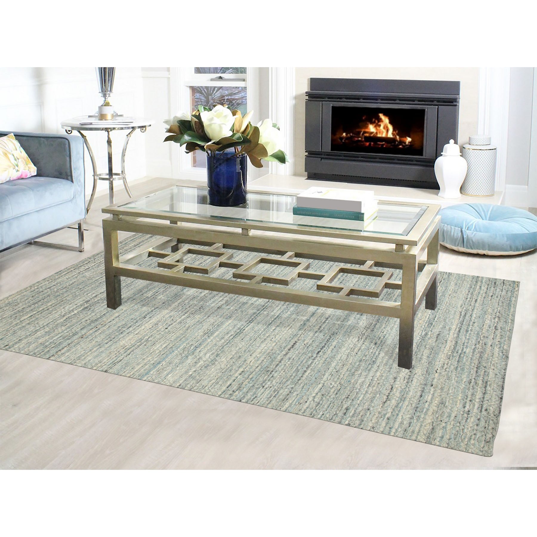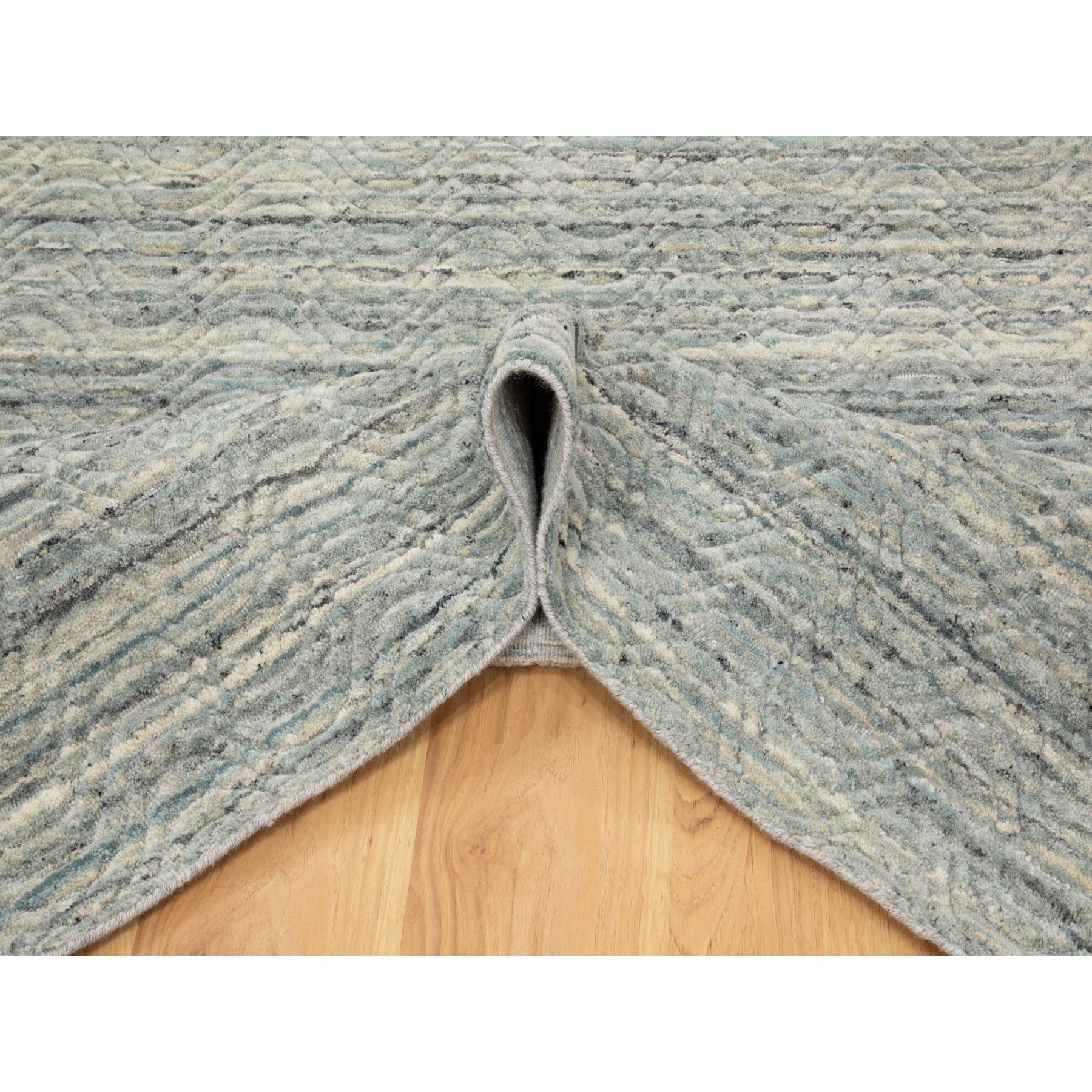 6'x9' Seafoam Green Variegated Textured Design Hand Loomed Pure Wool Modern Oriental Rug FWR350346