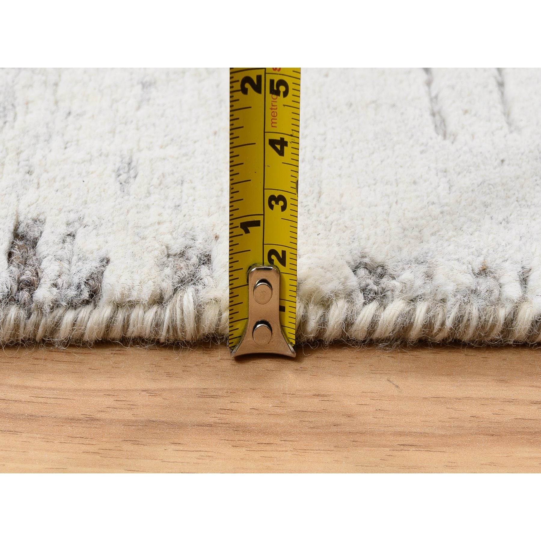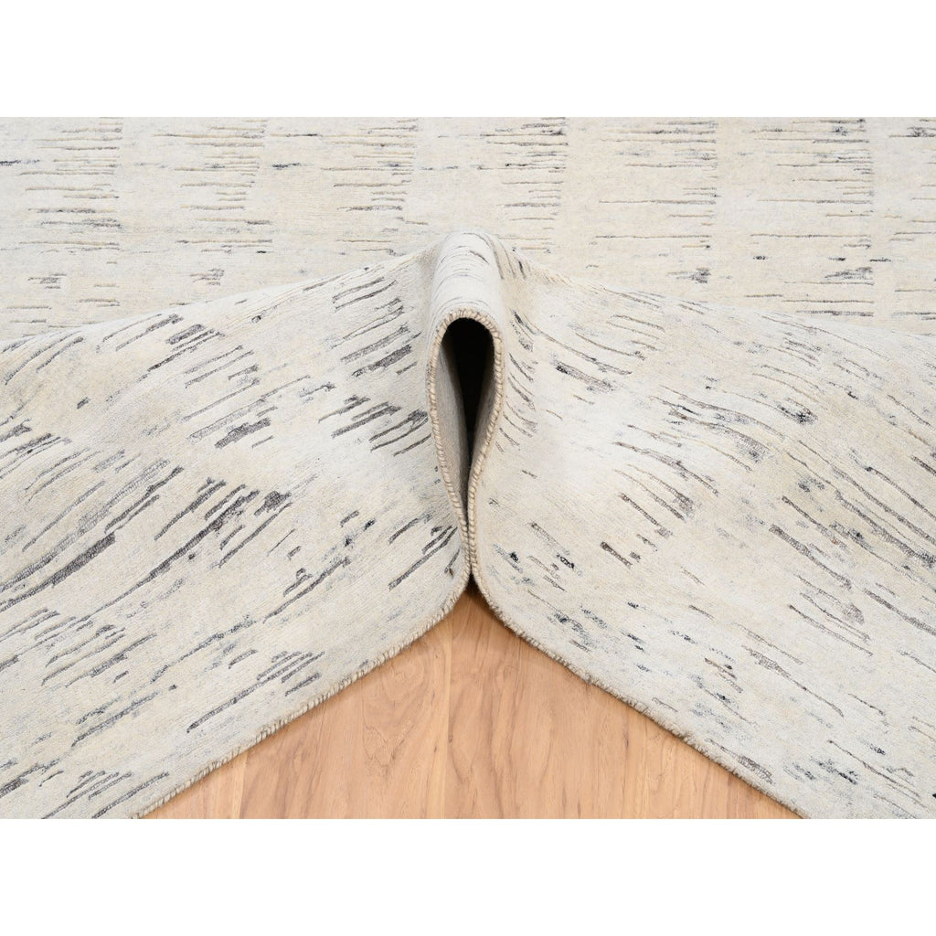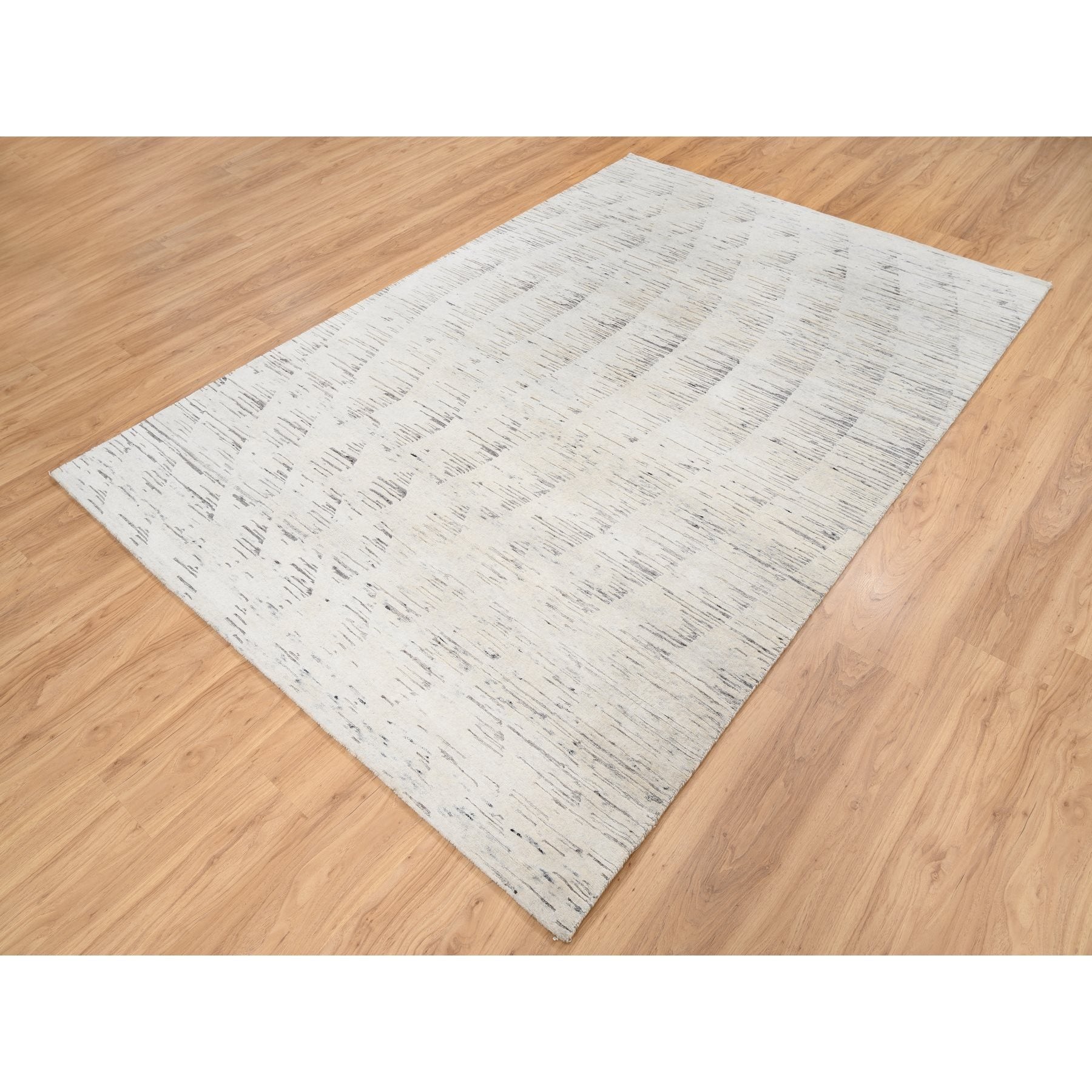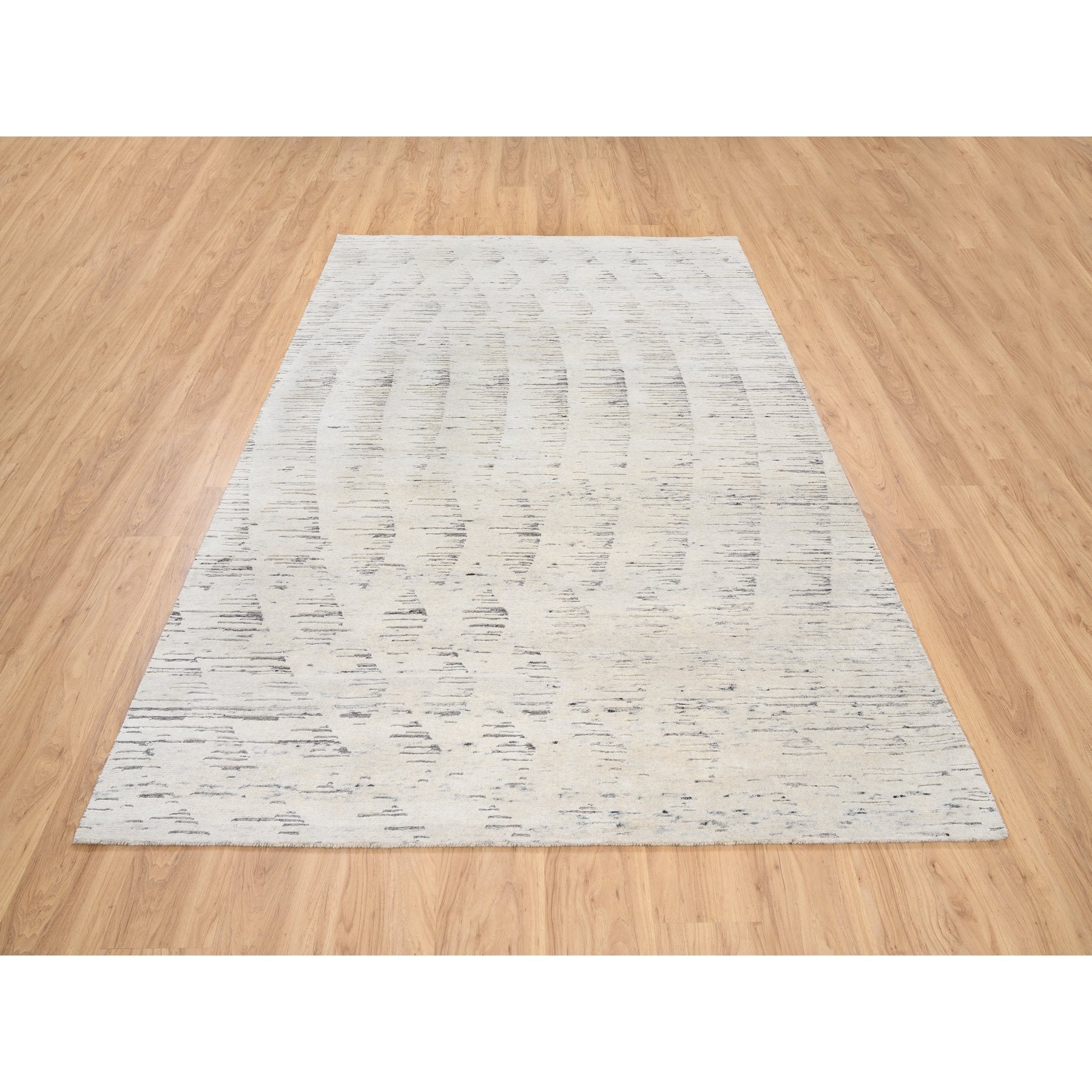 6'x9' Undyed Natural Wool Ivory Tone On Tone Repetitive Curvilinear Design Hand Knotted Oriental Rug FWR380250