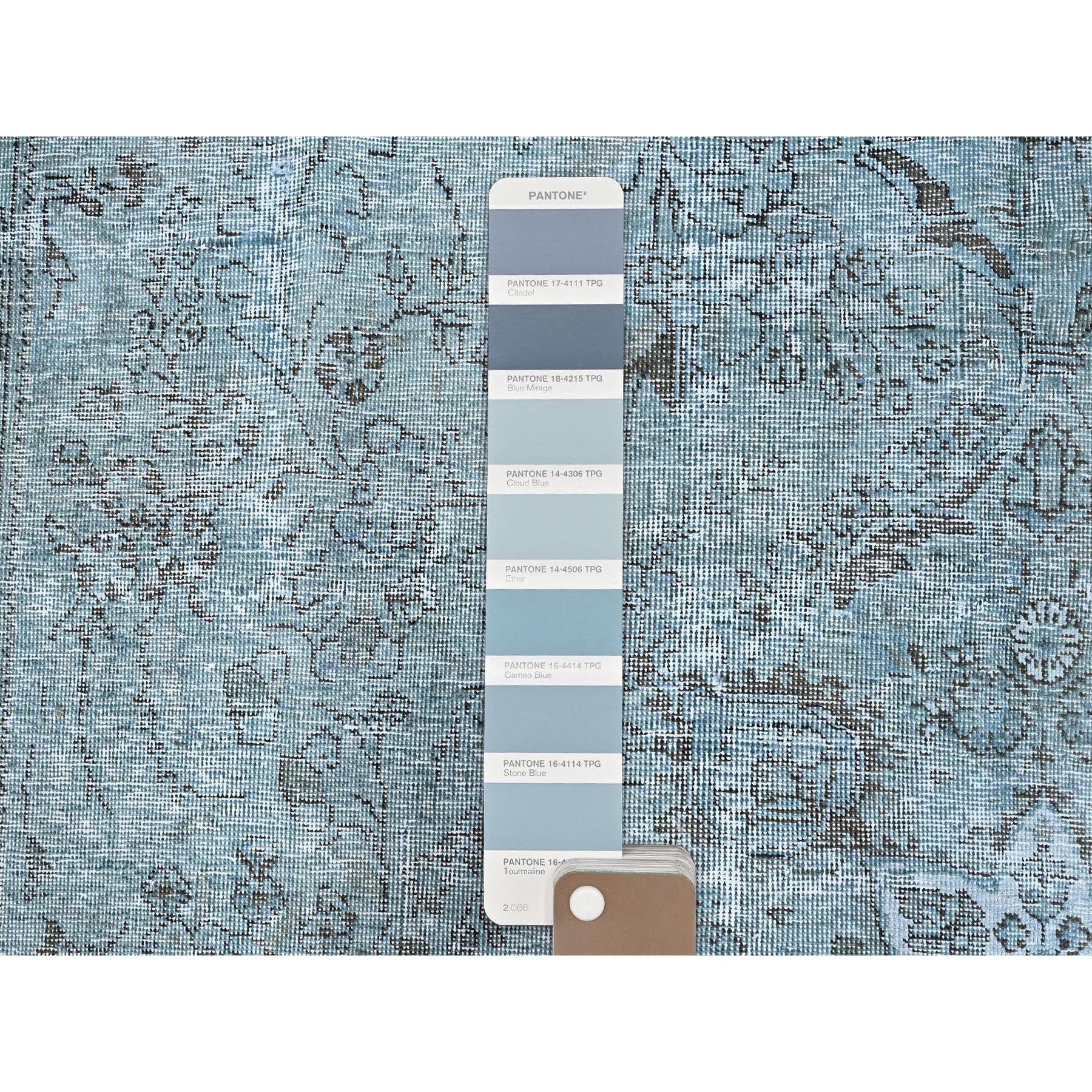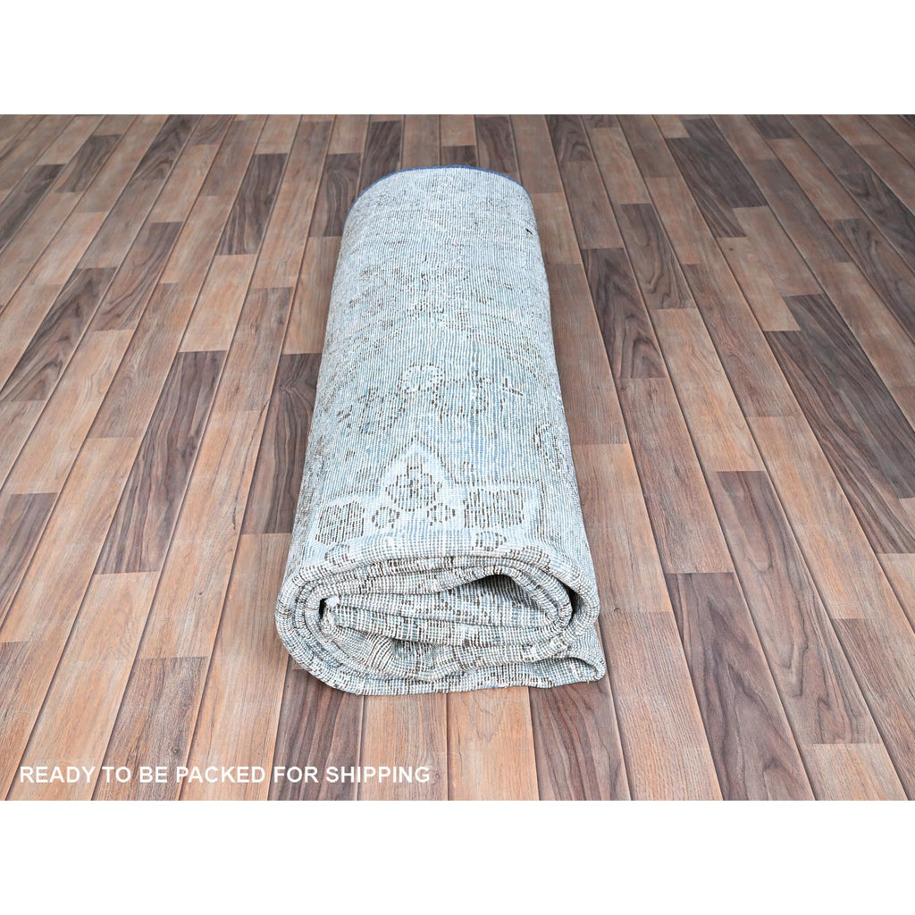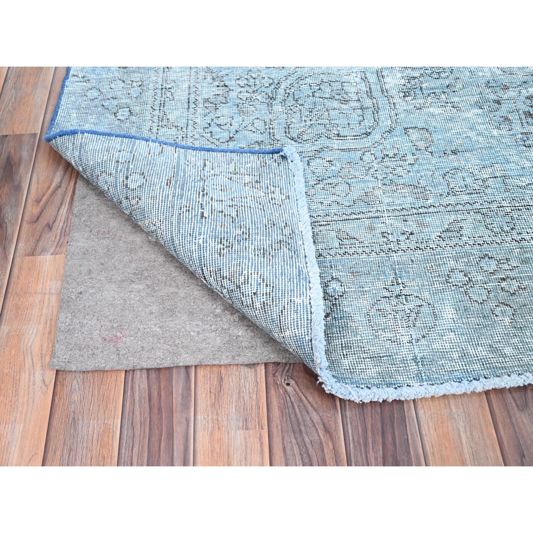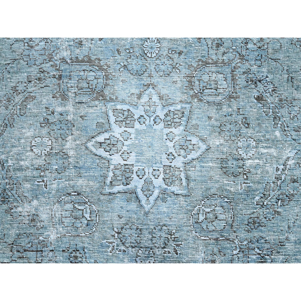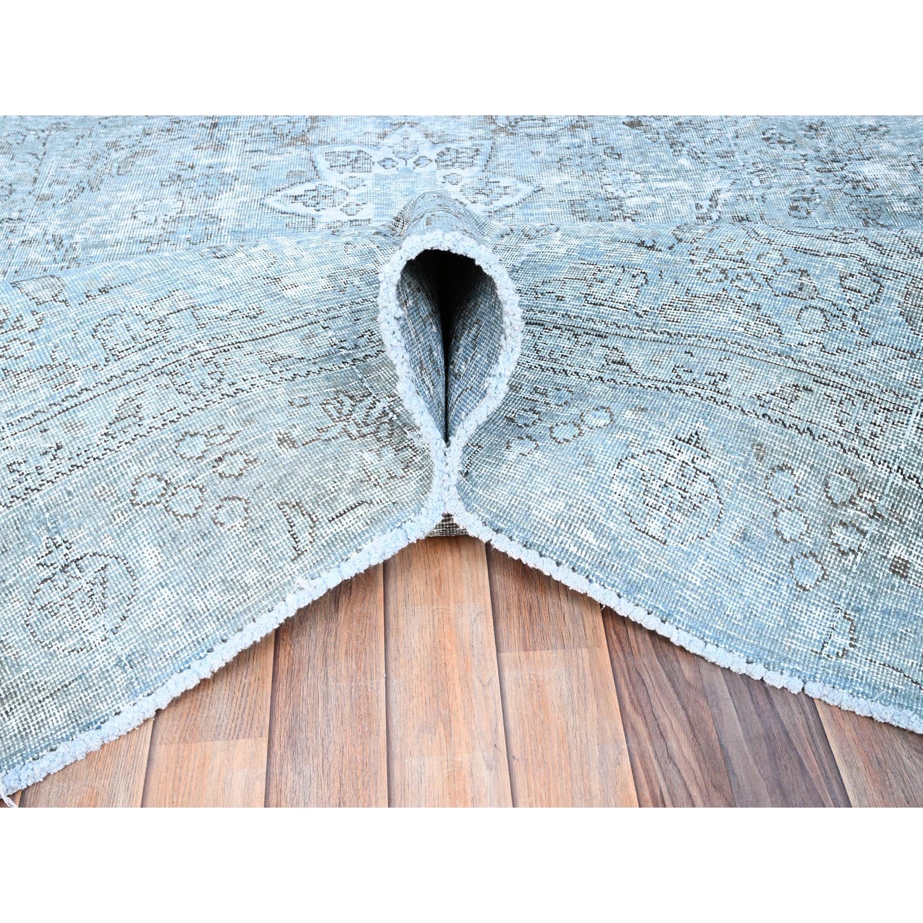 7'1"x10'7" Medium Turquoise, Pure Wool, Hand Knotted, Vintage Persian Tabriz With Faded Design, Shaved Down, Distressed Feel, Oriental Rug FWR513240