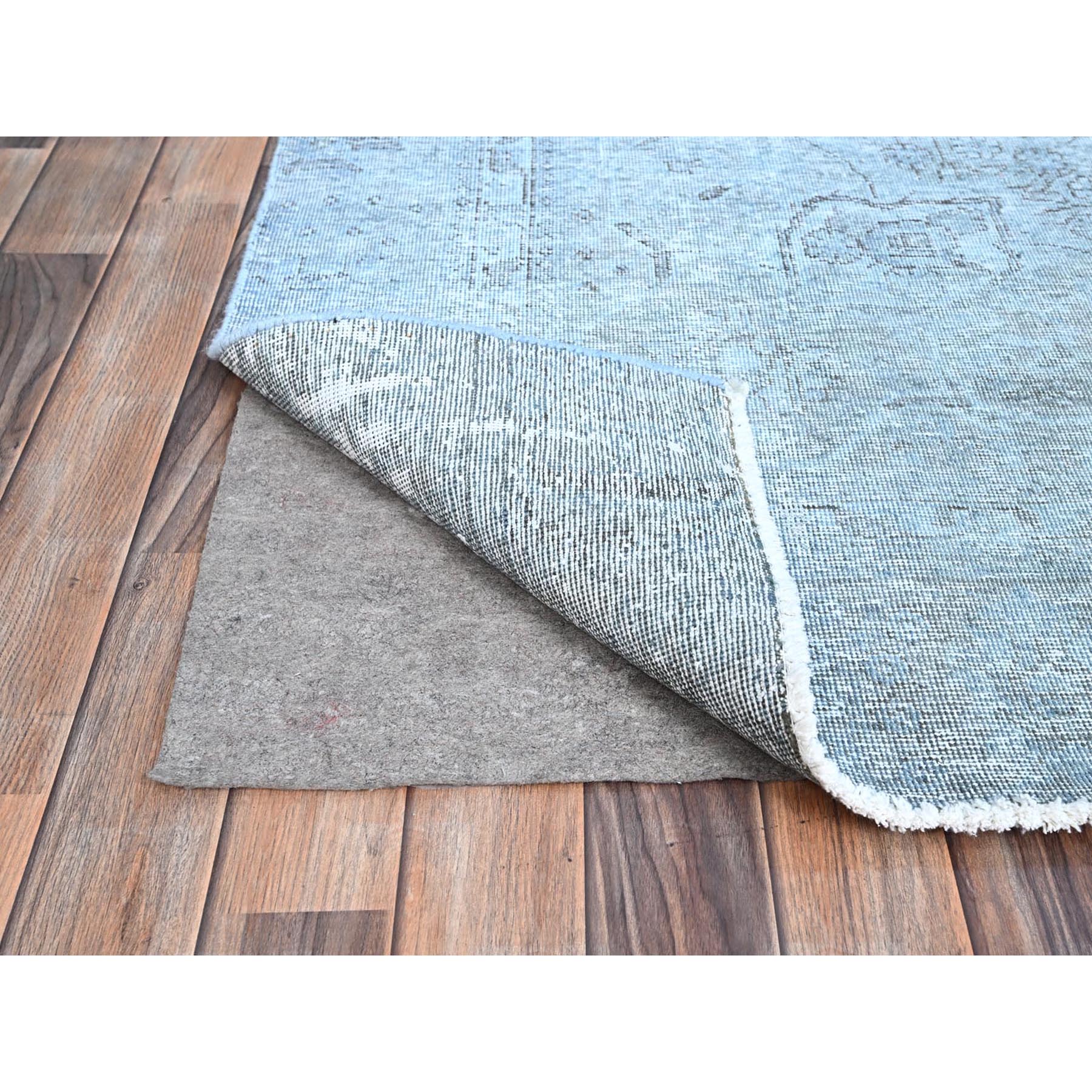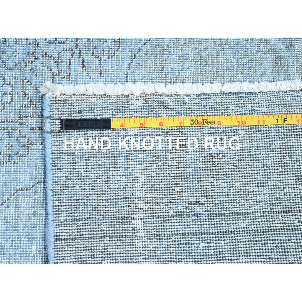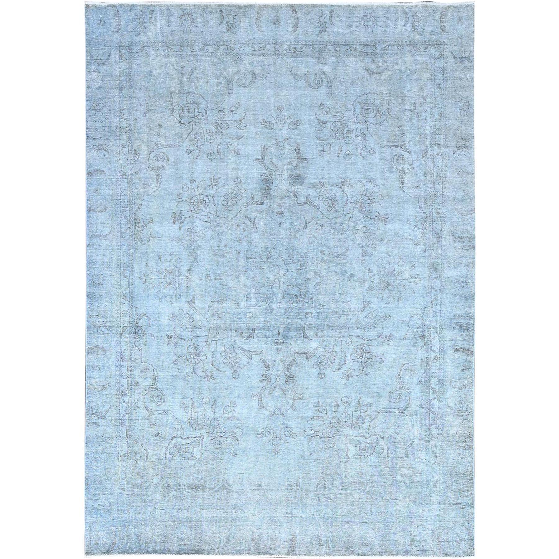 7'1"x9'9" Corydalis Blue, Hand Knotted Cropped Thin Old Persian Tabriz, Even Wear, Sides And Ends Professionally Secured, Cleaned, Sheared Low, Good Condition Velvety Wool Oriental Rug FWR521556