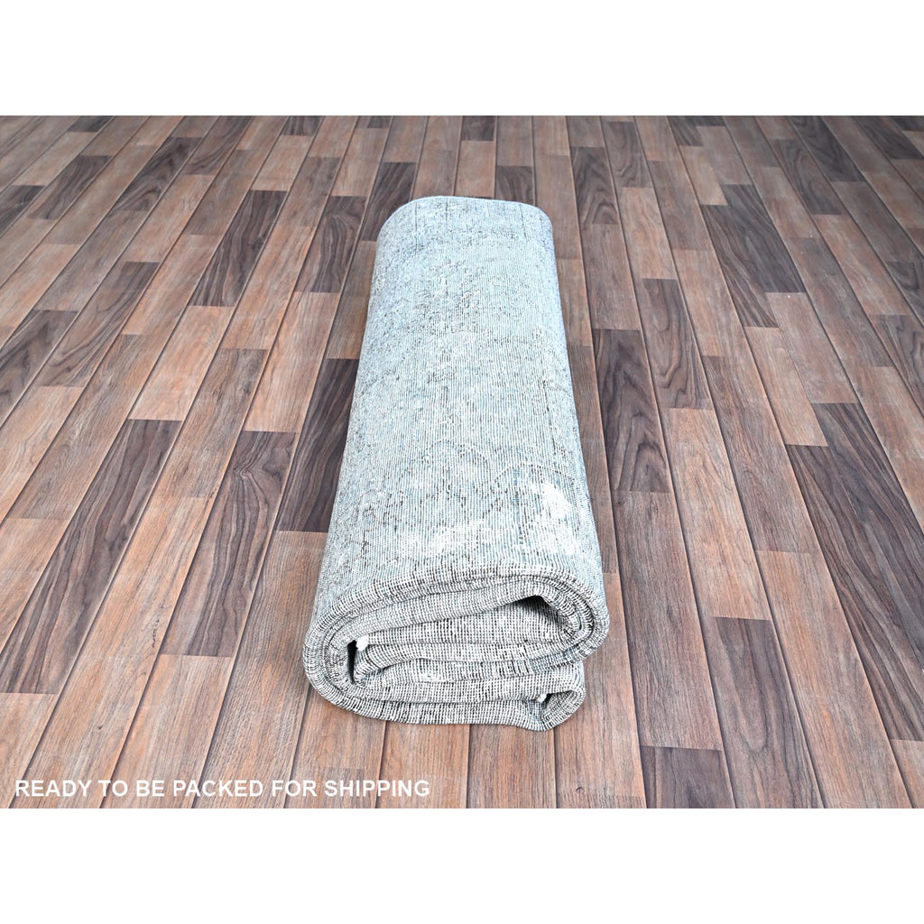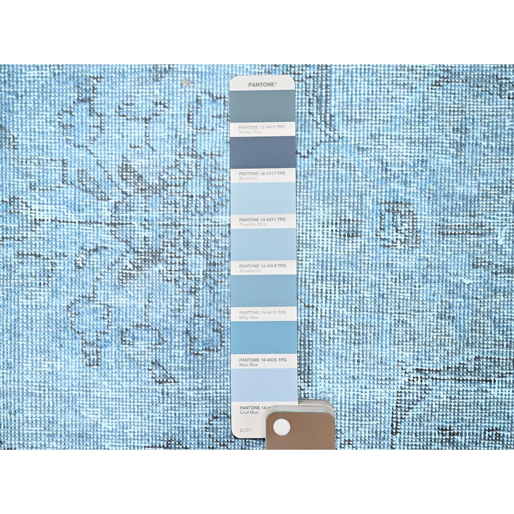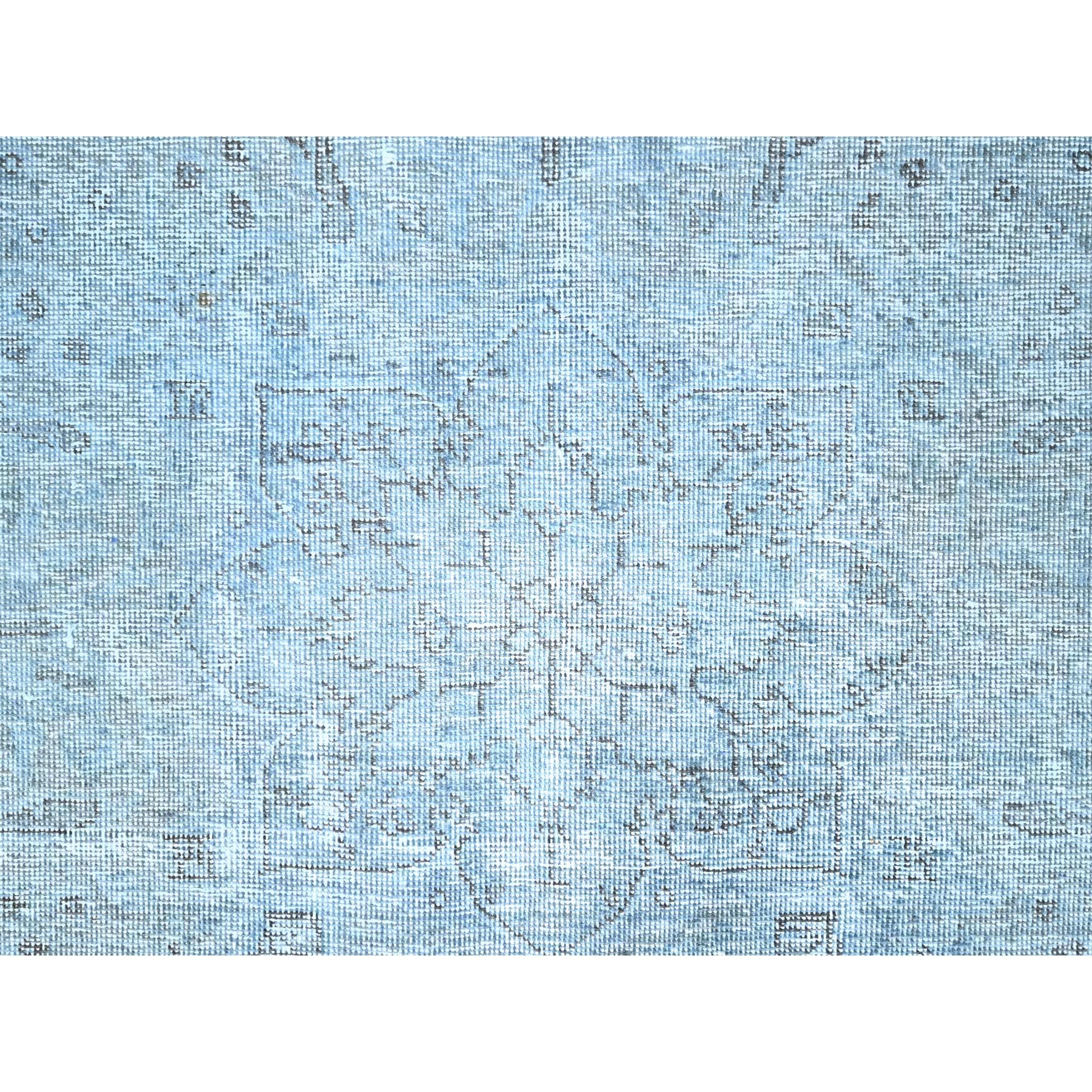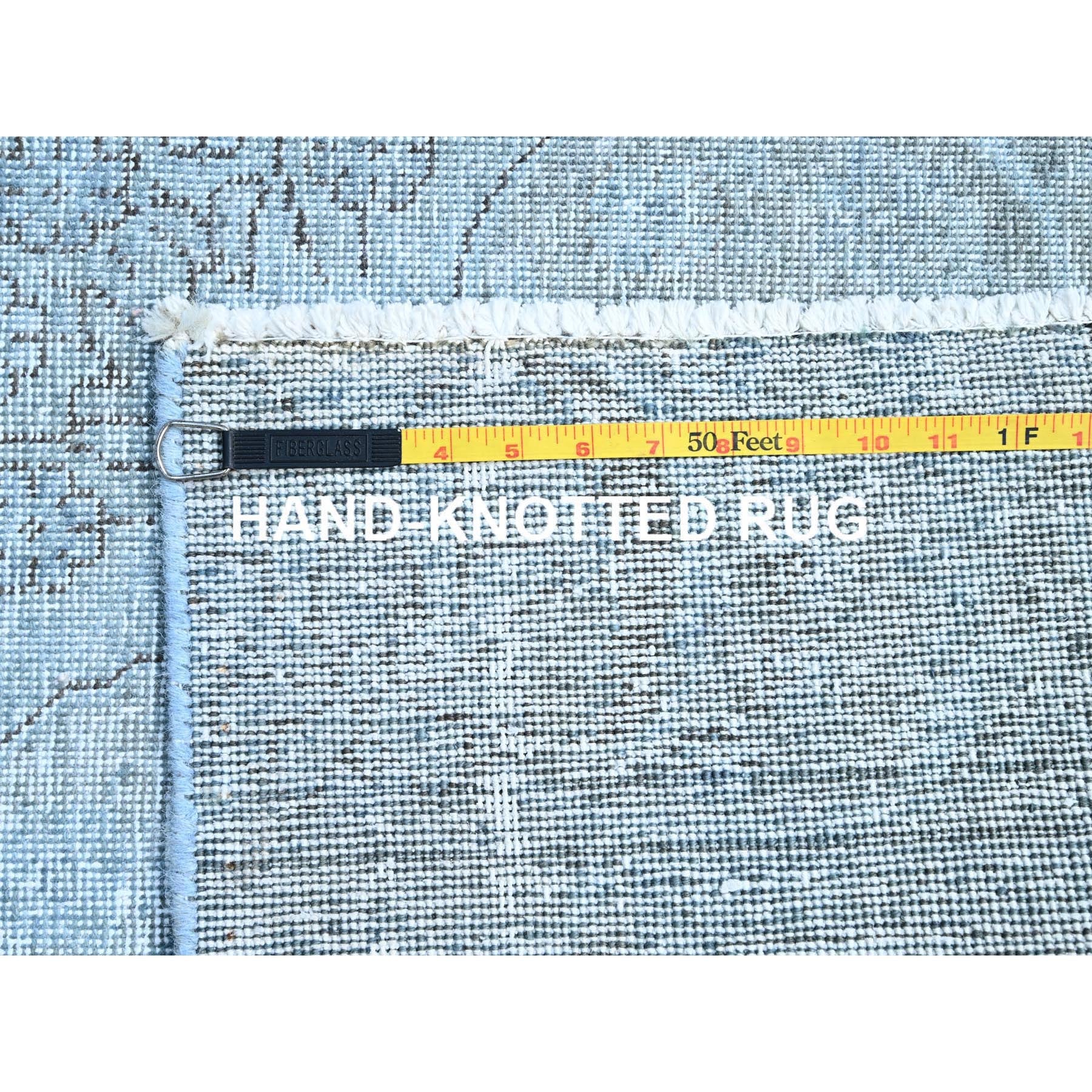 7'1"x9'9" Corydalis Blue, Hand Knotted Cropped Thin Old Persian Tabriz, Even Wear, Sides And Ends Professionally Secured, Cleaned, Sheared Low, Good Condition Velvety Wool Oriental Rug FWR521556
