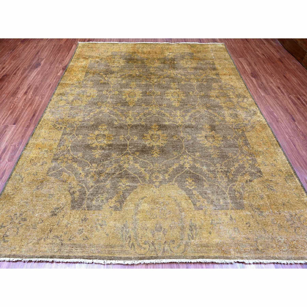 7'10"x10'1" Walnut Brown, Peshawar With Ziegler Mahal, All Over Design, Distressed, Zero Pile, Hand Knotted, Pure Wool, Oriental Rug FWR125028