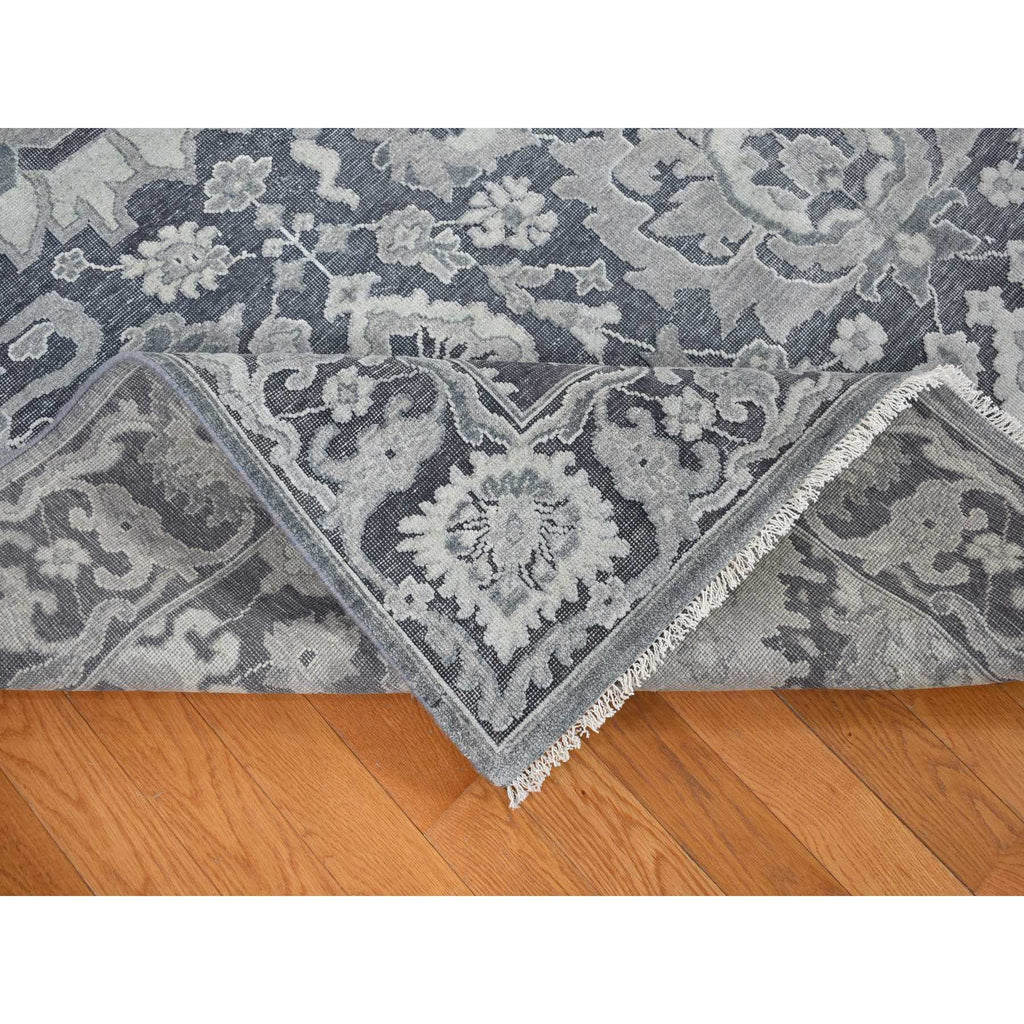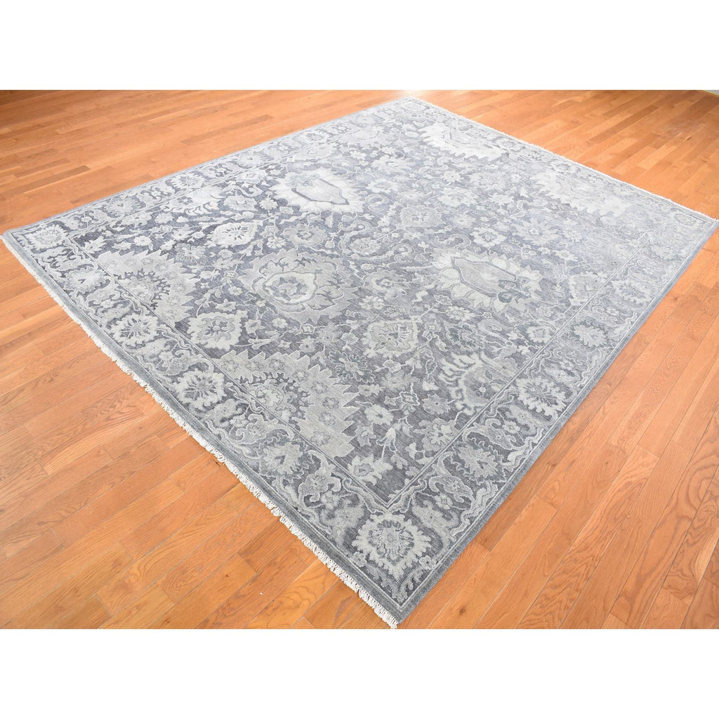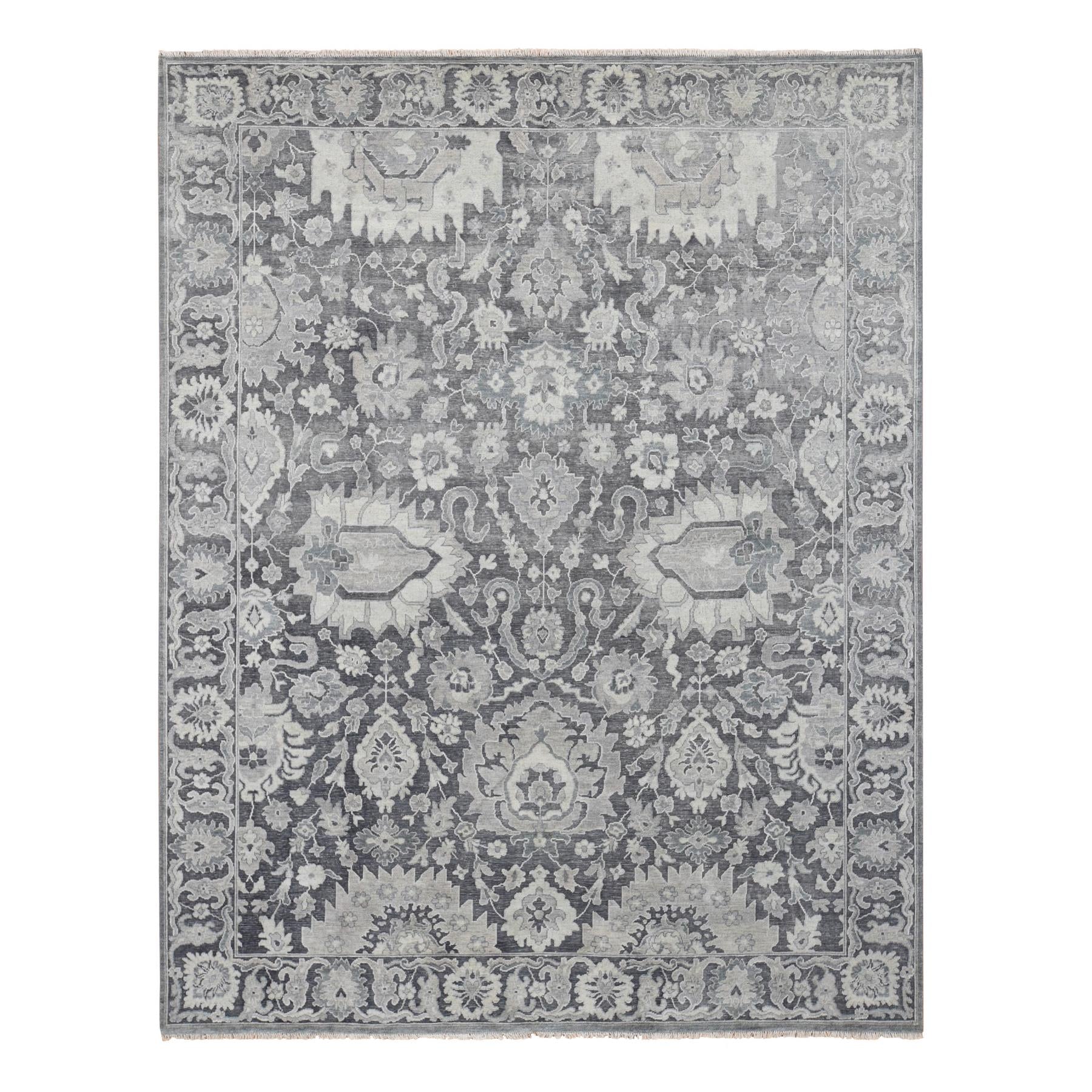 7'10"x10'2" Charcoal Gray, Silk With Textured Wool, Hand Knotted, Oushak Influence, Oriental Rug FWR482310