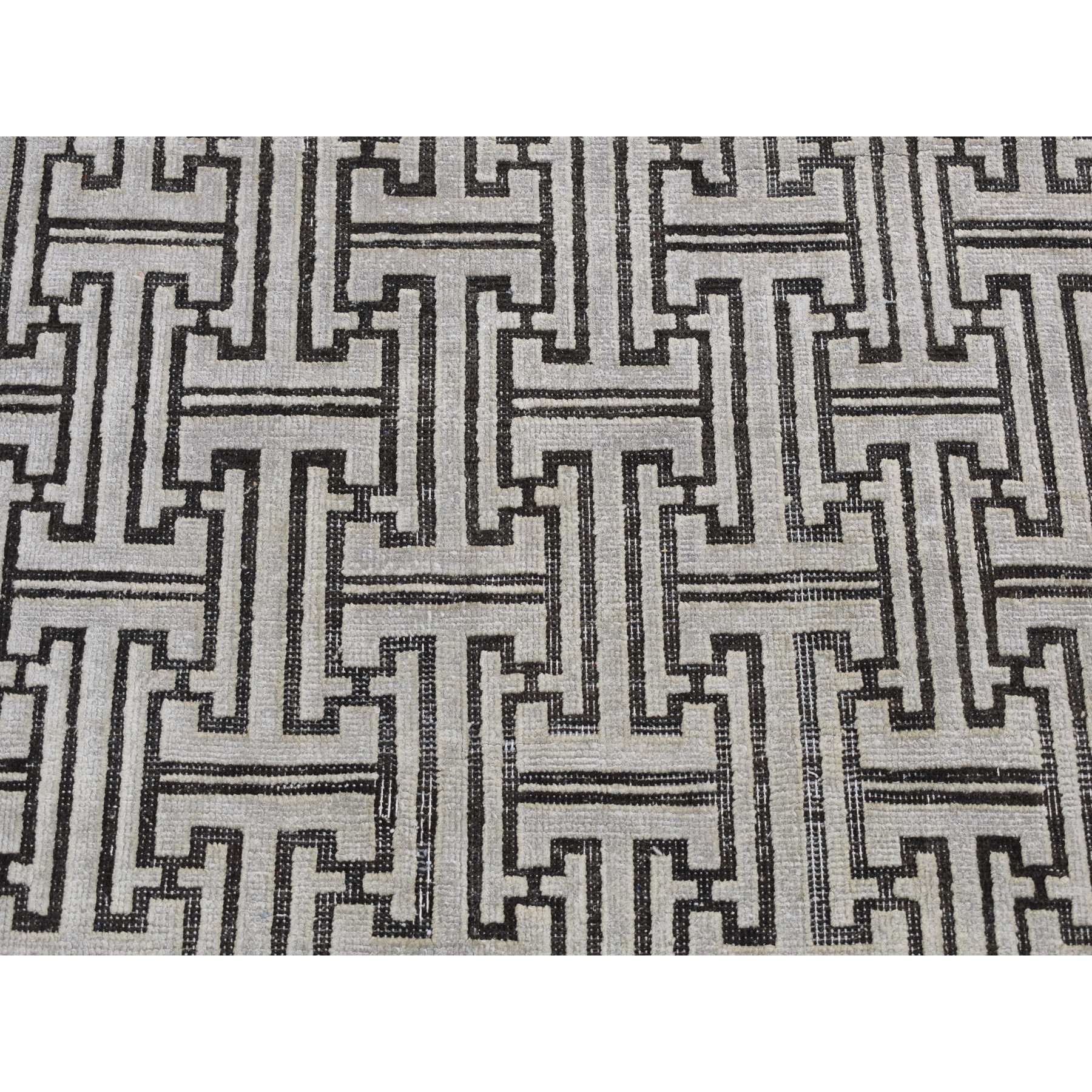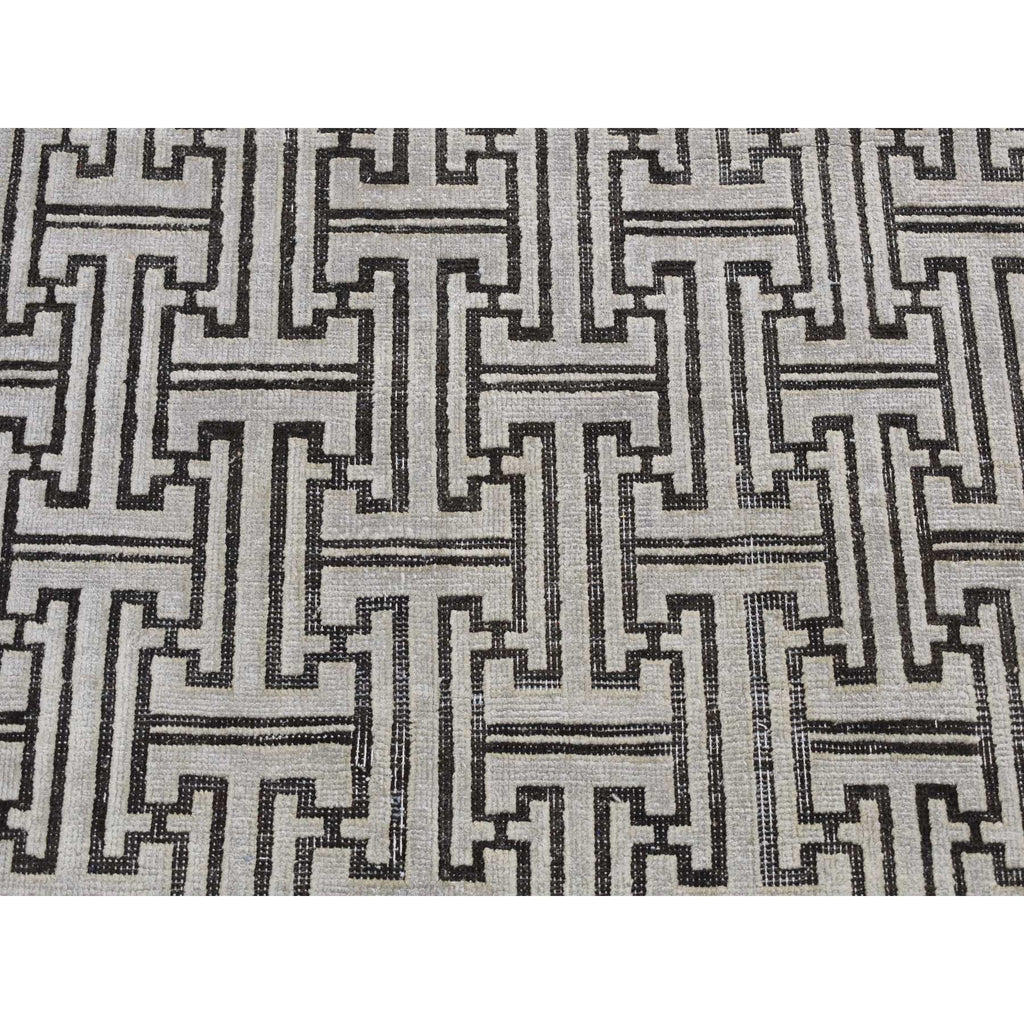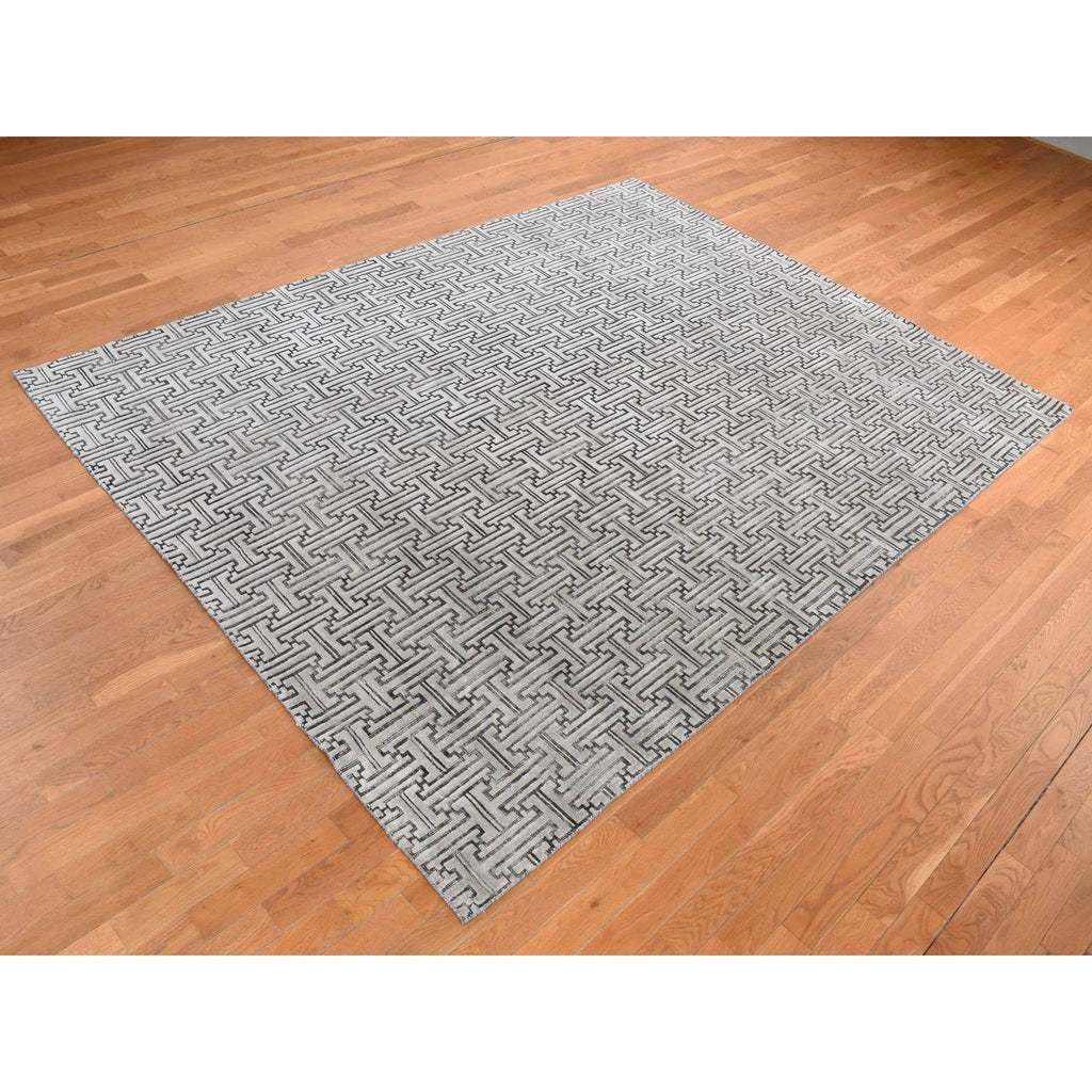 7'10"x10'3" Goose Gray, Pure Silk With Textured Wool, Roman Key Design, Hand Knotted, Oriental Rug FWR484992