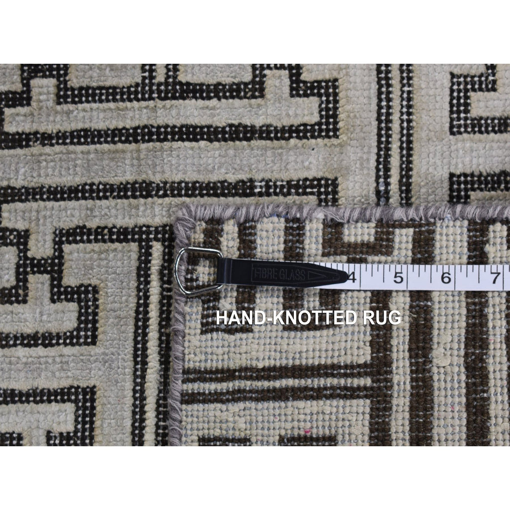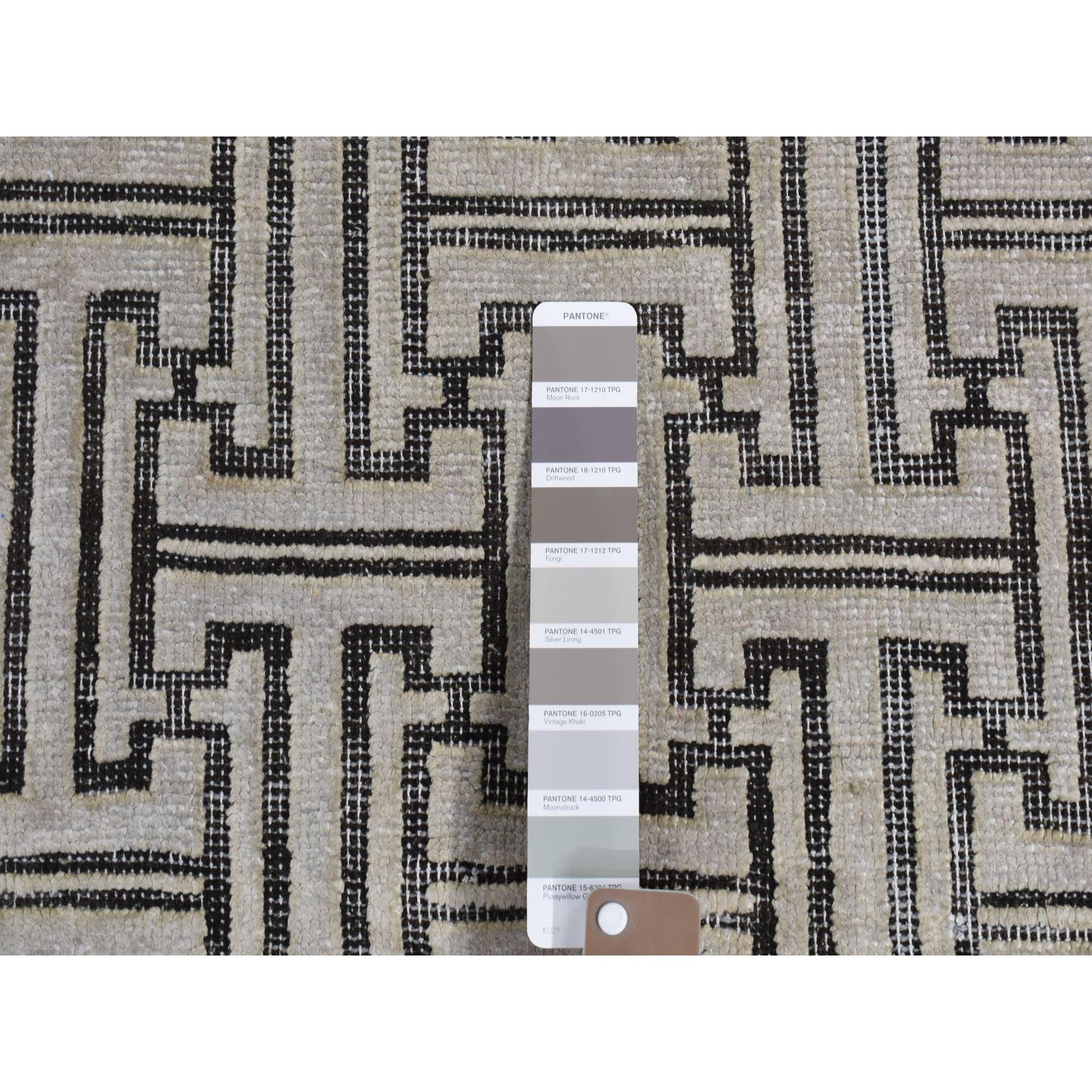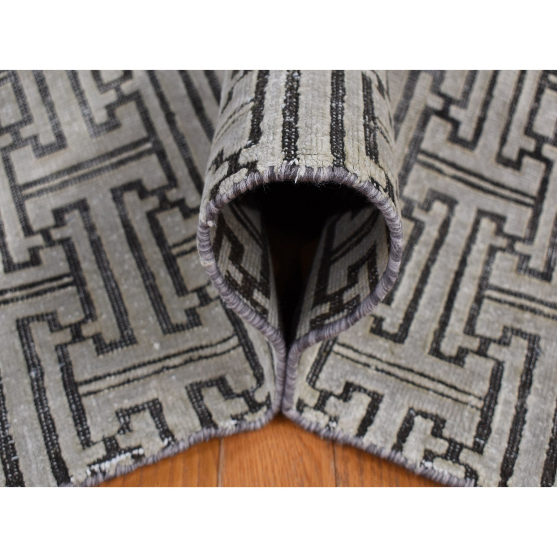 7'10"x10'3" Goose Gray, Pure Silk With Textured Wool, Roman Key Design, Hand Knotted, Oriental Rug FWR484992