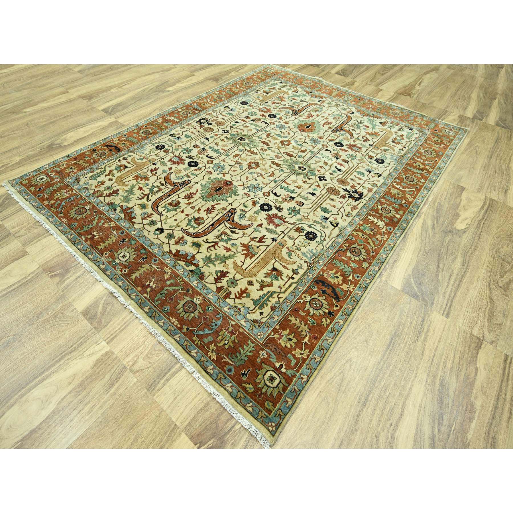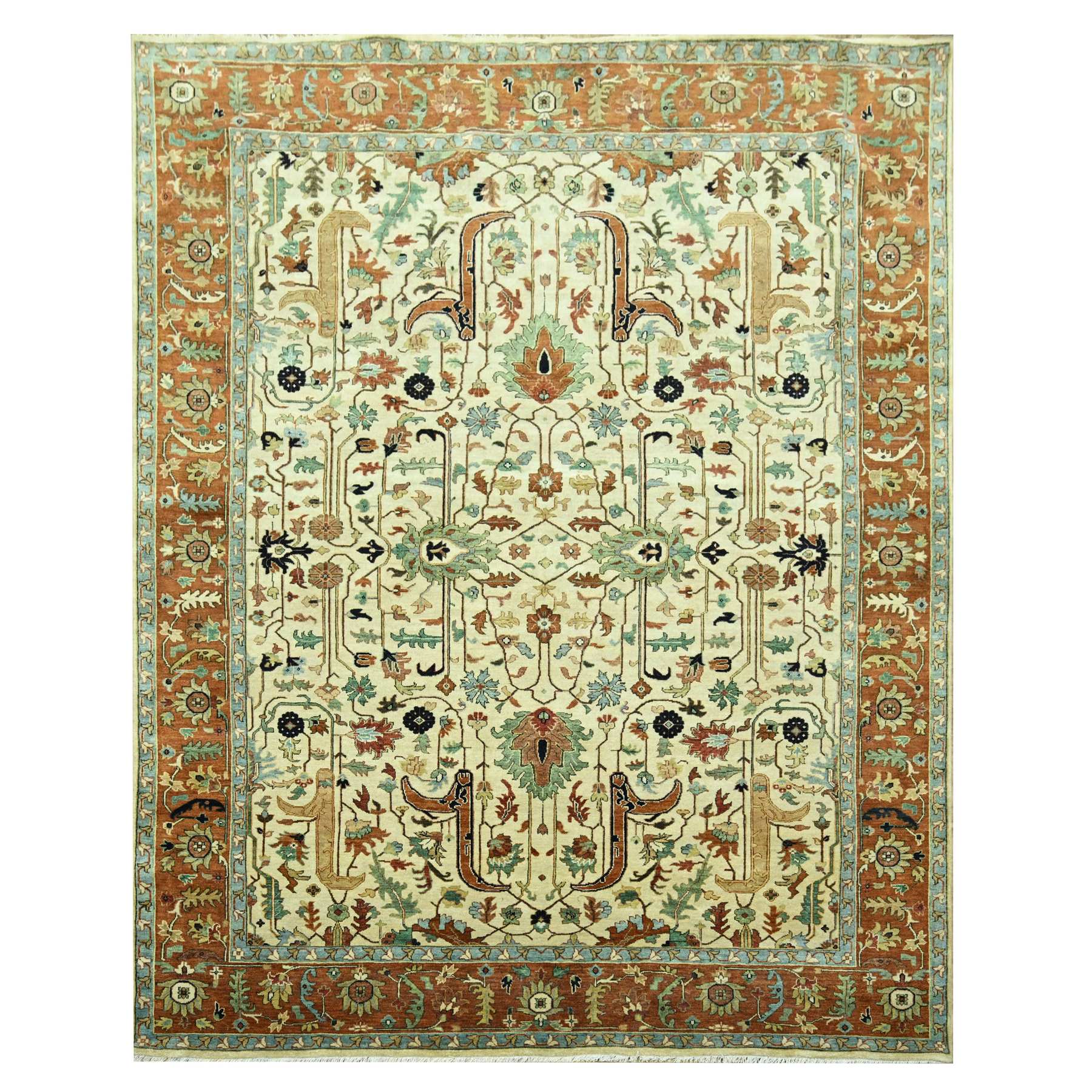 7'10"x10'3" Linen White, Heriz All Over Design, Natural Dyes, Hand Knotted, Soft Pile, Hand Spun New Zealand Wool, Oriental Rug FWR457350