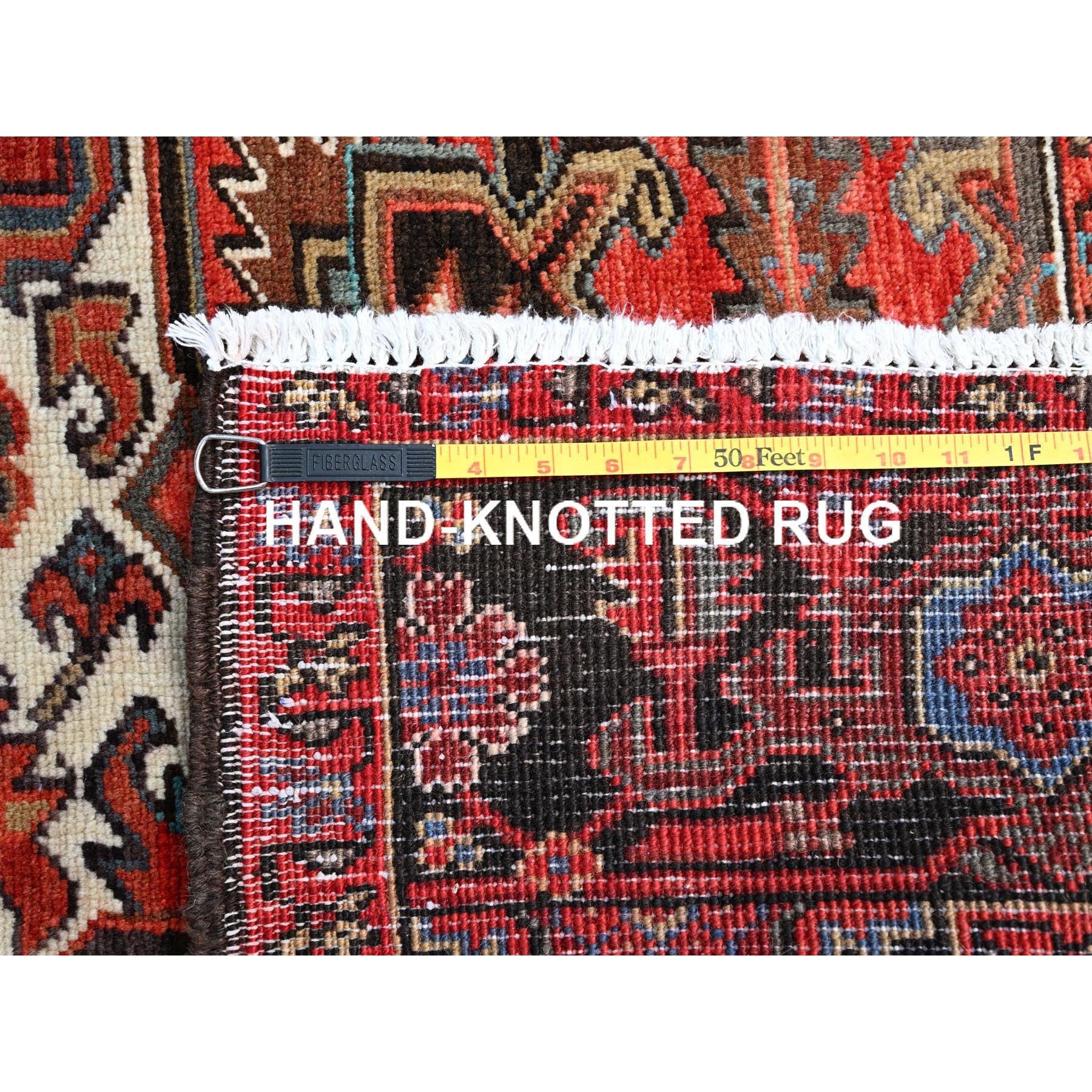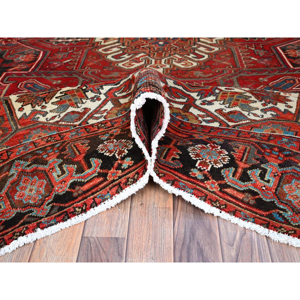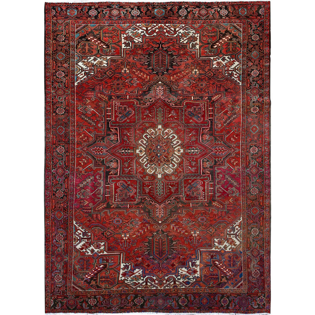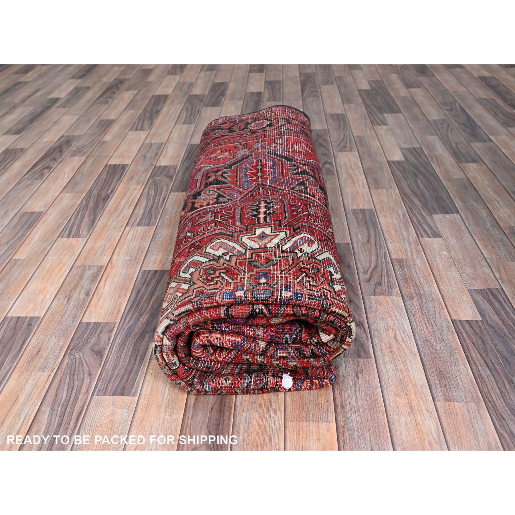 7'10"x10'7" Prismatic Legacy Red, Centre Geometric Element, Sides Secured Professionally, Cleaned, Vintage Persian Heriz, Sheared Low, Organic Wool, Good Condition, Oriental Rug FWR708