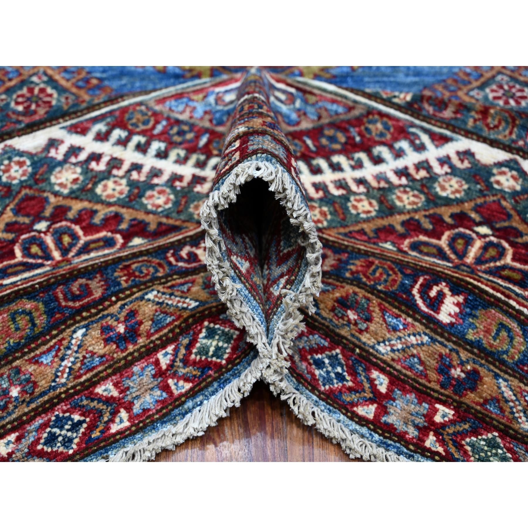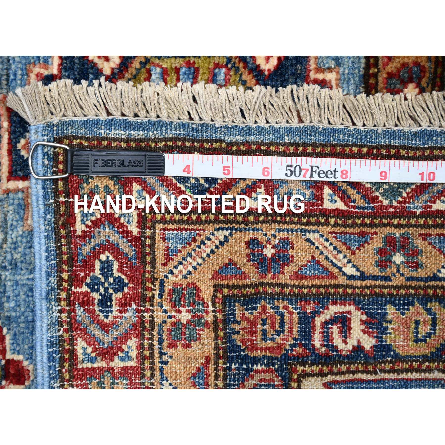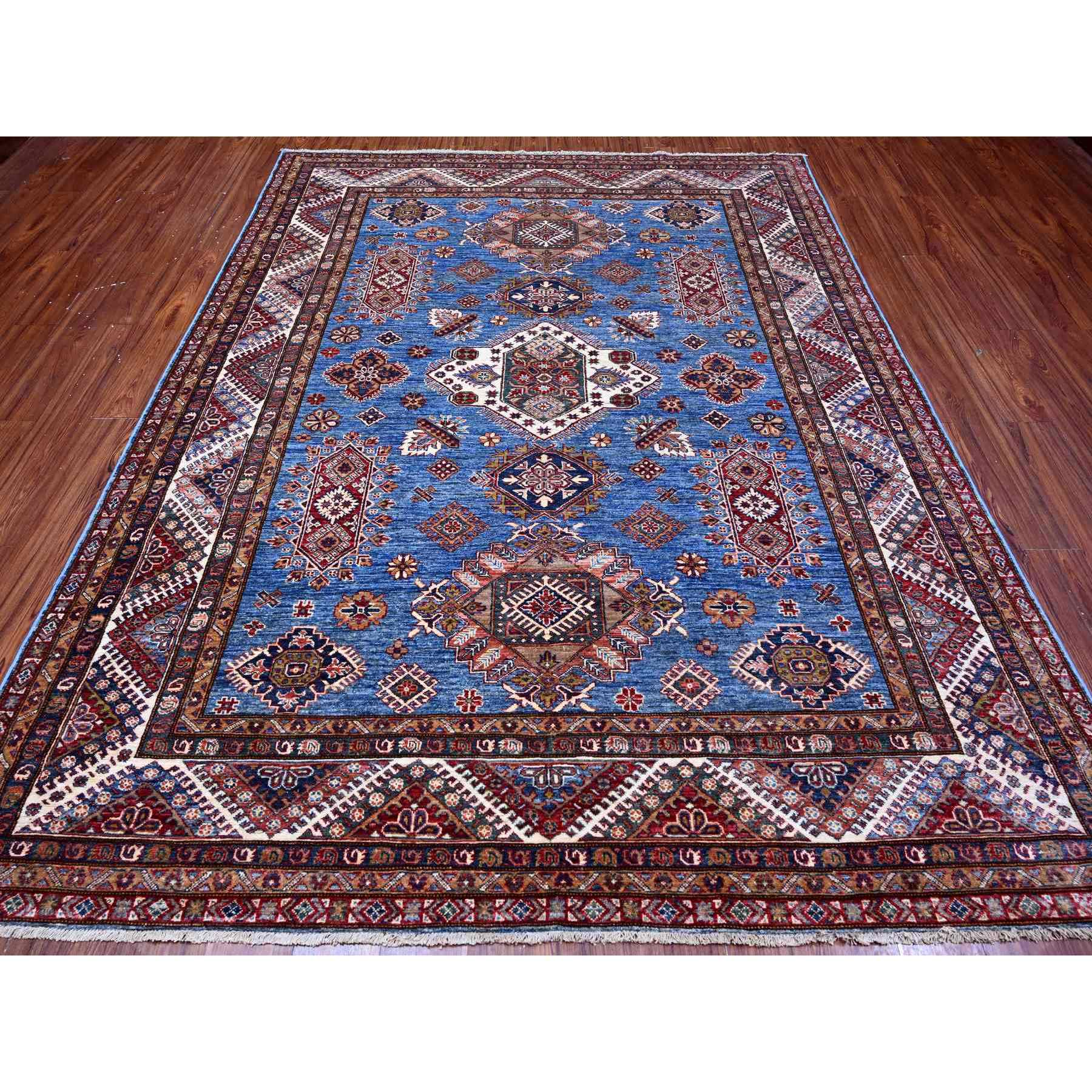 7'10"x10' Busty Blue, Ivory Border, Large Medallions, Hand Knotted, Natural Dyes, Afghan Super Kazak All Wool, Oriental Rug FWR534672