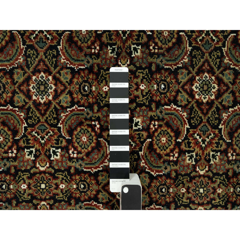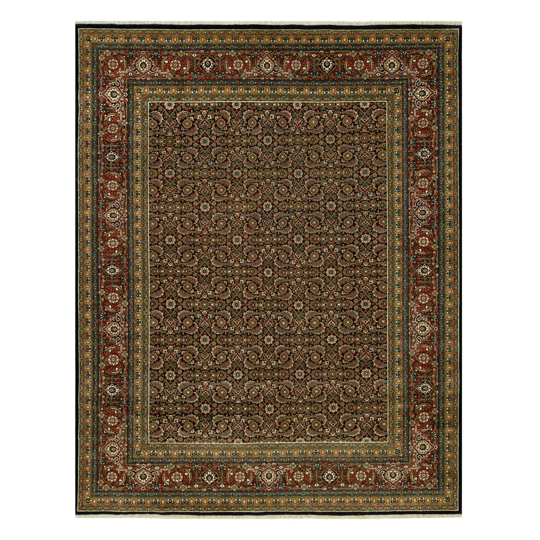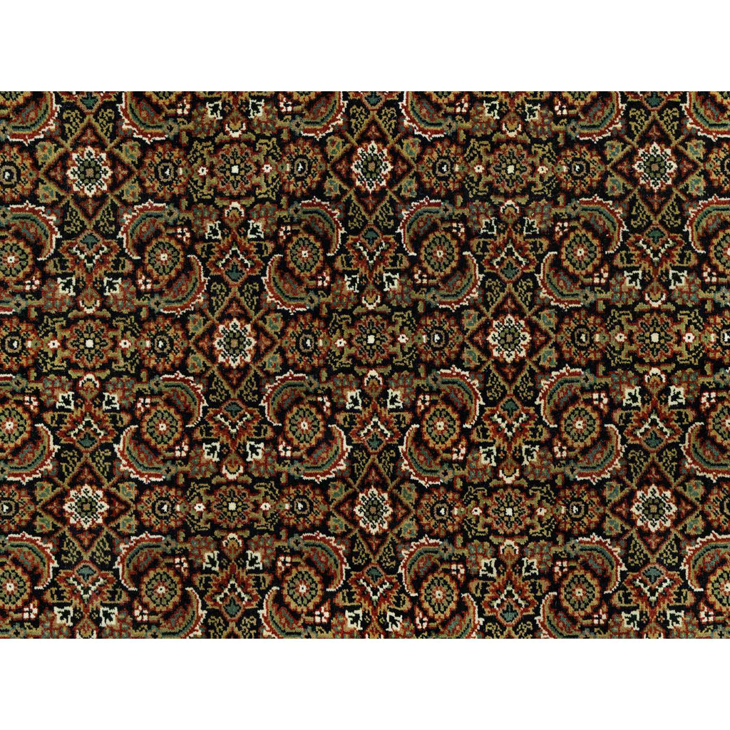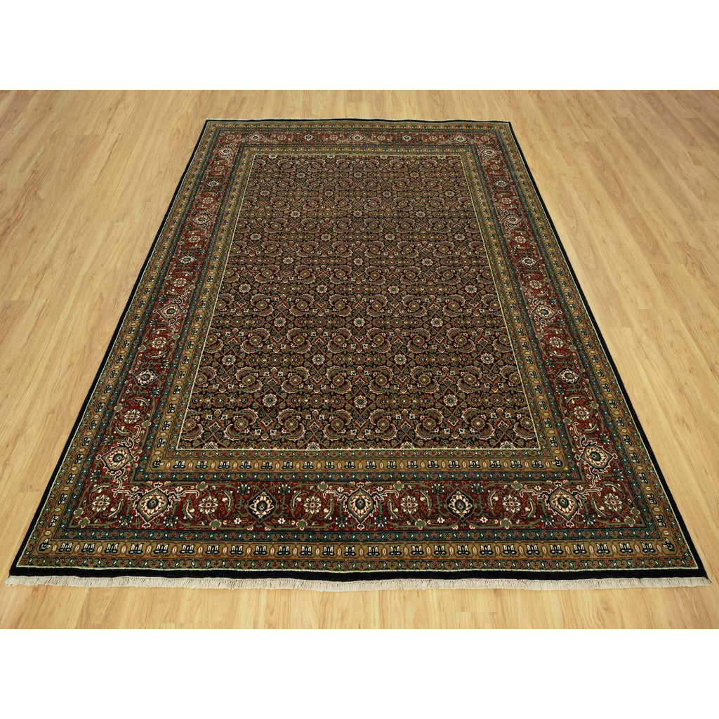 7'10"x10' Jade Black With Tueson Red Border, Denser Weave, All Over Fish Pattern, Herati Design, Soft And Vibrant Wool, Hand Knotted, Oriental Rug FWR542664