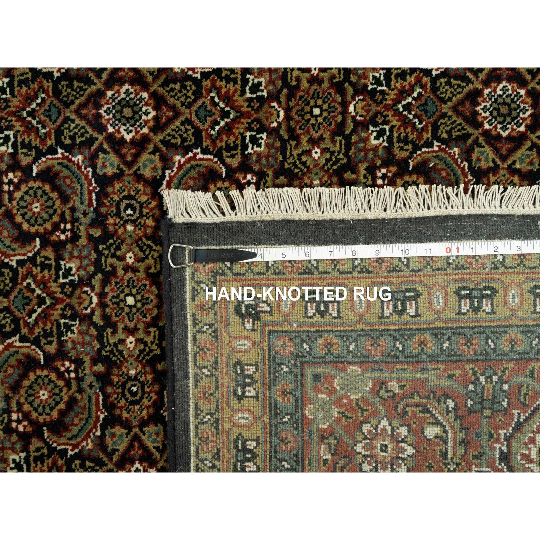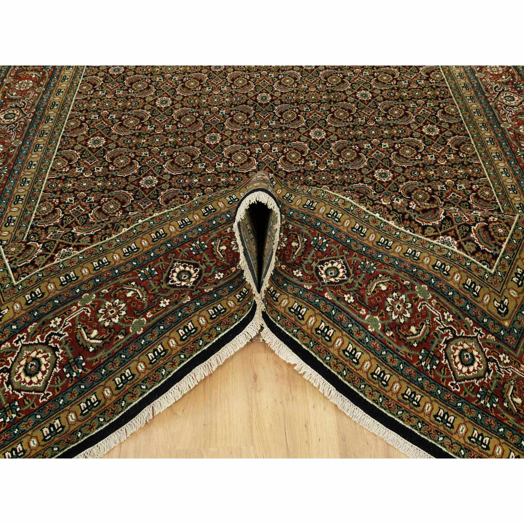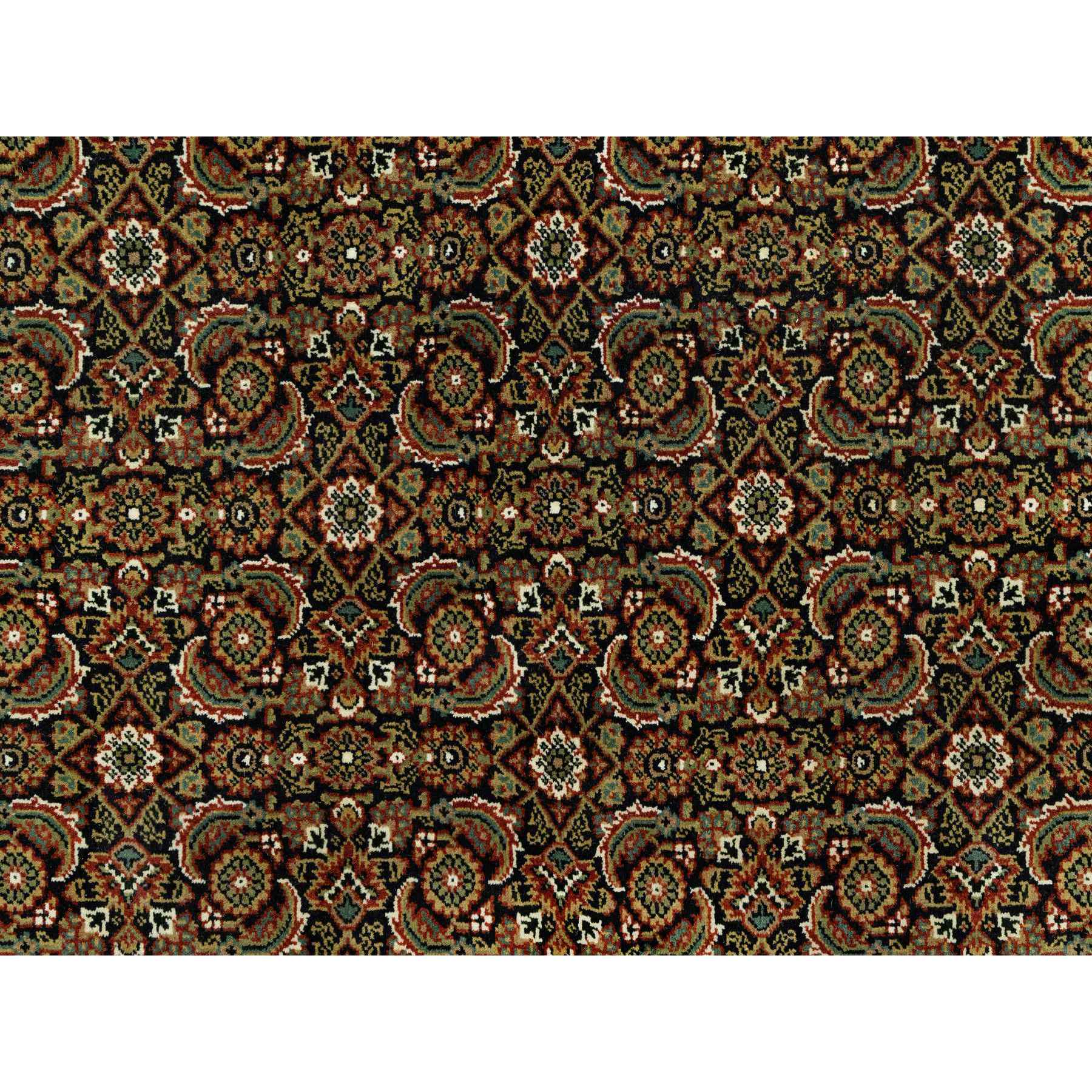7'10"x10' Jade Black With Tueson Red Border, Denser Weave, All Over Fish Pattern, Herati Design, Soft And Vibrant Wool, Hand Knotted, Oriental Rug FWR542664
