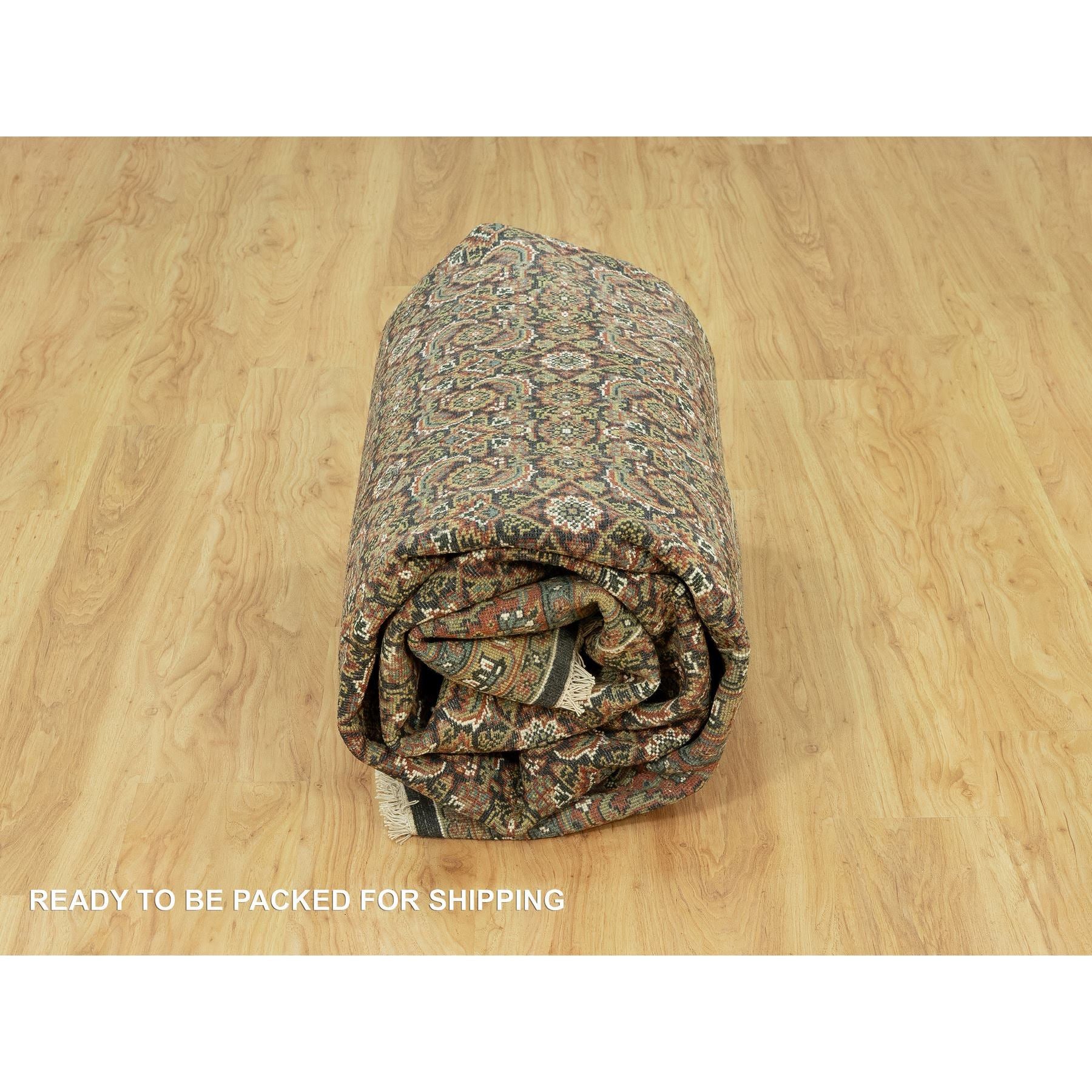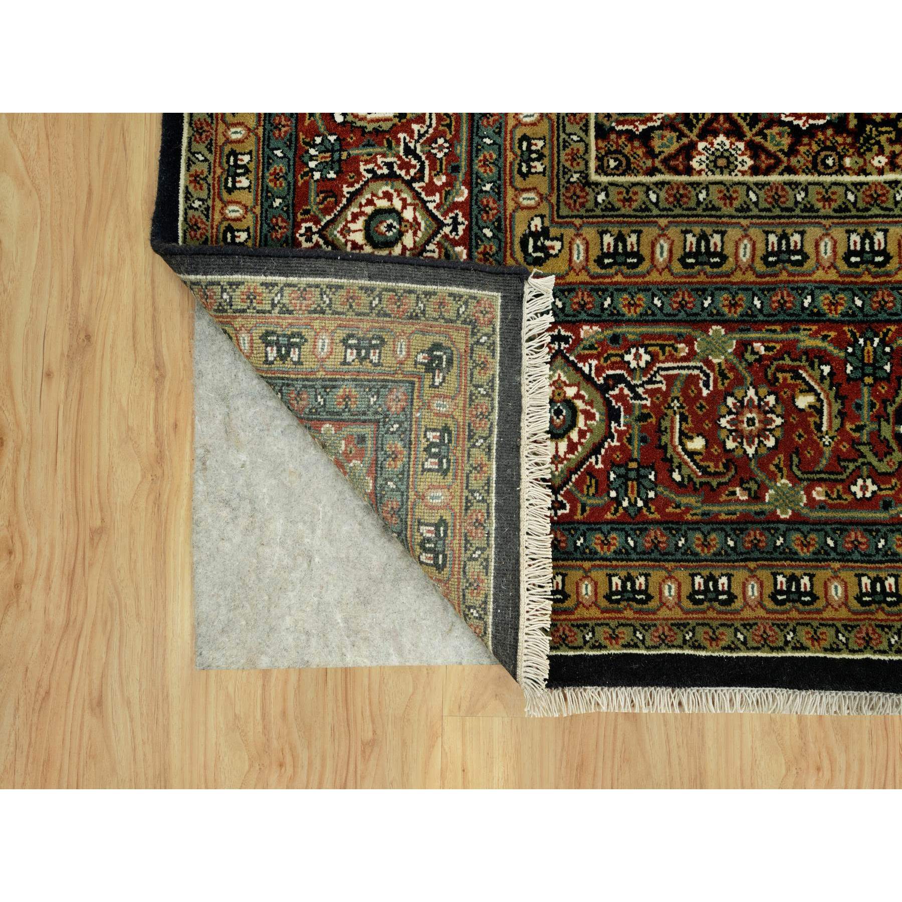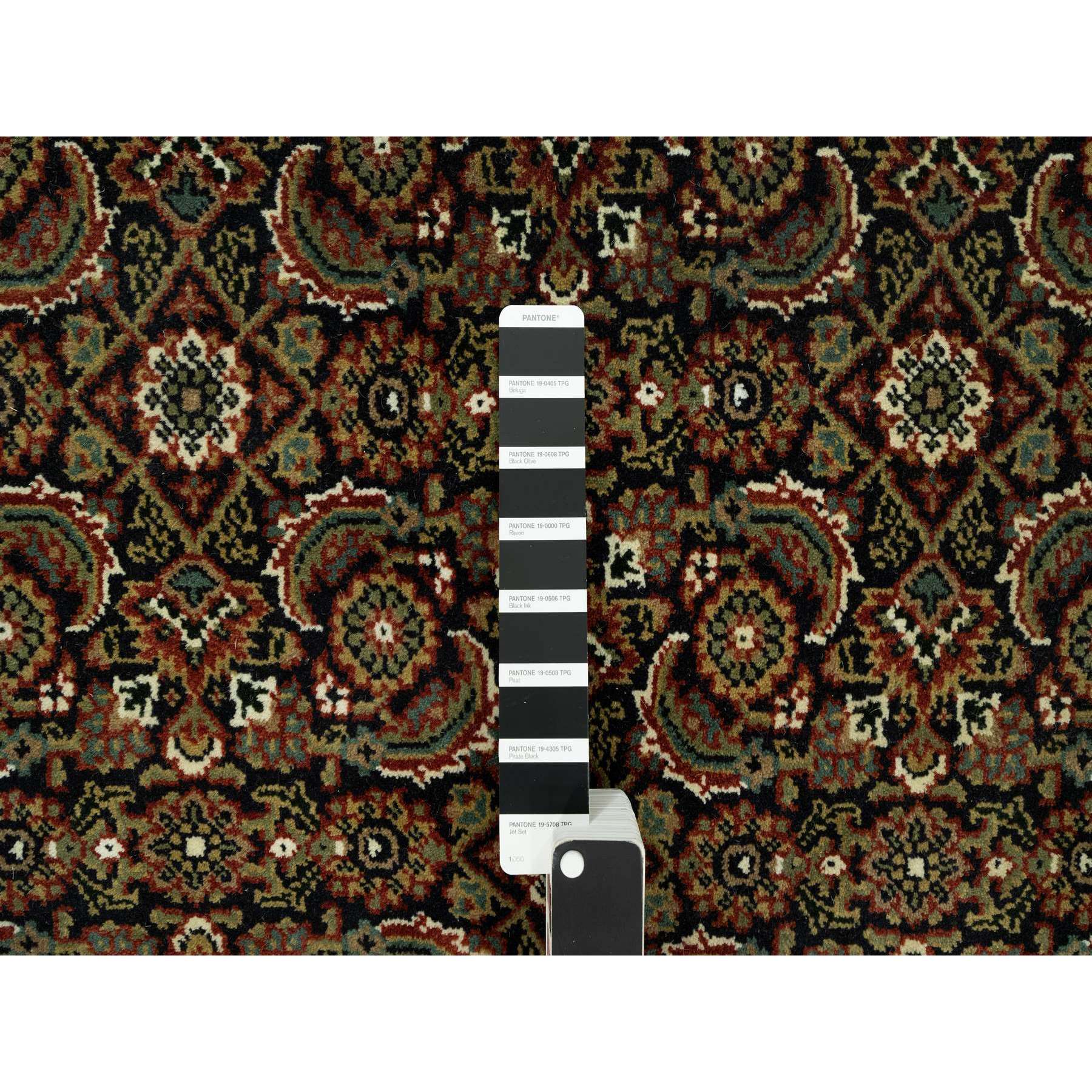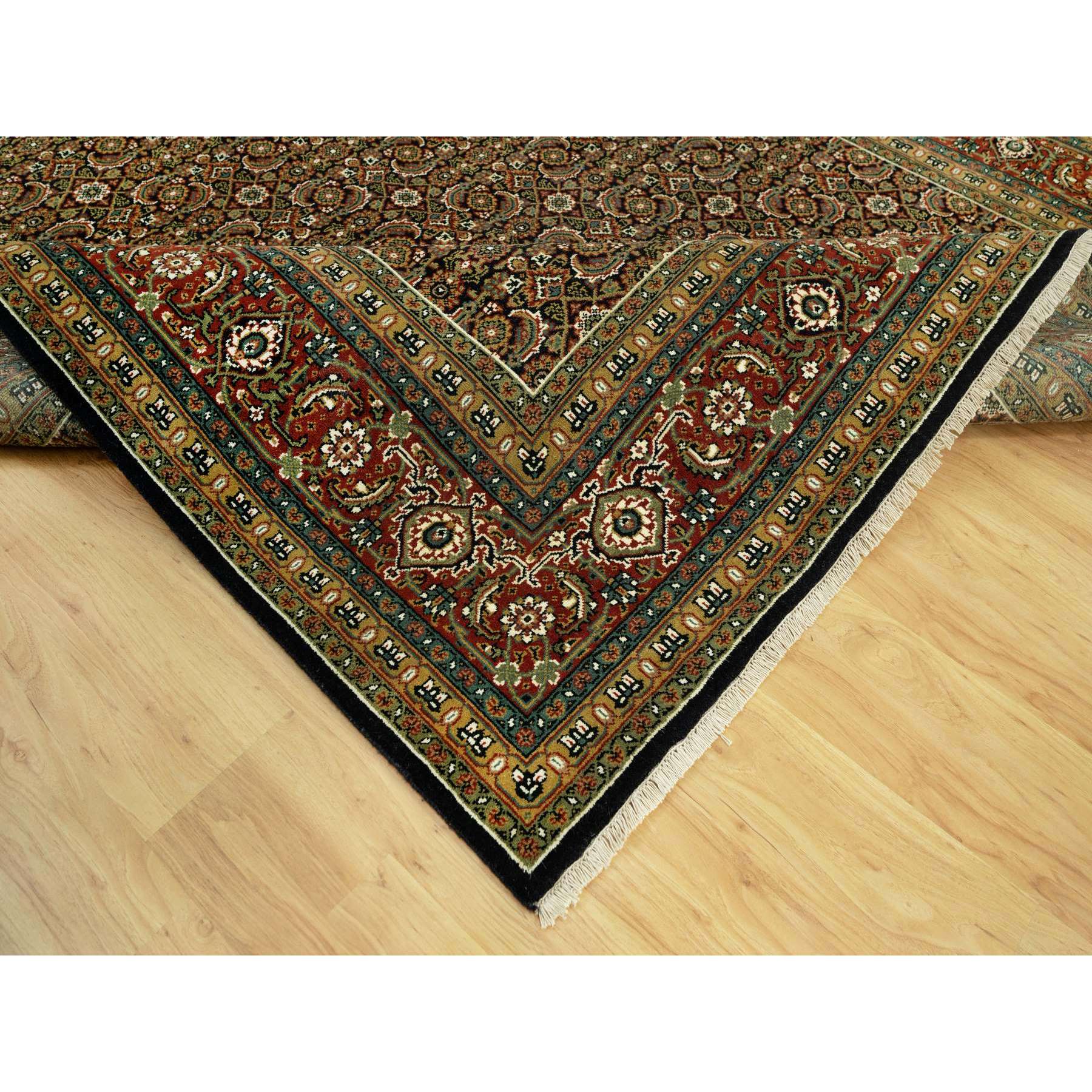 7'10"x10' Jade Black With Tueson Red Border, Denser Weave, All Over Fish Pattern, Herati Design, Soft And Vibrant Wool, Hand Knotted, Oriental Rug FWR542664