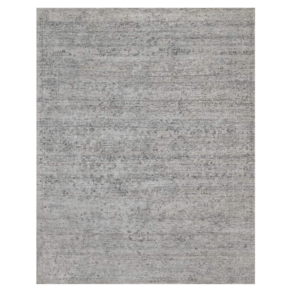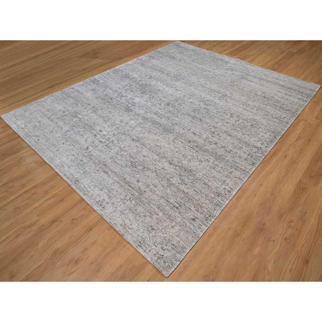 7'10"x10' Porcelain White With Soft Colors, Nepali Weave, Modern Design, Undyed Natural Wool, Shaved Low, Tone On Tone, Hand Knotted, Oriental Rug FWR548538