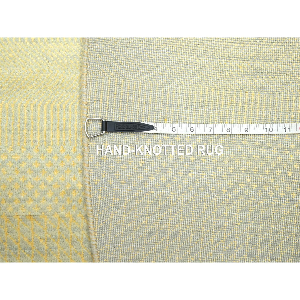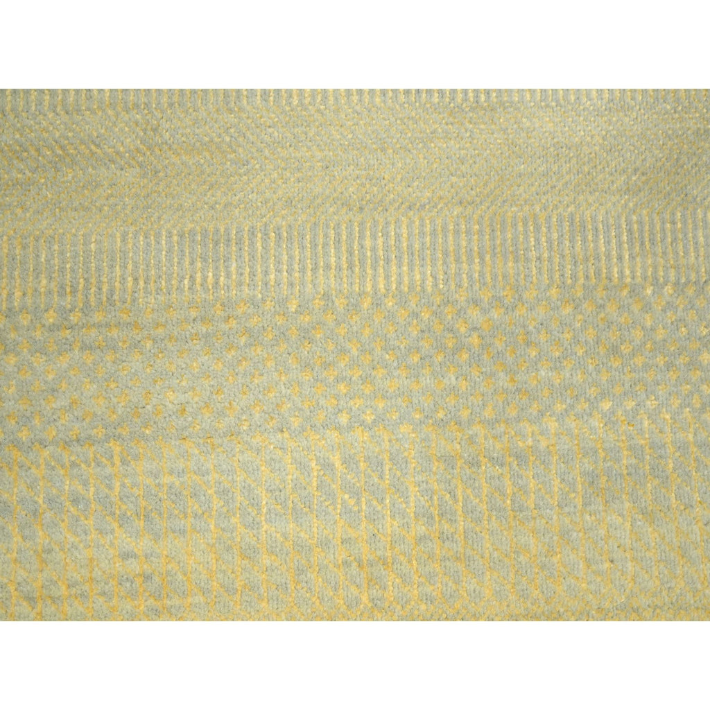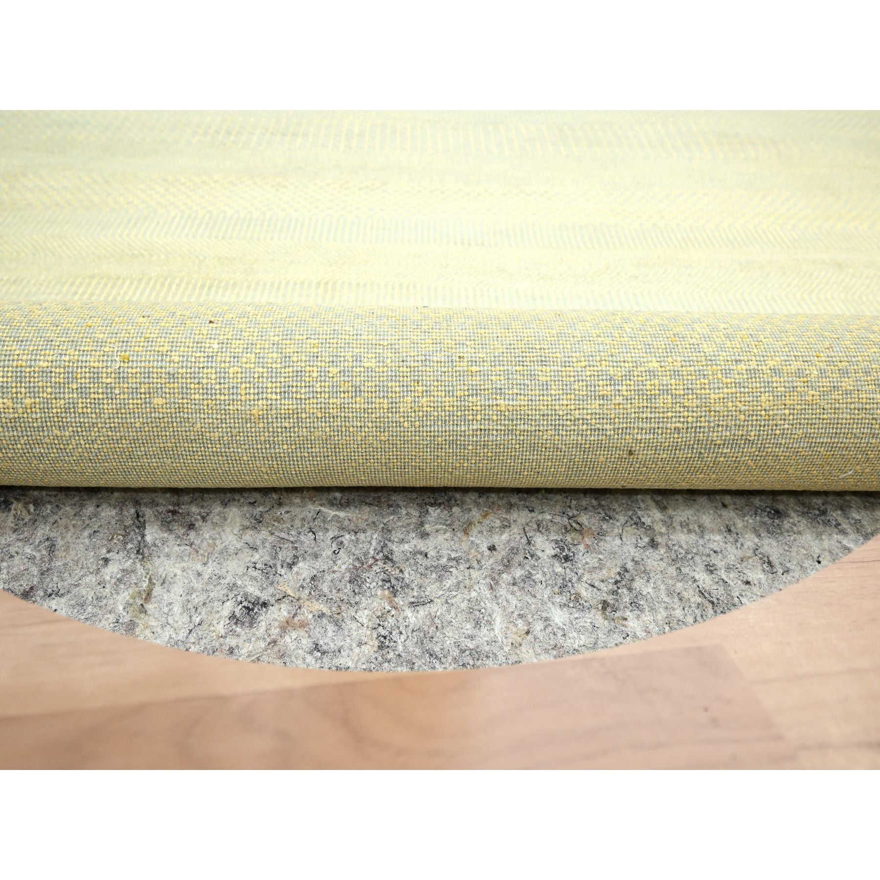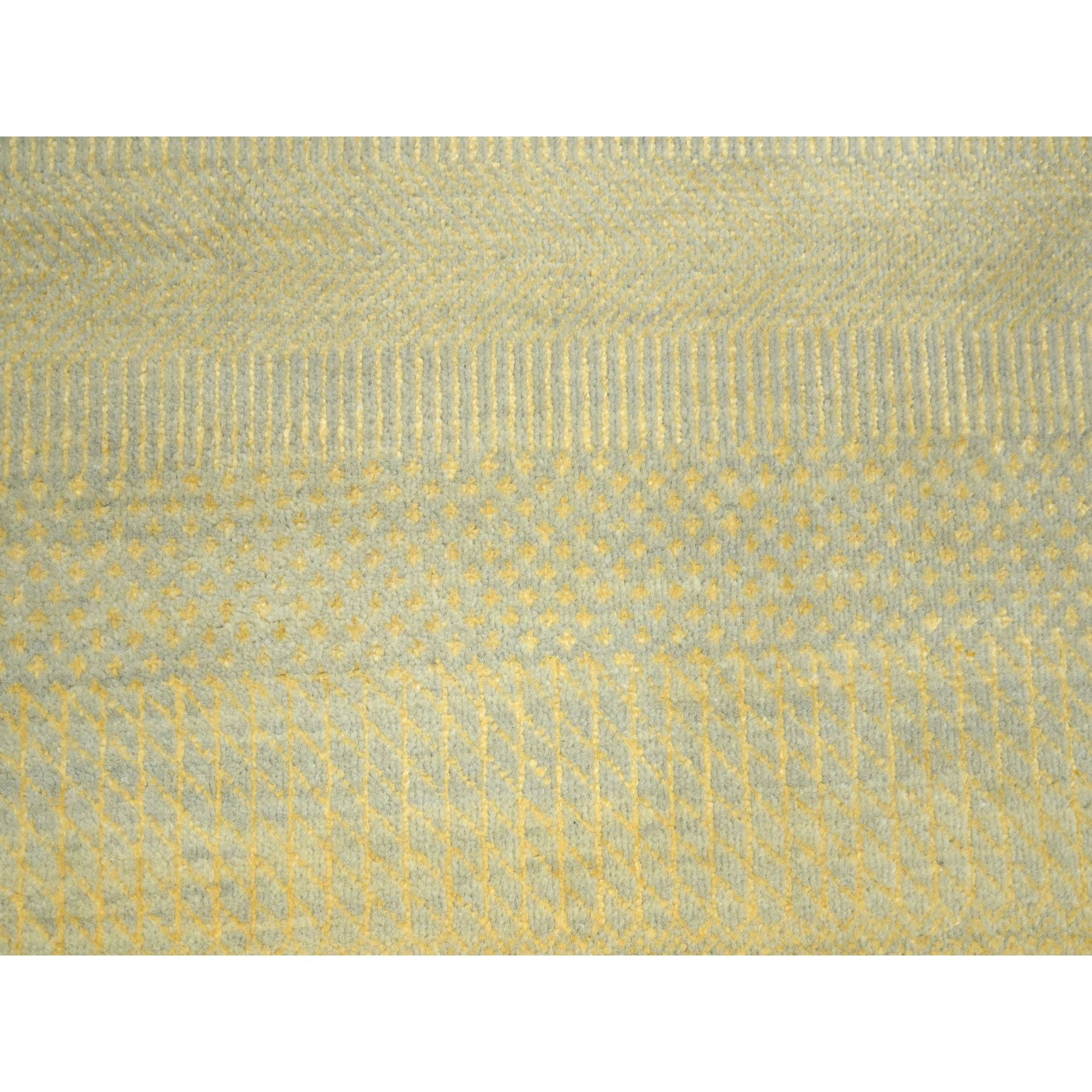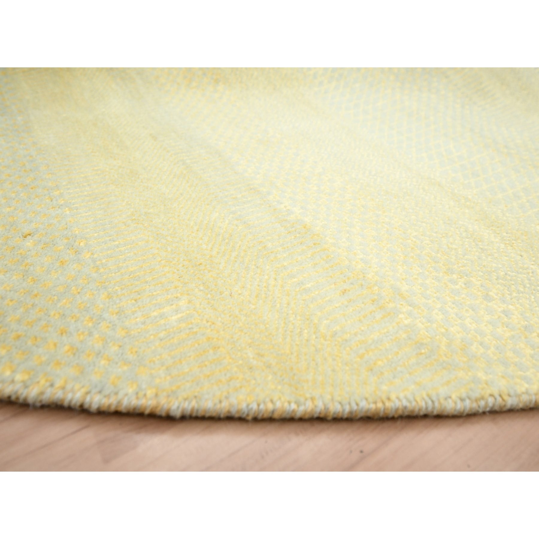 7'10"x7'10" Golden Yellow, Modern Grass Design, Hand Knotted, Wool And Silk, Lush And Plush, Tone On Tone, Denser Weave, Round, Oriental Rug FWR499272