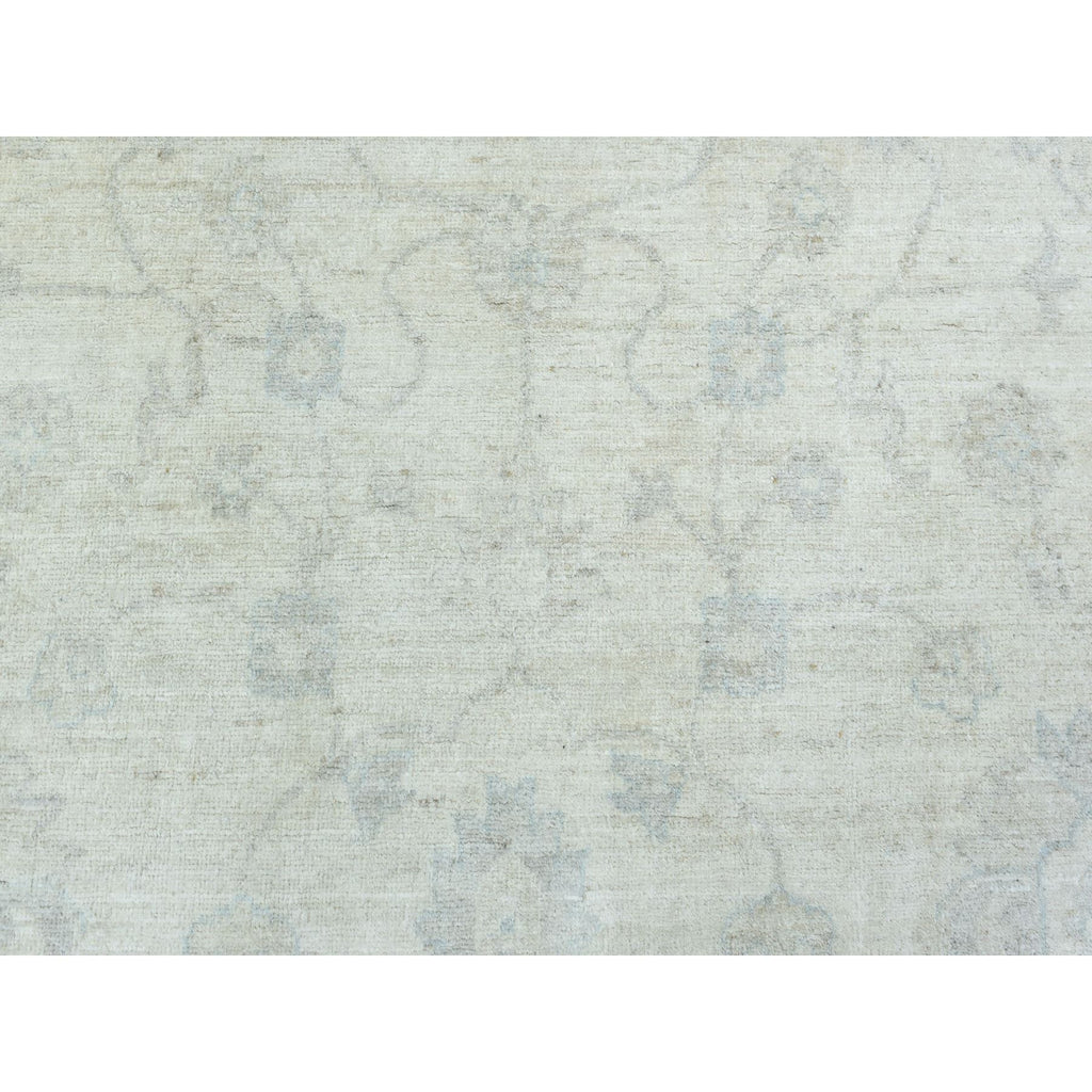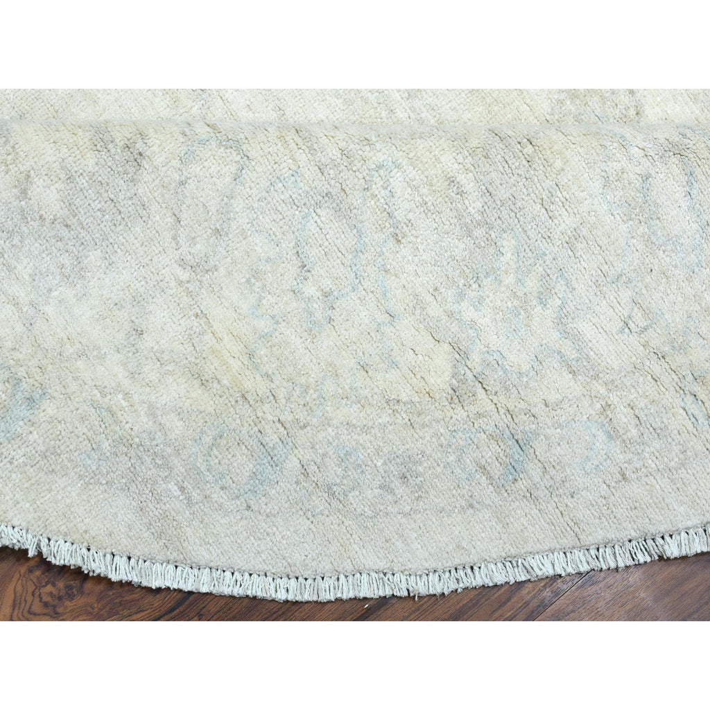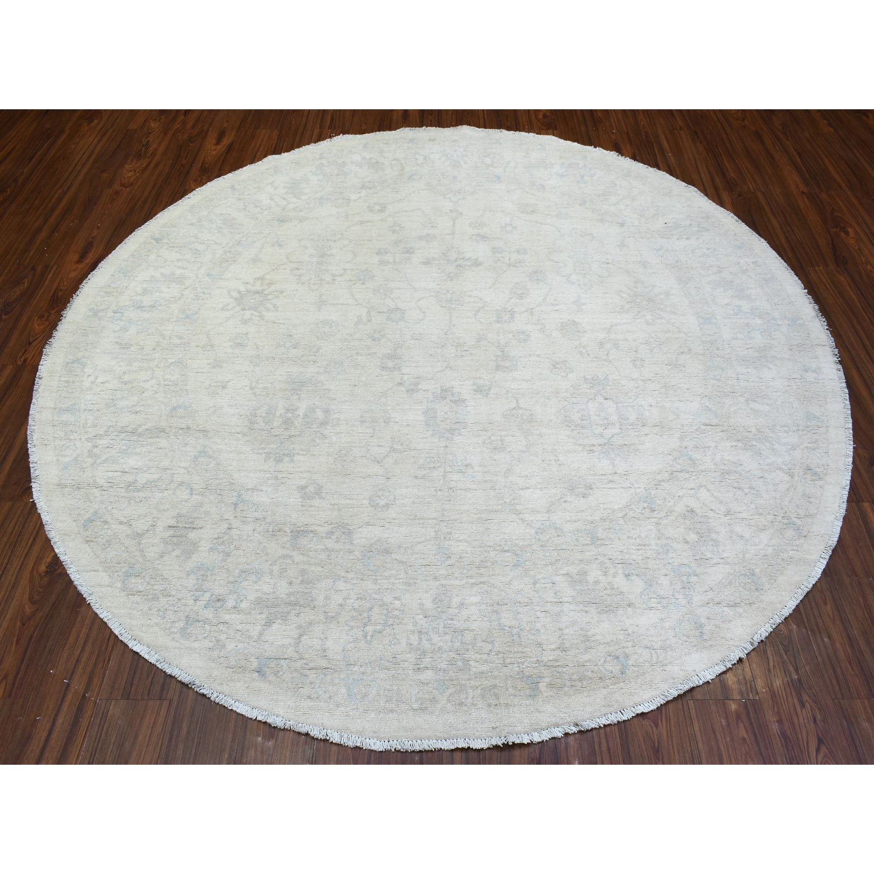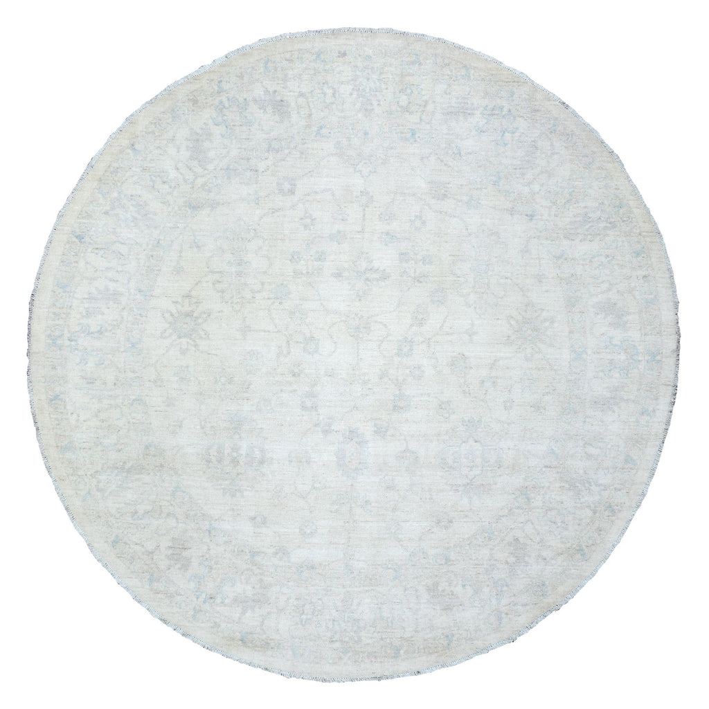 7'10"x7'10" Ivory, White Wash Peshawar Natural Dyes, Soft And Shiny Wool Hand Knotted, Round Oriental Rug FWR437286