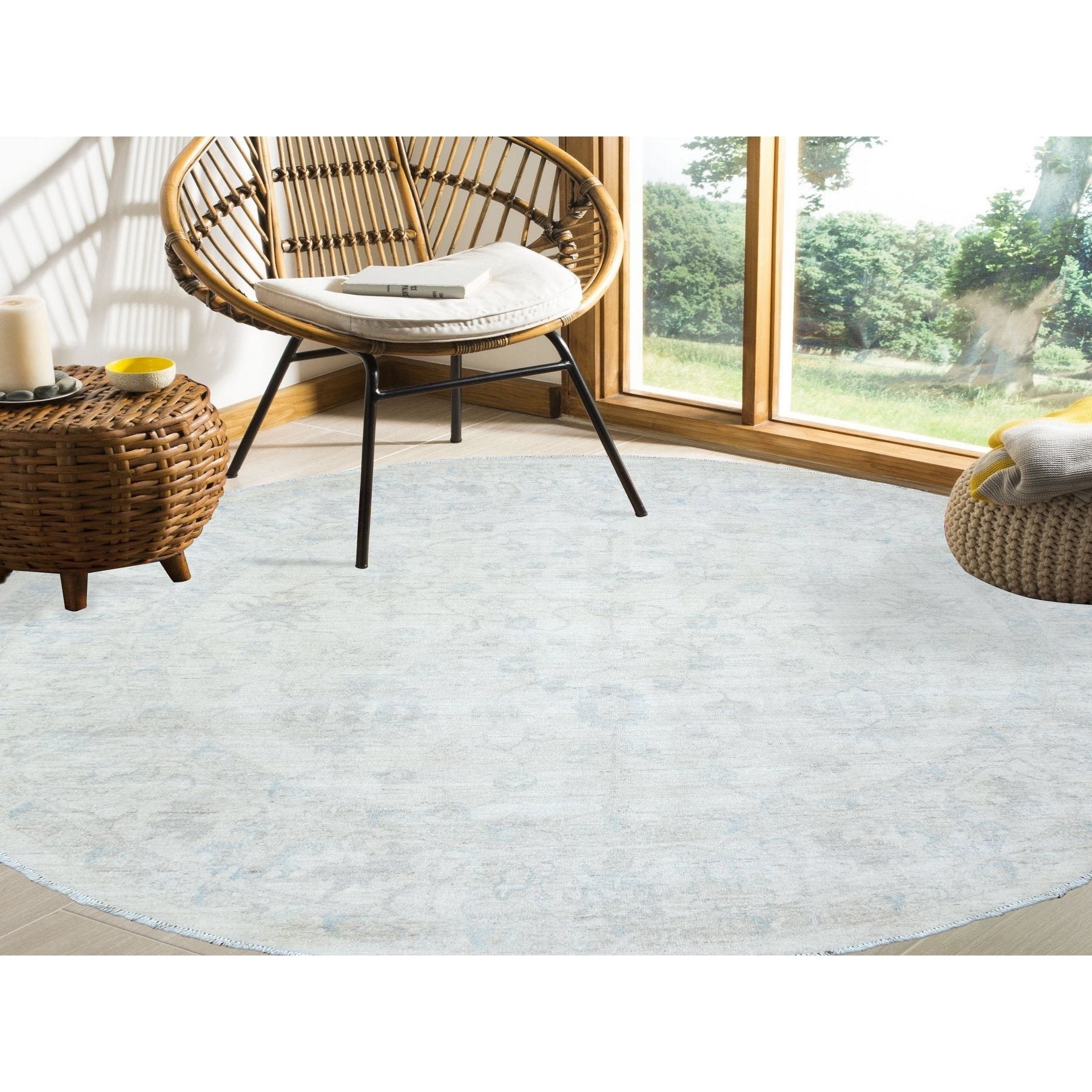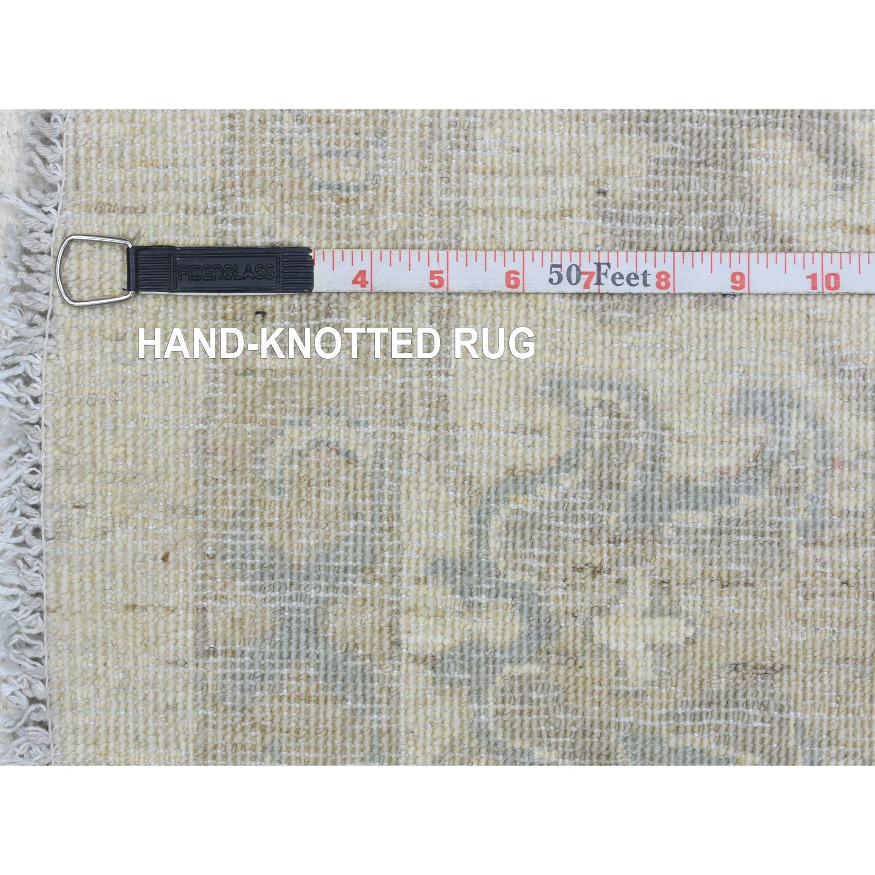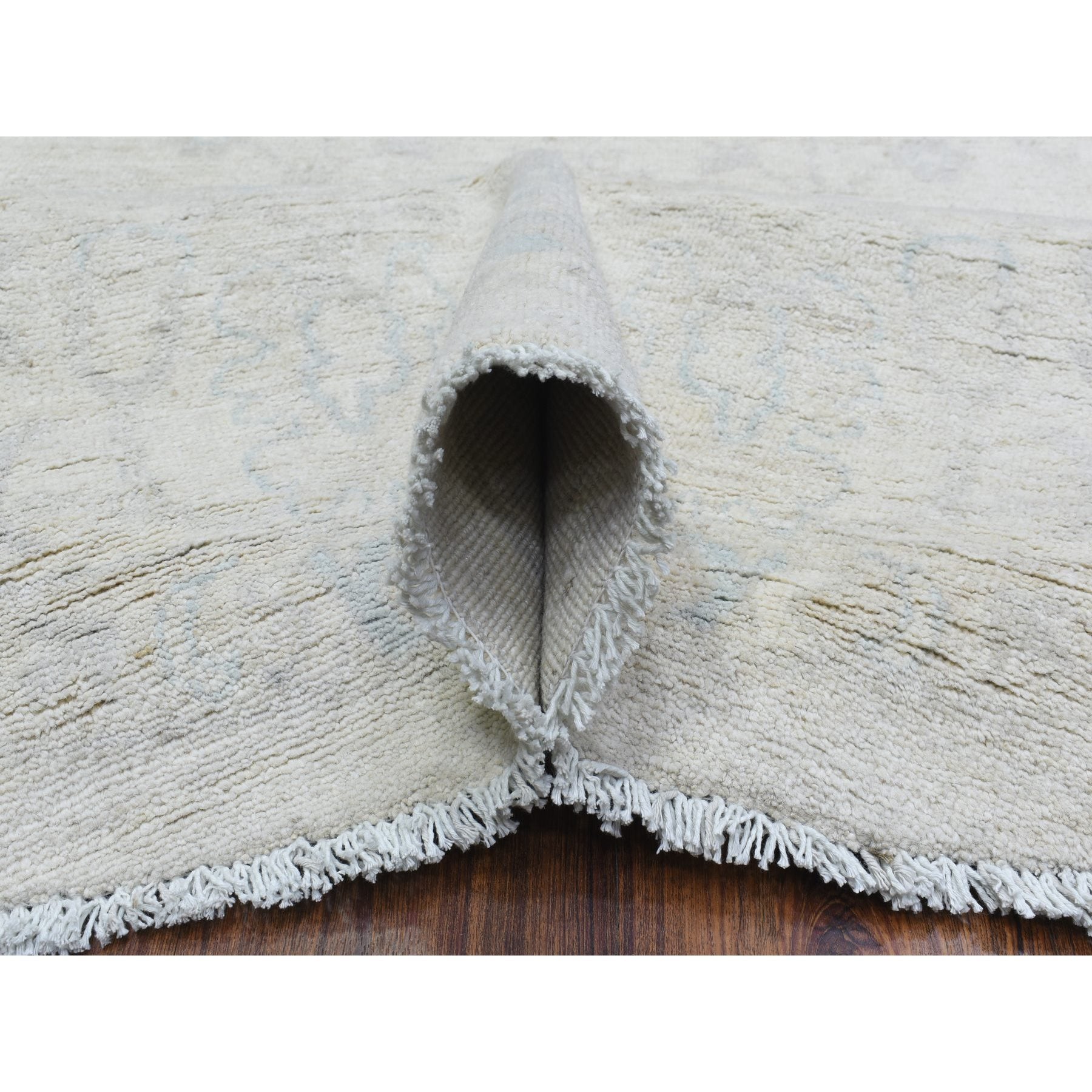 7'10"x7'10" Ivory, White Wash Peshawar Natural Dyes, Soft And Shiny Wool Hand Knotted, Round Oriental Rug FWR437286