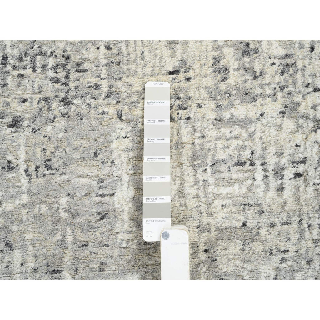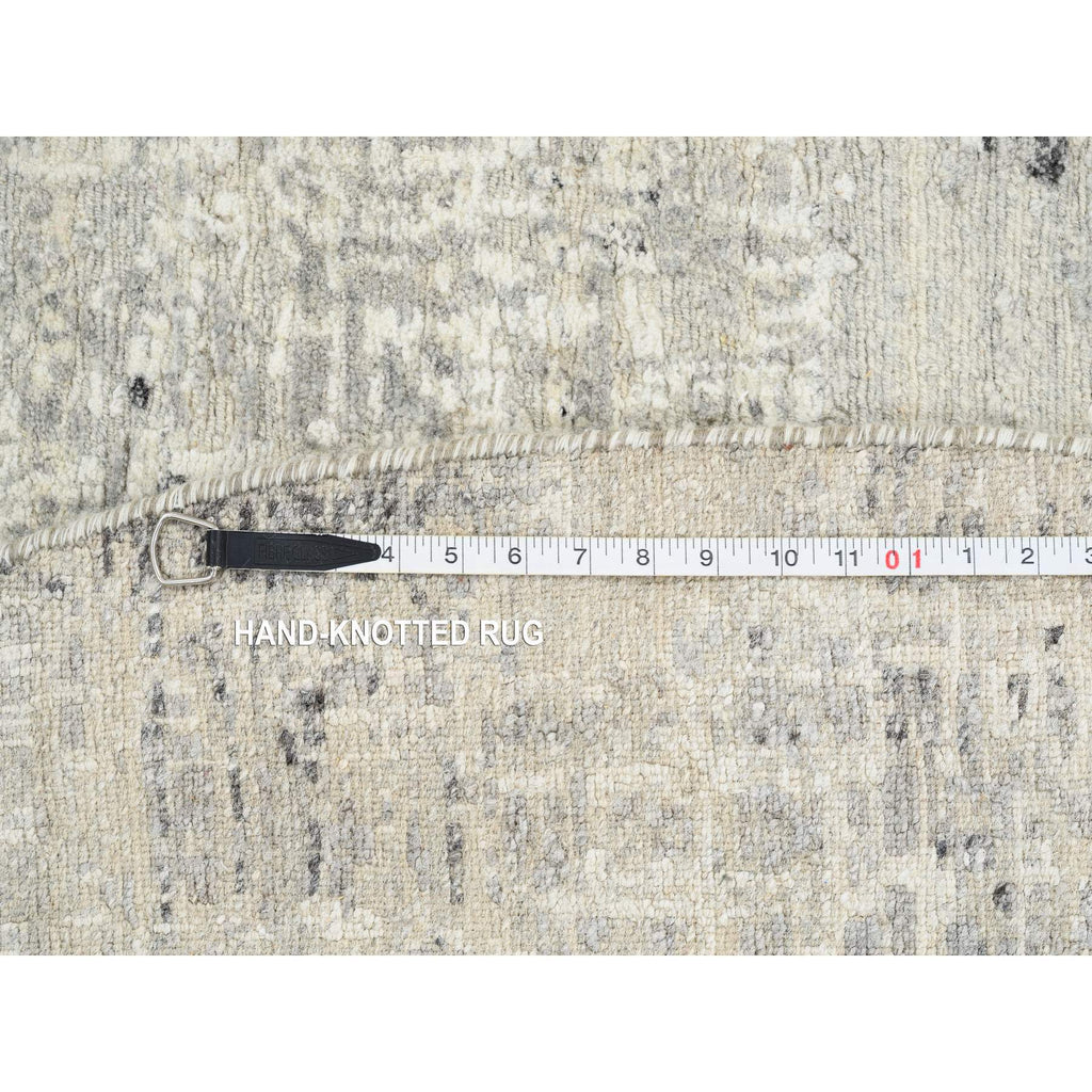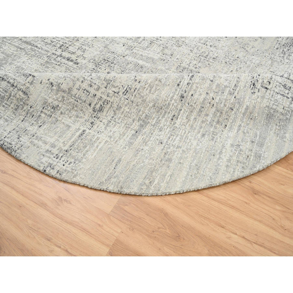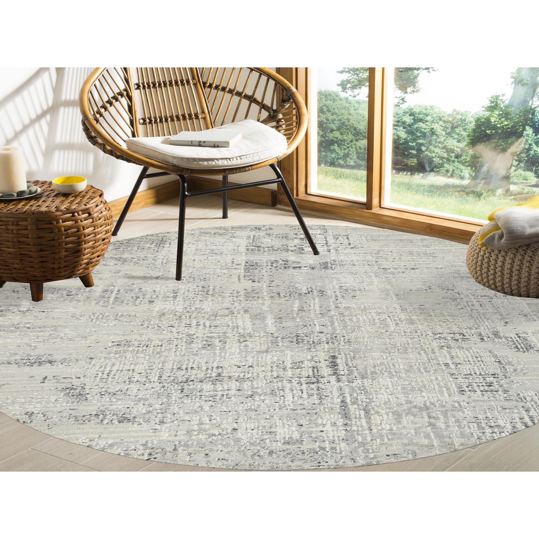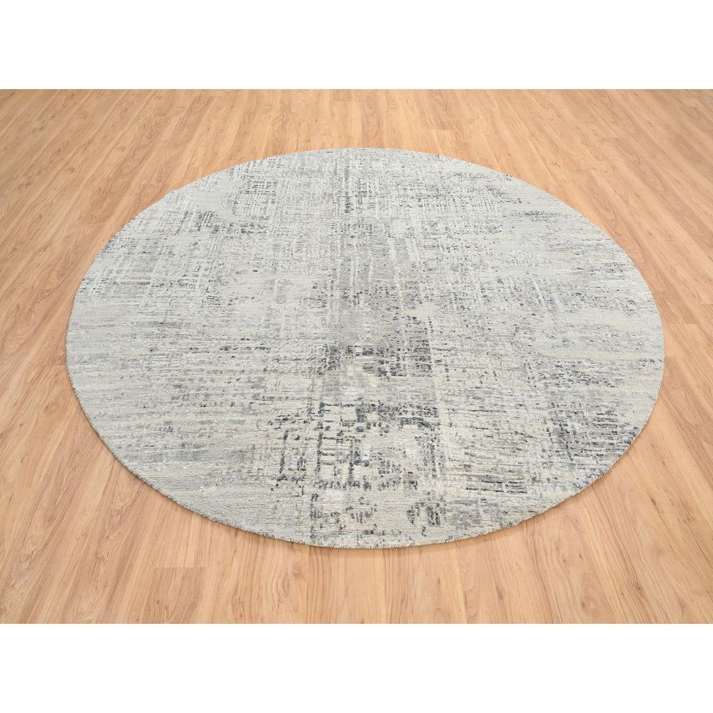 7'10"x7'10" Light Gray, Hand Spun Undyed Natural Wool, Hand Knotted, Modern Design, Round Oriental Rug FWR388200