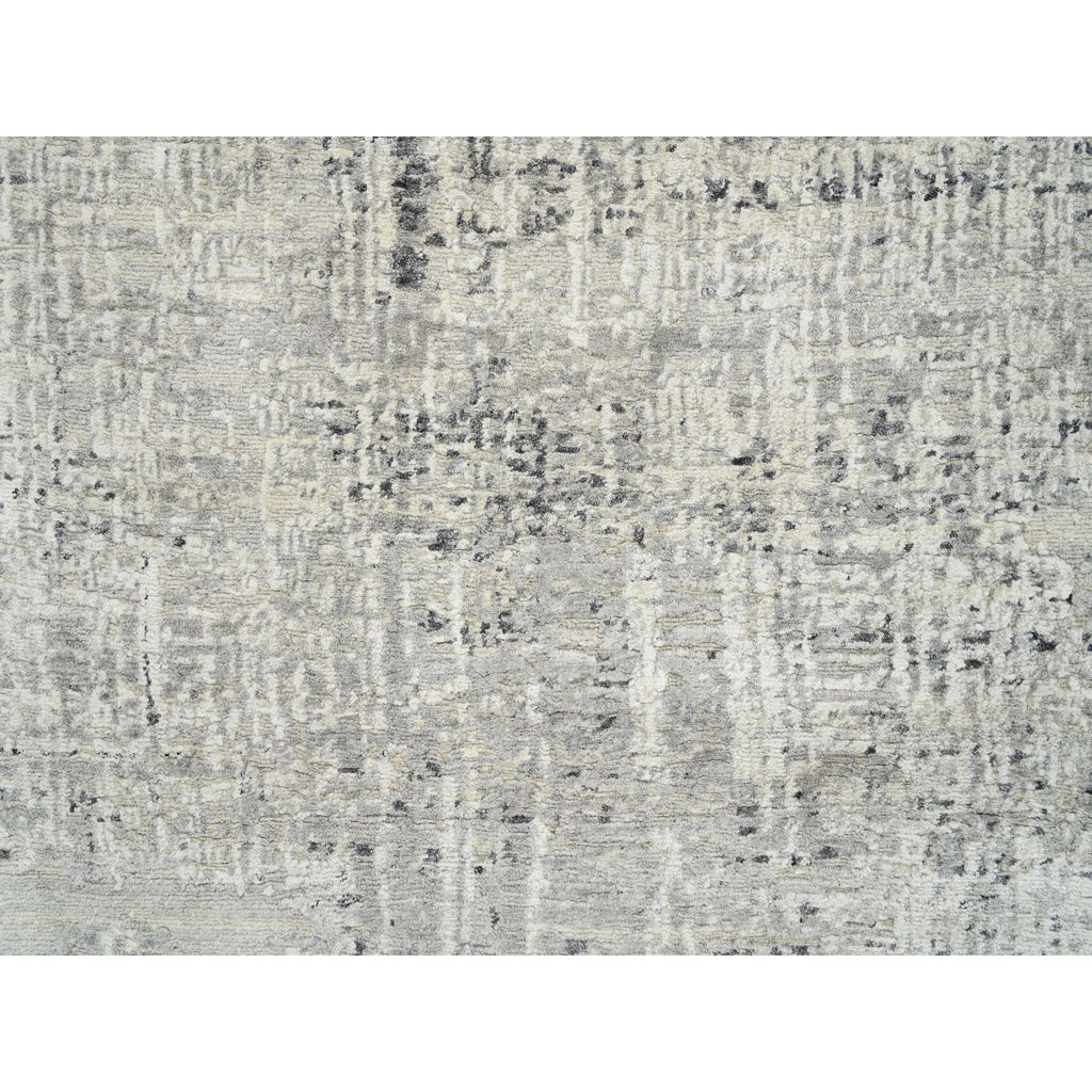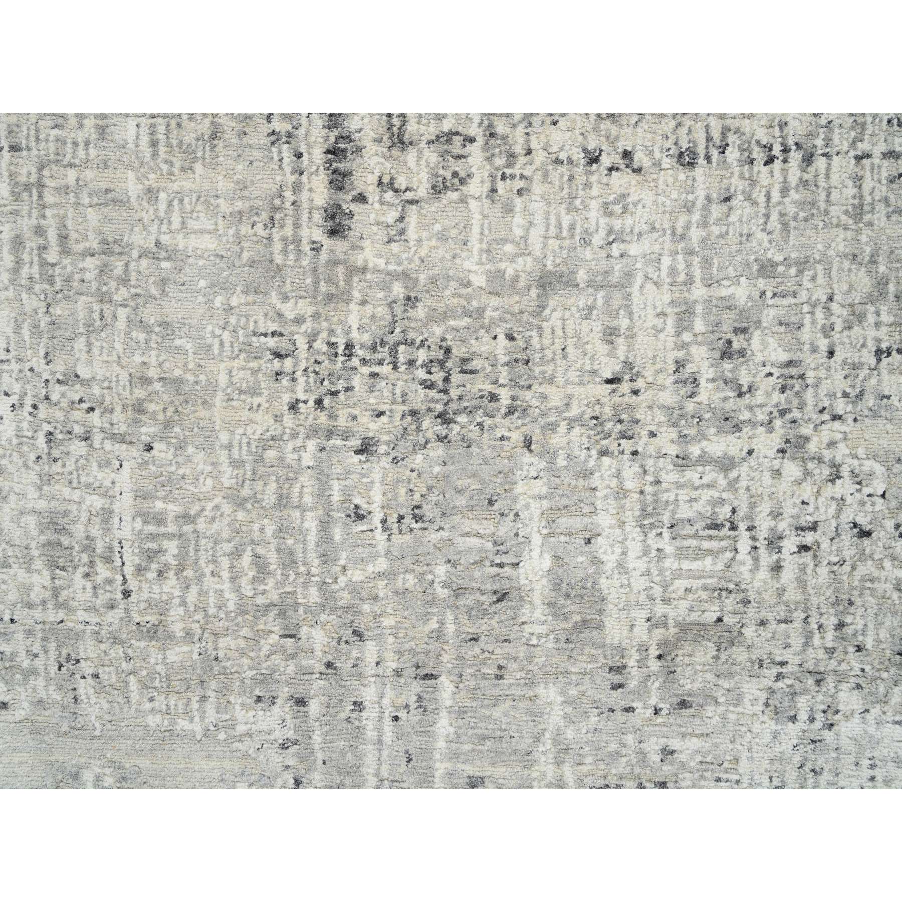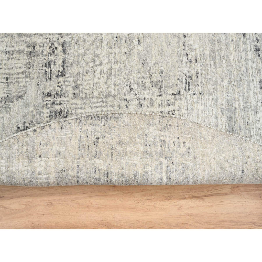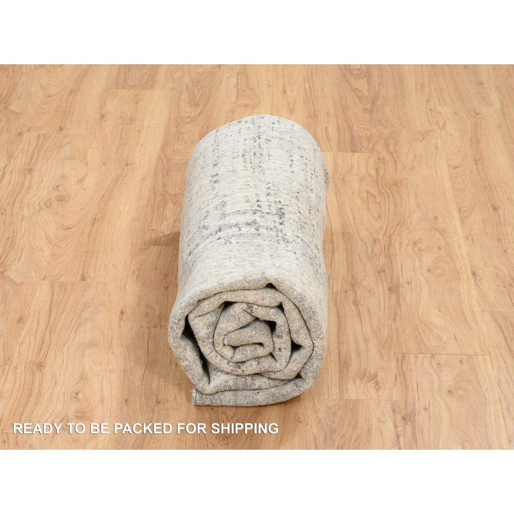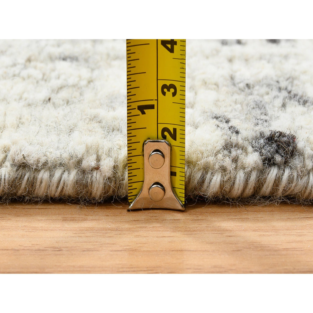 7'10"x7'10" Light Gray, Hand Spun Undyed Natural Wool, Hand Knotted, Modern Design, Round Oriental Rug FWR388200