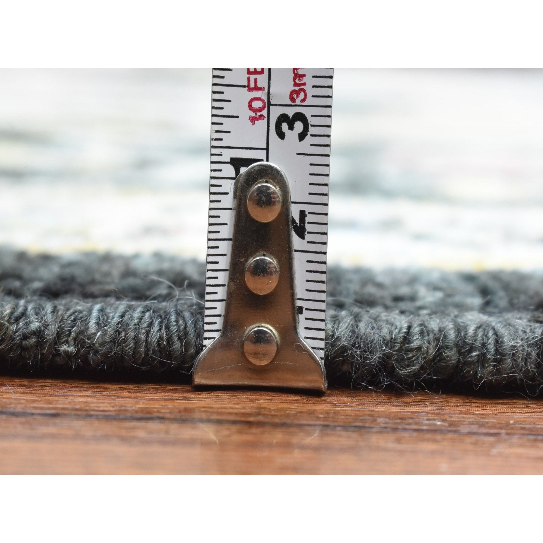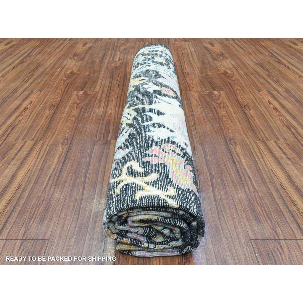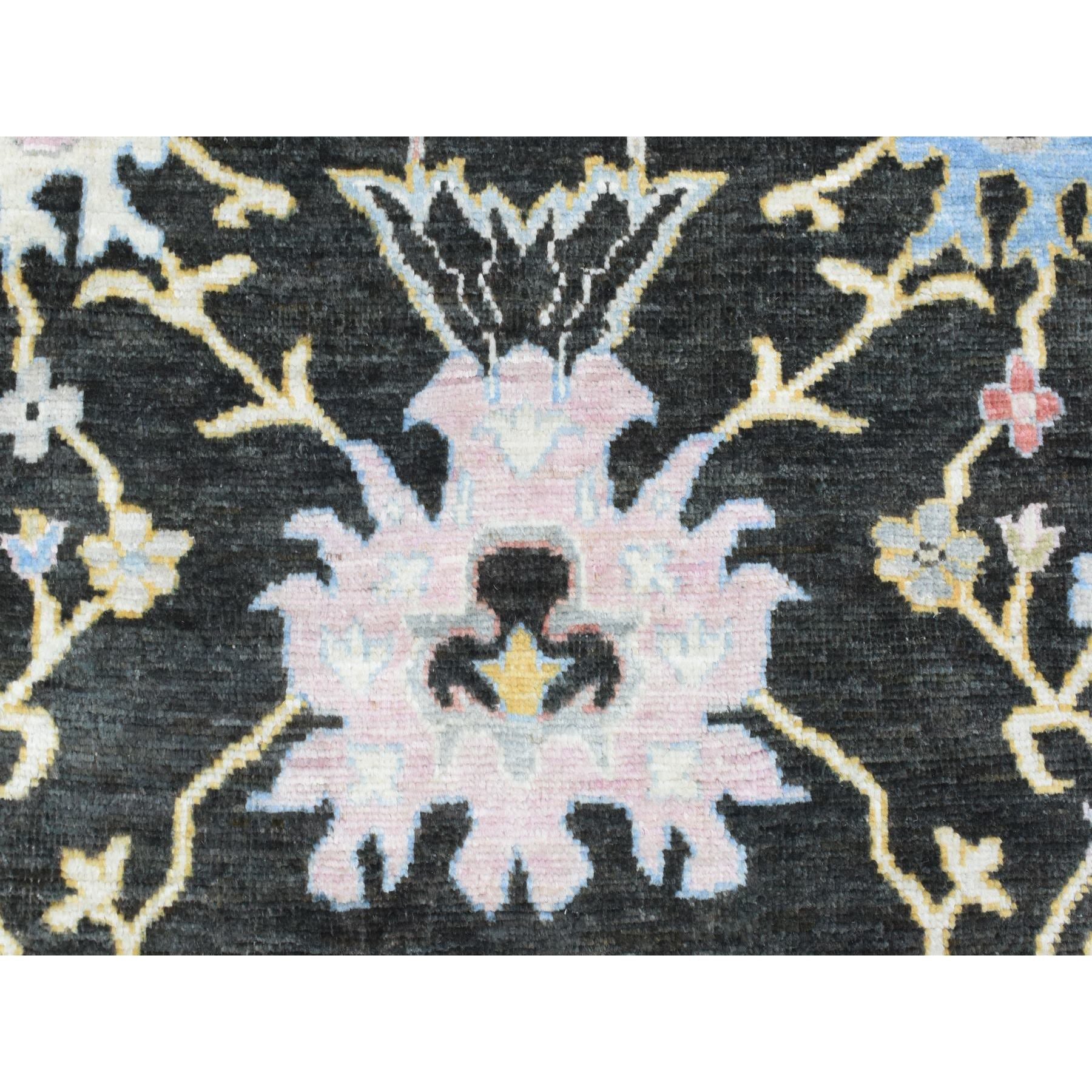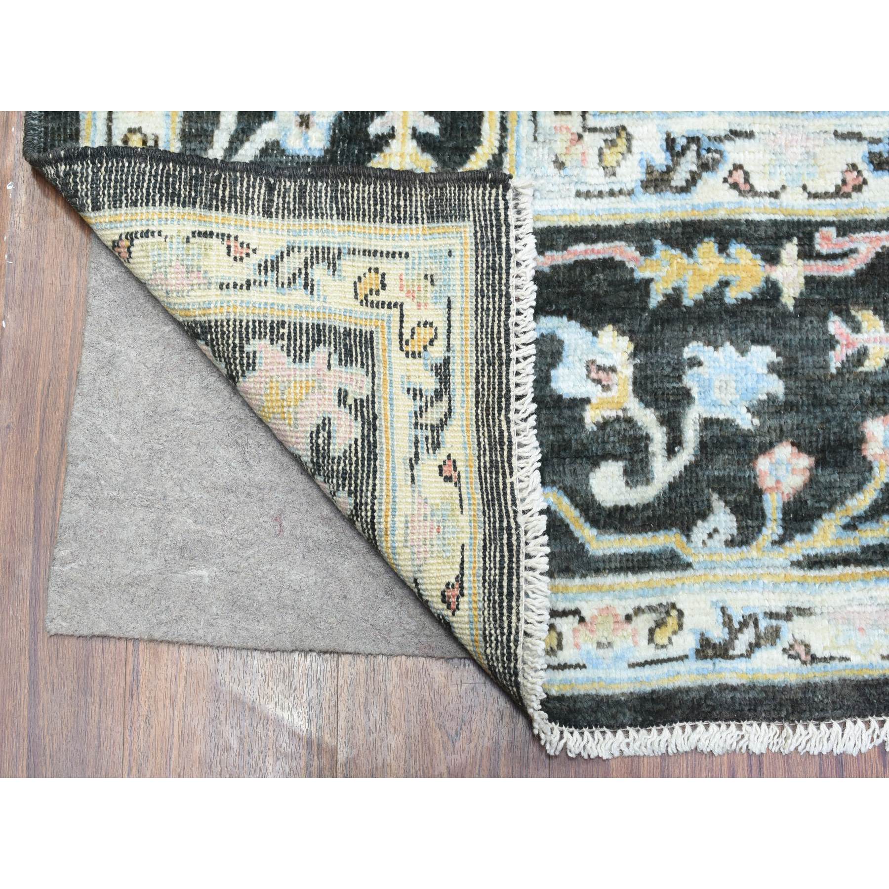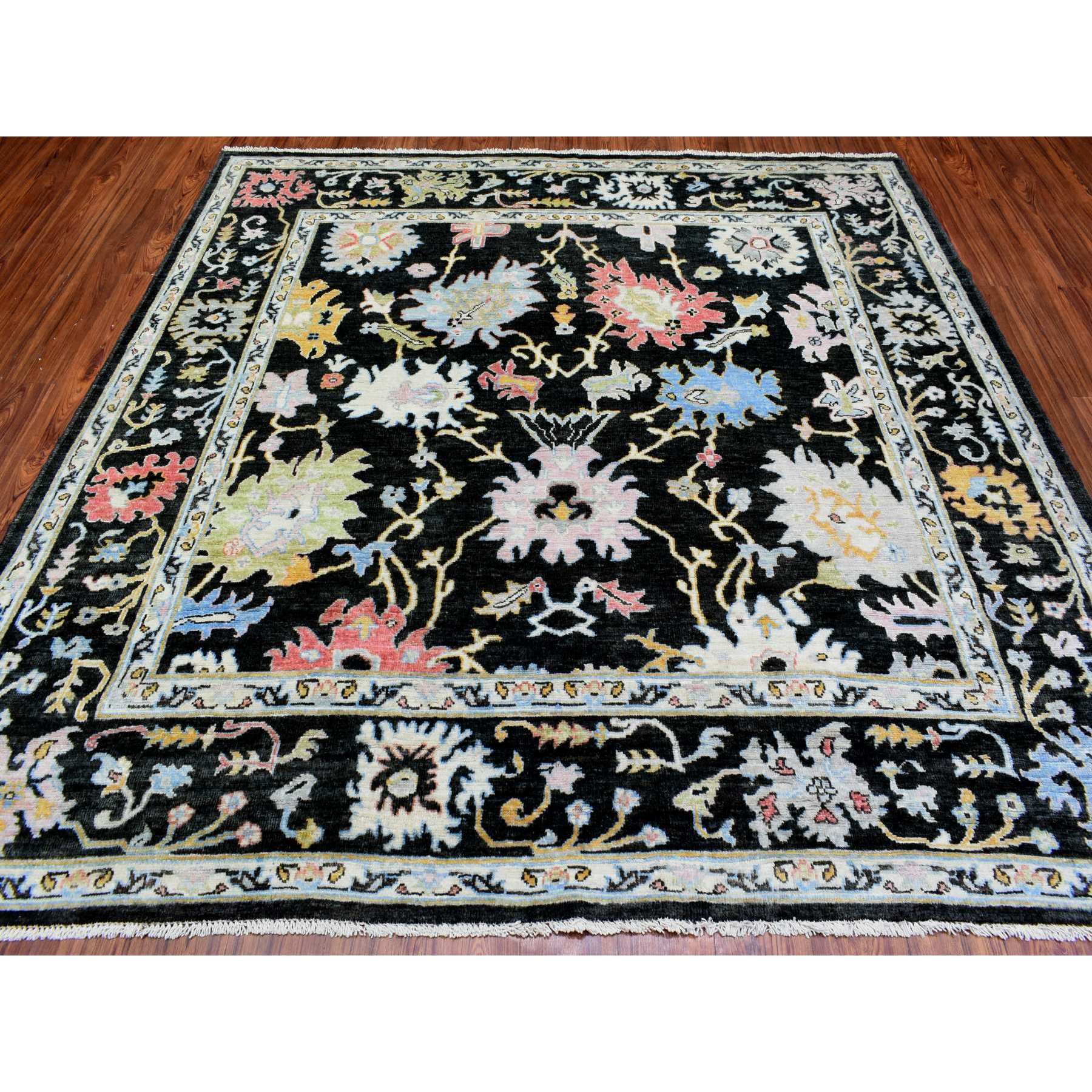 7'10"x7'10" Olive Black, Natural Dyes Soft Wool, Hand Knotted Afghan Angora Oushak With Pop Of Color, Square Oriental Rug FWR437712