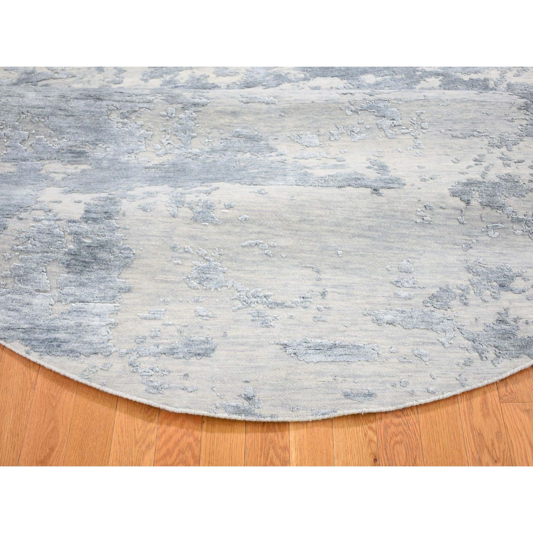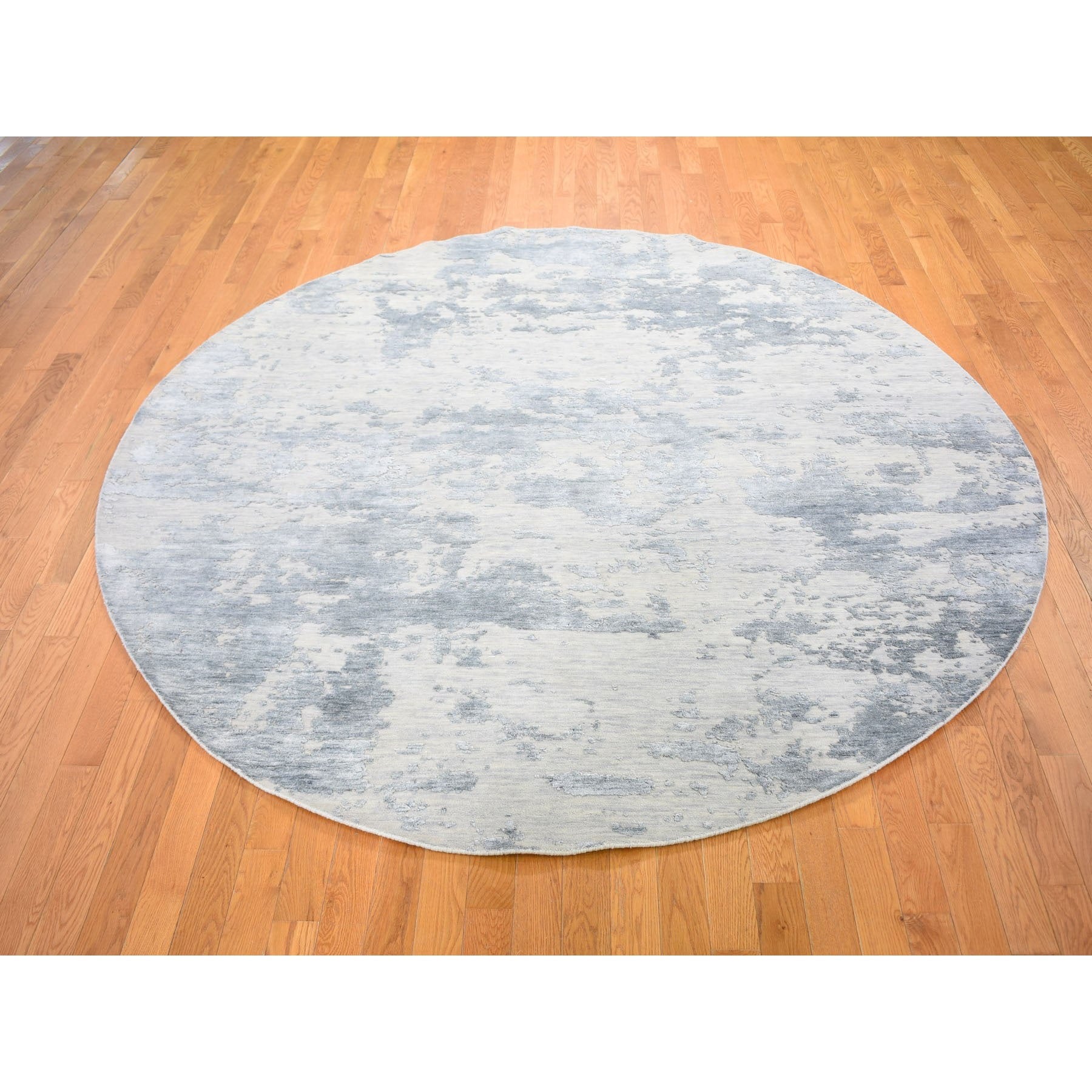 7'10"x7'10" Round Abstract Design Wool And Silk Hi-low Pile Denser Weave Hand Knotted Oriental Rug FWR354318