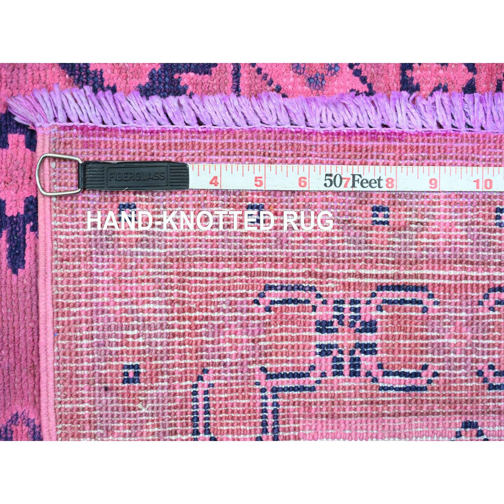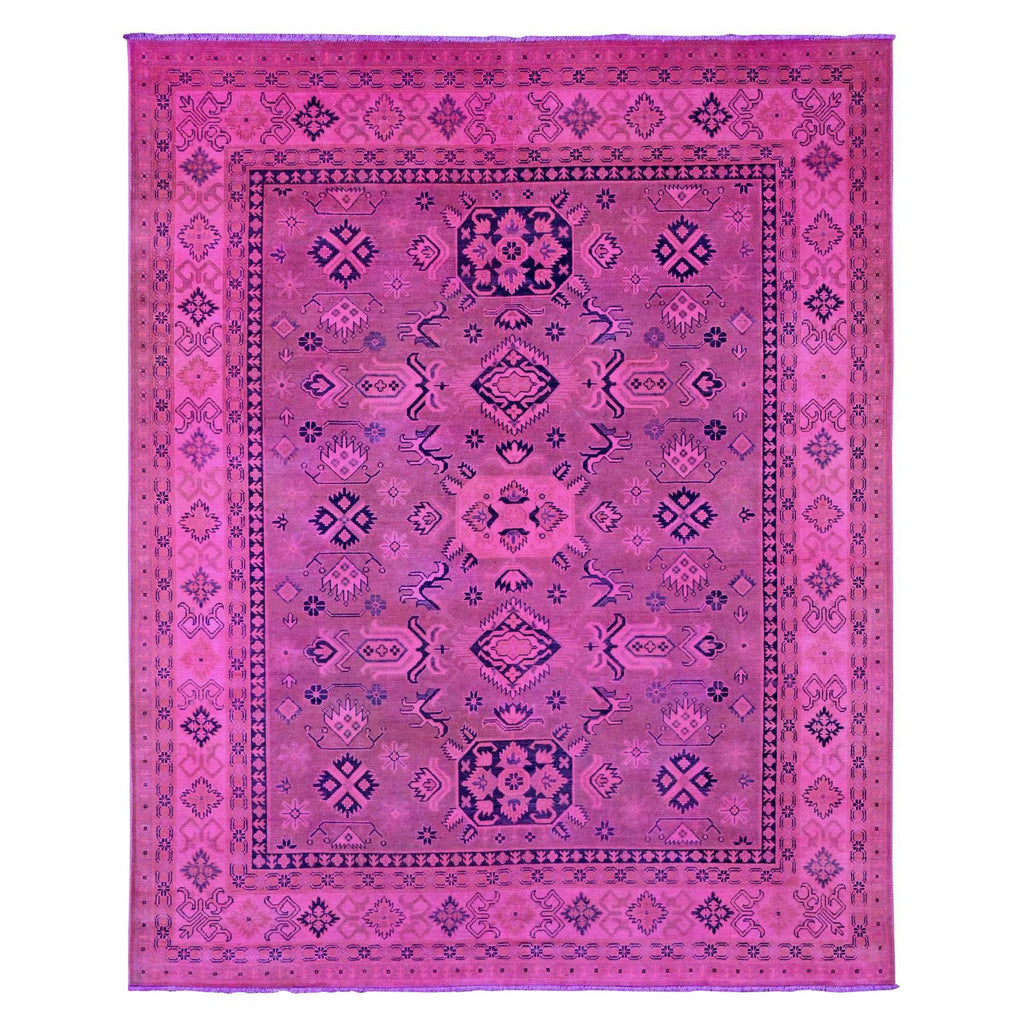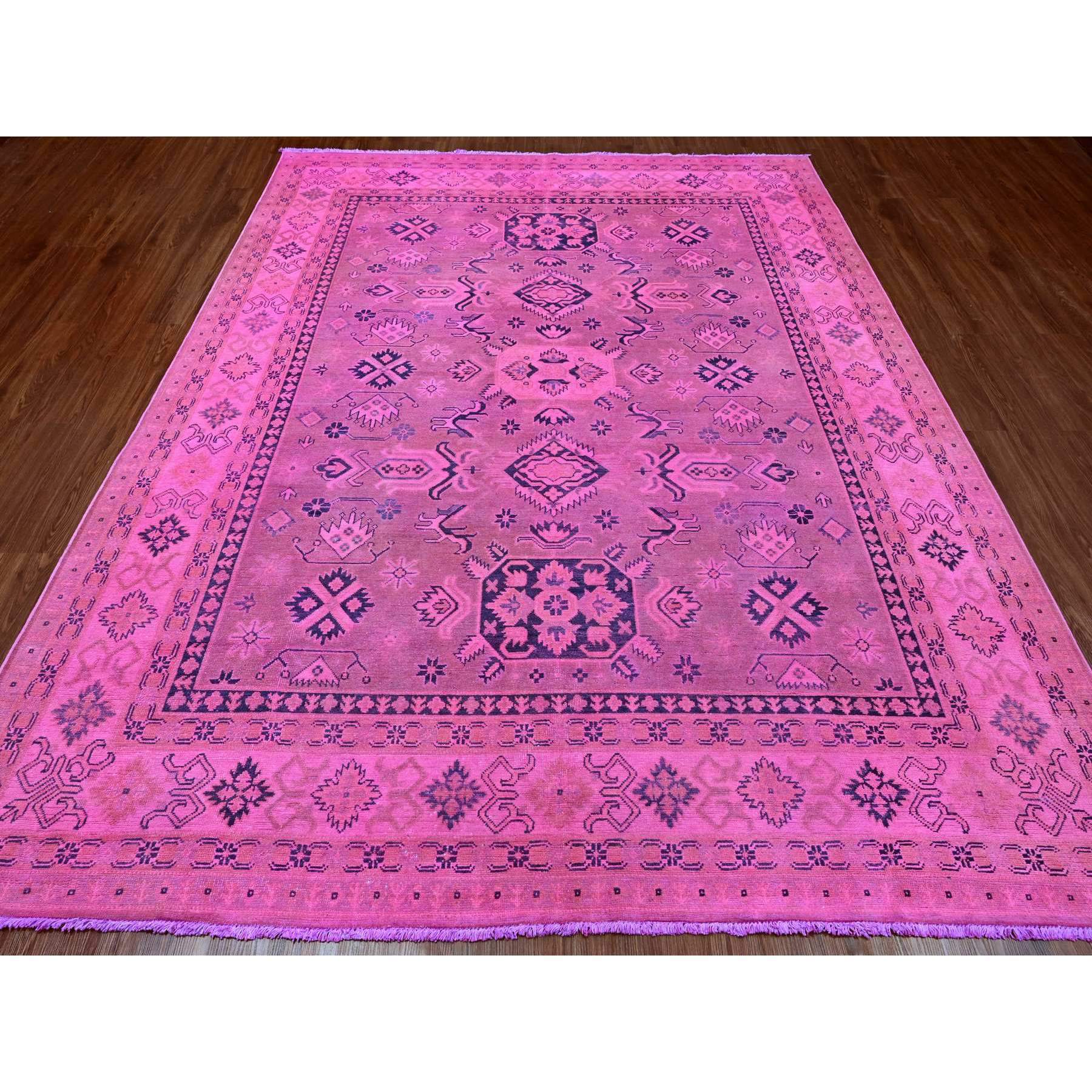 7'10"x9'7" Fuscia Pink, Overdyed Kazak With Tribal Medallions Design, Pure Wool, Hand Knotted, Oriental Rug FWR120066