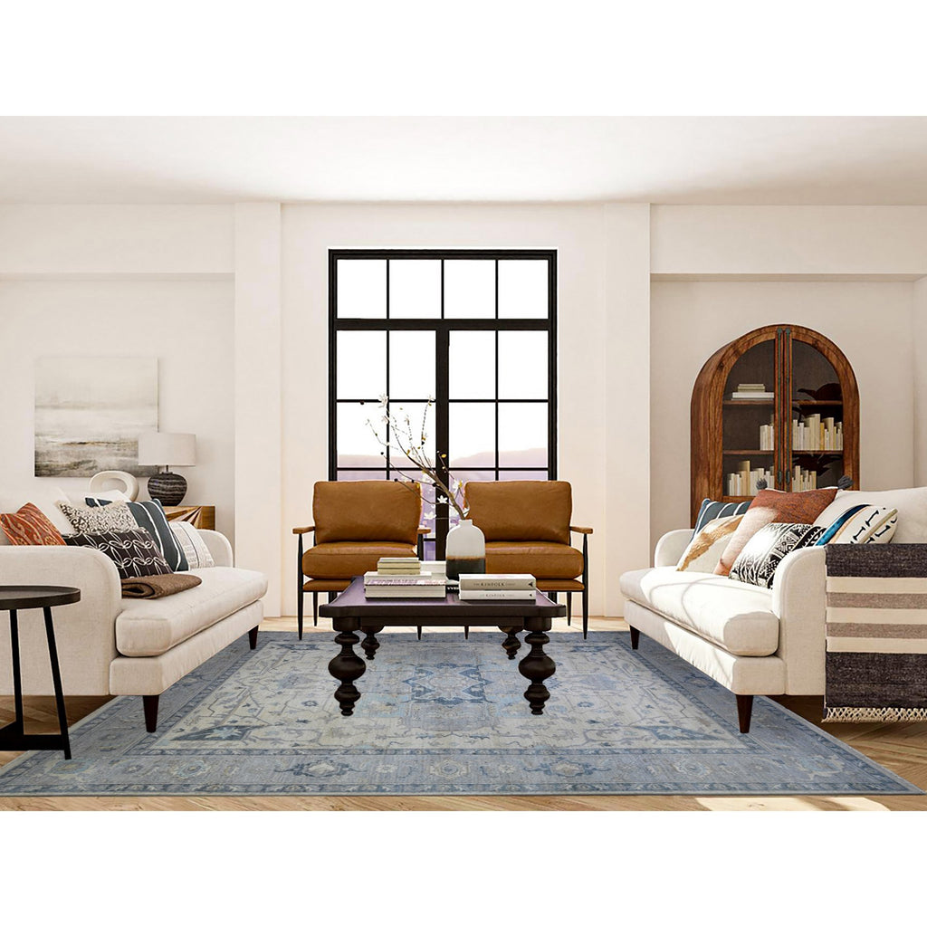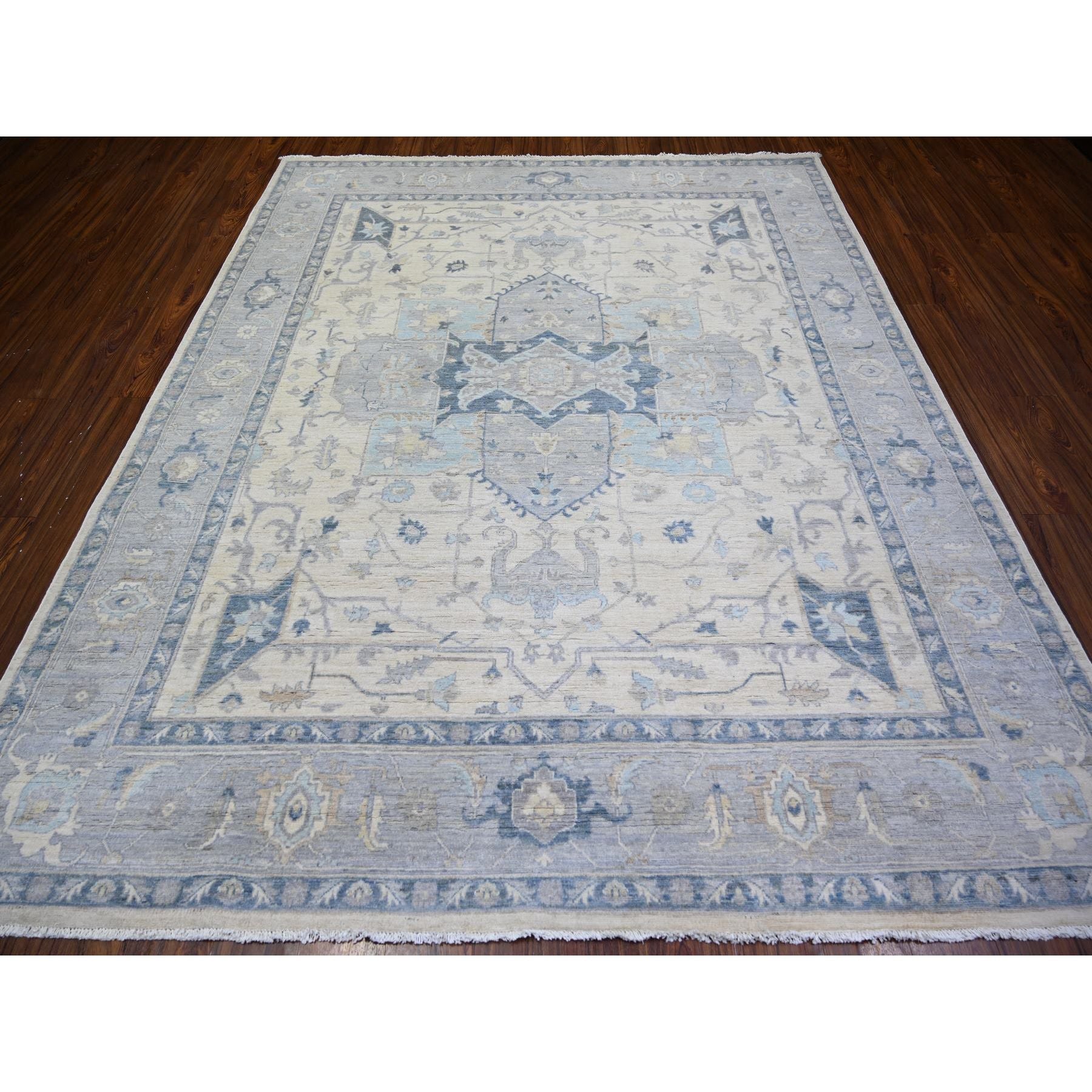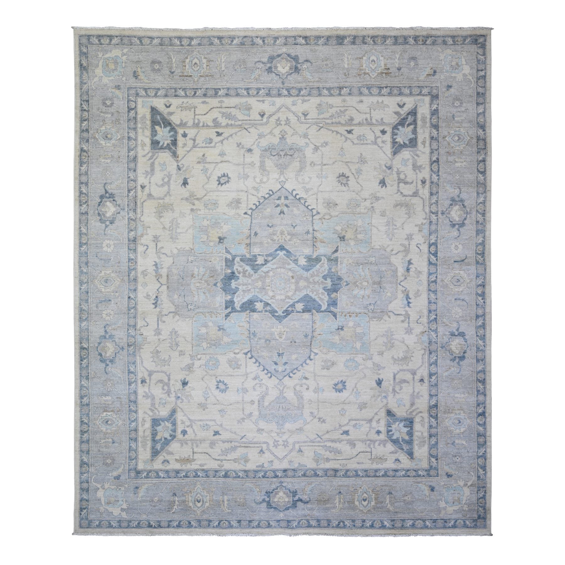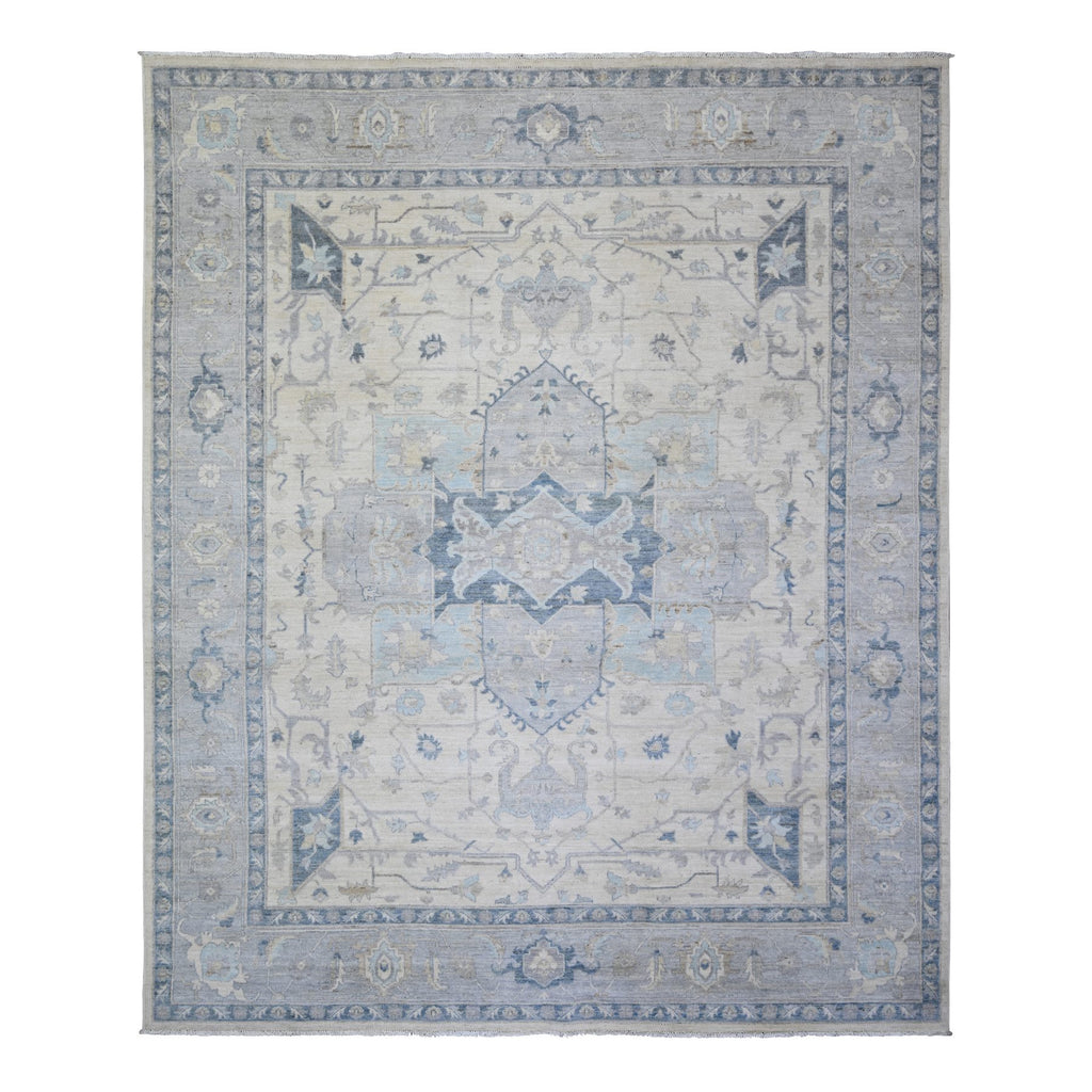 7'10"x9'7" Ivory, Stone Washed Peshawar With Serapi Heriz Design, Organic Wool Hand Knotted, Oriental Rug FWR439674