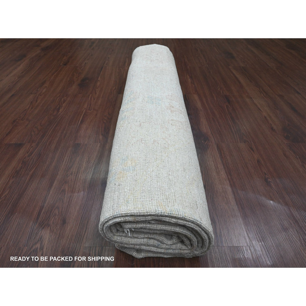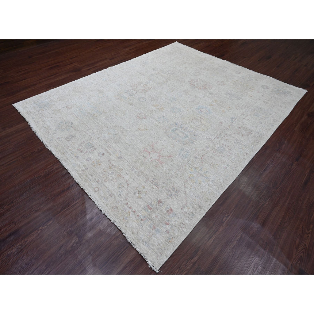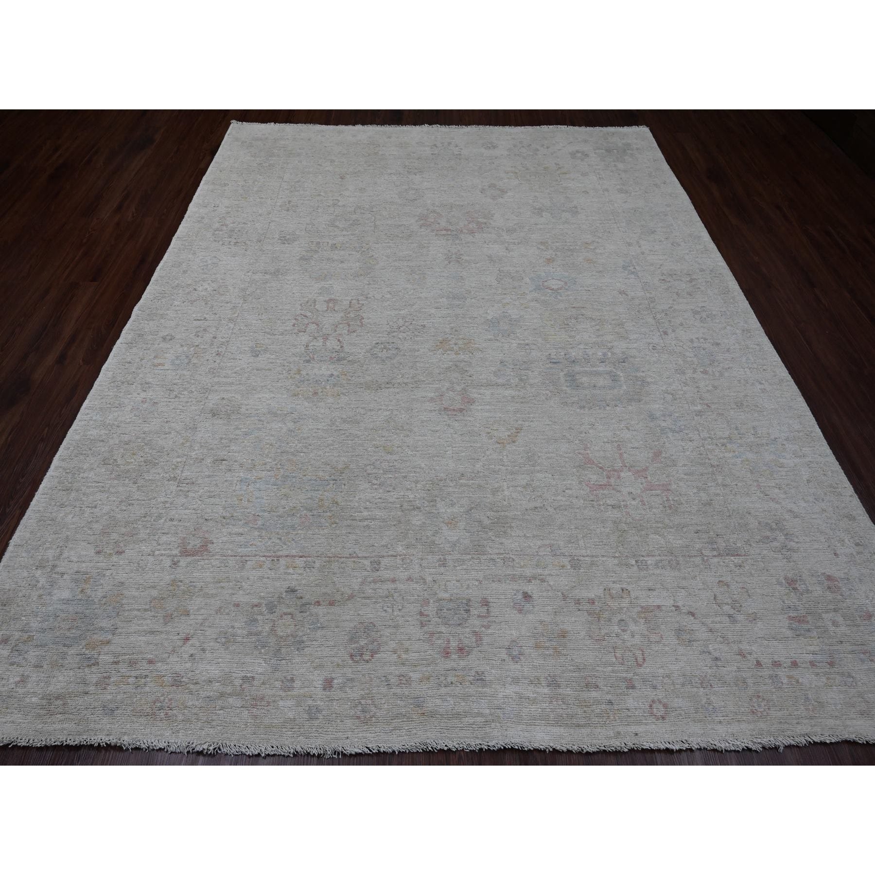 7'10"x9'8" Oyster Gray, Hand Knotted, Afghan Angora Oushak With All Over Leaf Design, Veggie Dyes, 100% Wool, Oriental Rug FWR121590