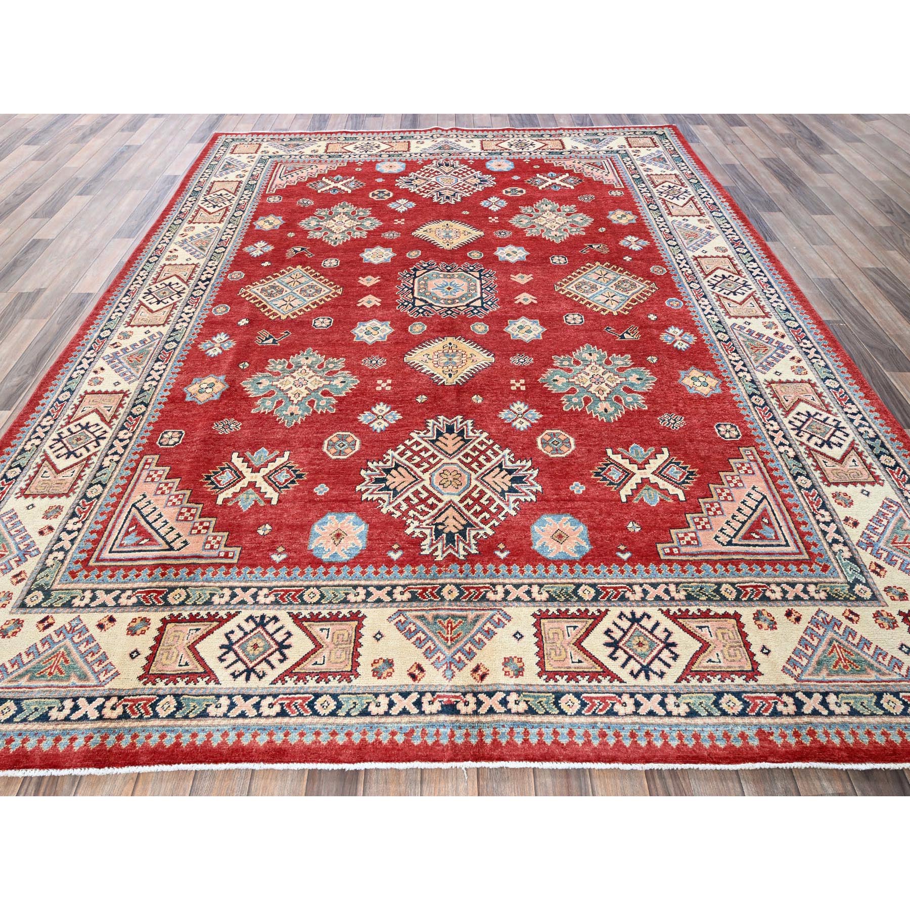 7'10"x9'9" Crimson Red, Afghan Special Kazak With Geometric Pattern, 100% Wool, Hand Knotted, Densely Woven, Natural Dyes, Oriental Rug FWR1860