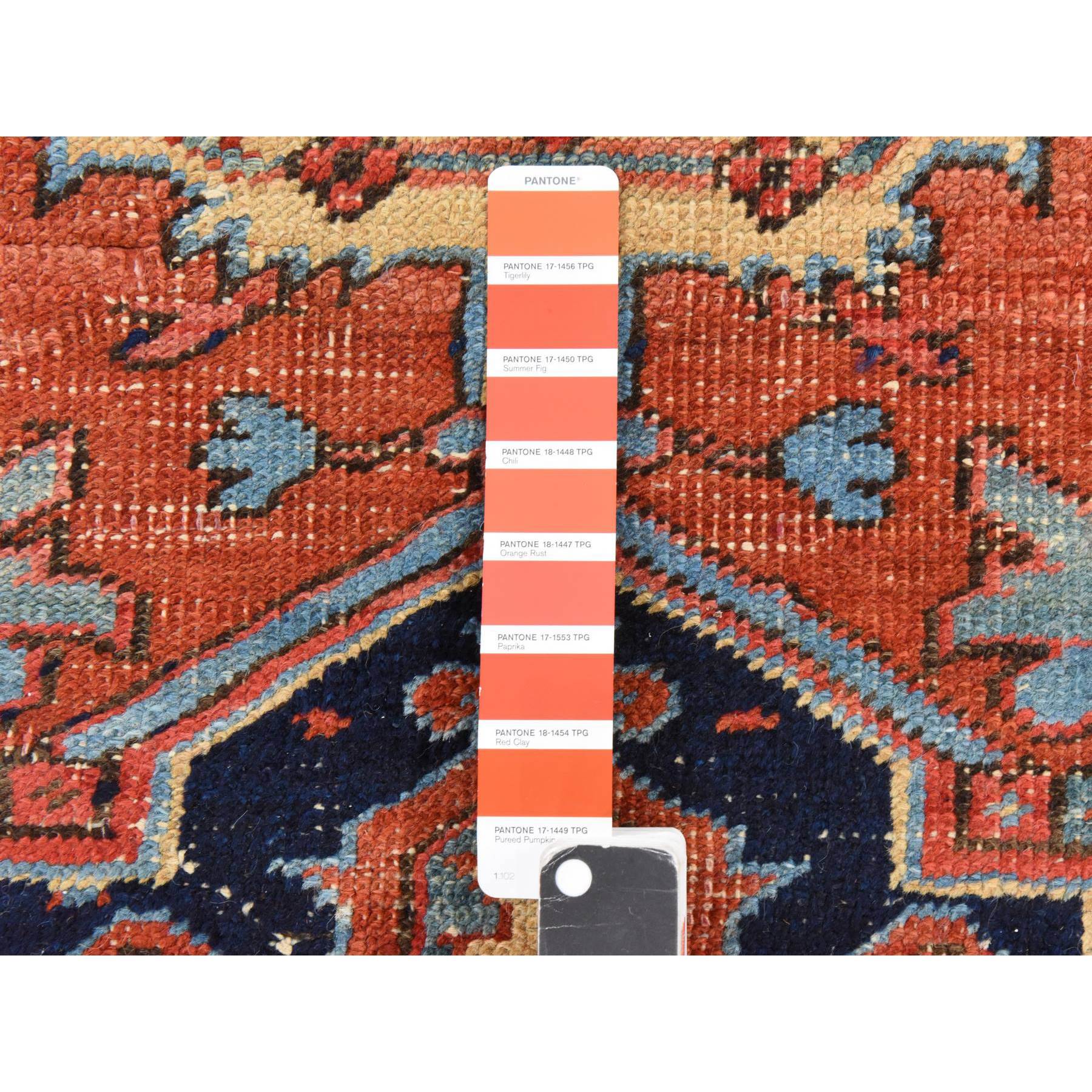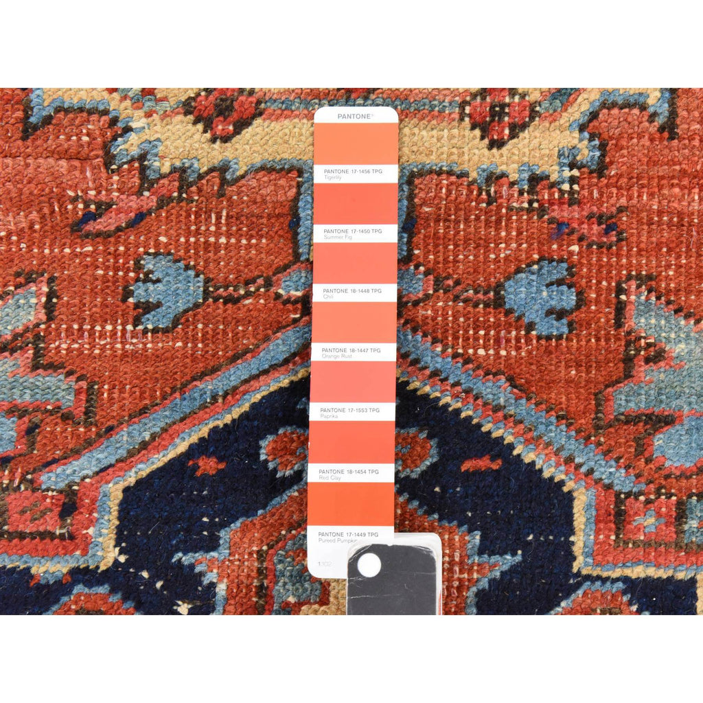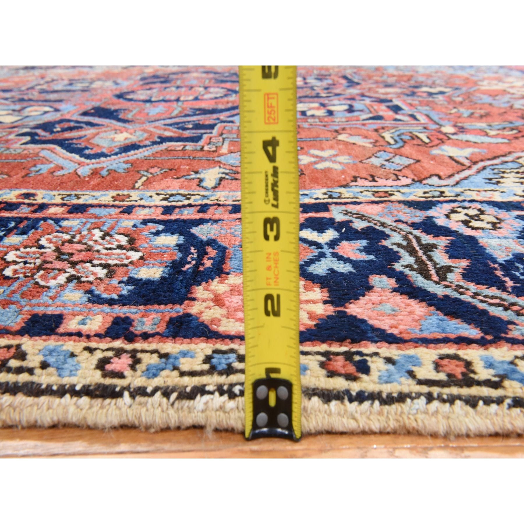7'2"x10' Clay Red, Antique Persian Heriz With Light Blue Corners, Even Wear, Good Condition And Clean, 100% Wool, Hand Knotted, Oriental Rug FWR470538