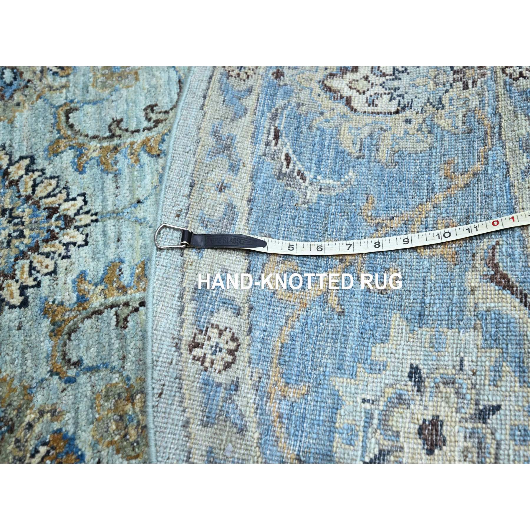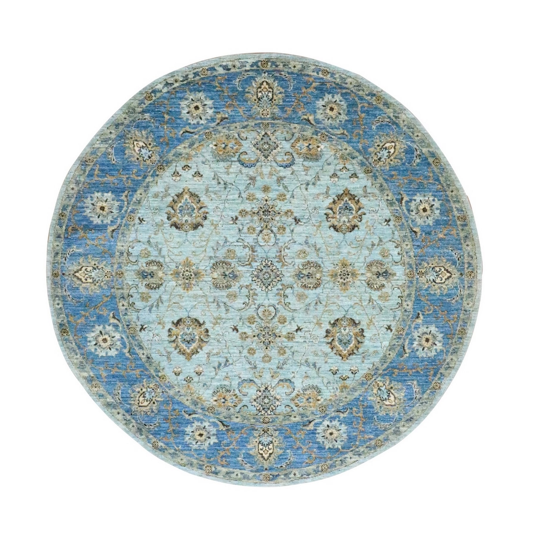 7'2"x7'2" Powder Blue, Denser Weave, Agra, All Over Shah Abbas Flower Design, Vegetable Dyes, Pure Wool, Hand Knotted, Round, Oriental Rug FWR456858