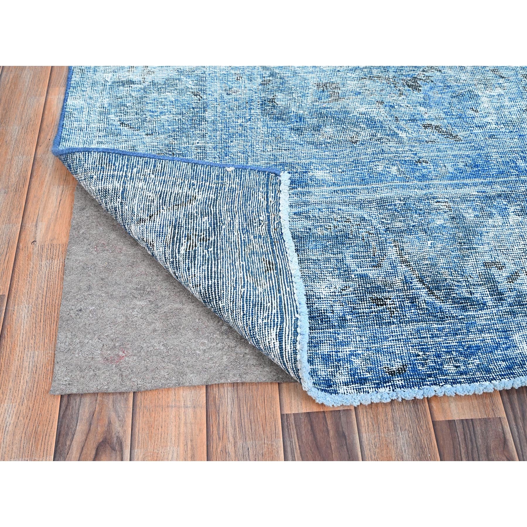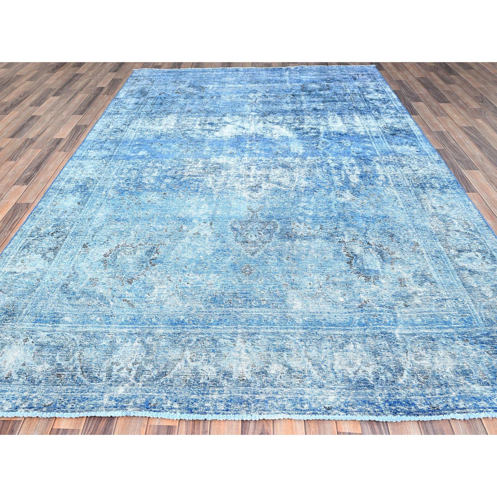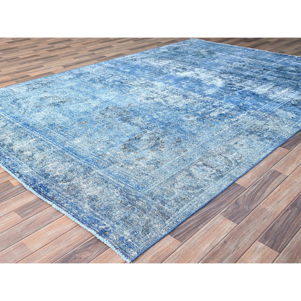 7'5"x11' Hawaiian Surf Blue, Excellent Condition, Cropped Thin And Sheared Low, Hand Knotted Sides And Ends Secured, Professionally Cleaned, Evenly Worn Vibrant Wool, Overdyed Old Persian Tabriz, Oriental Rug FWR516612