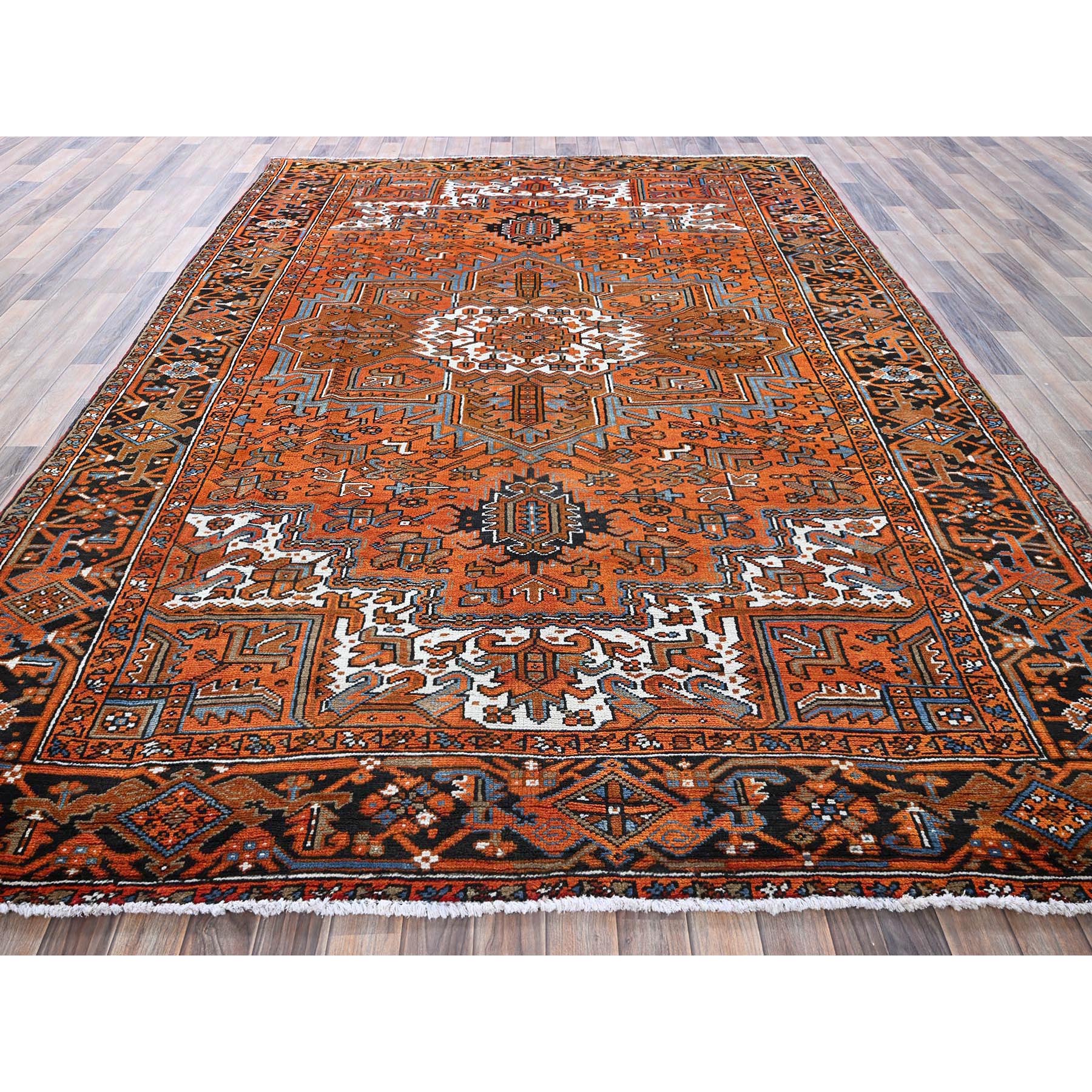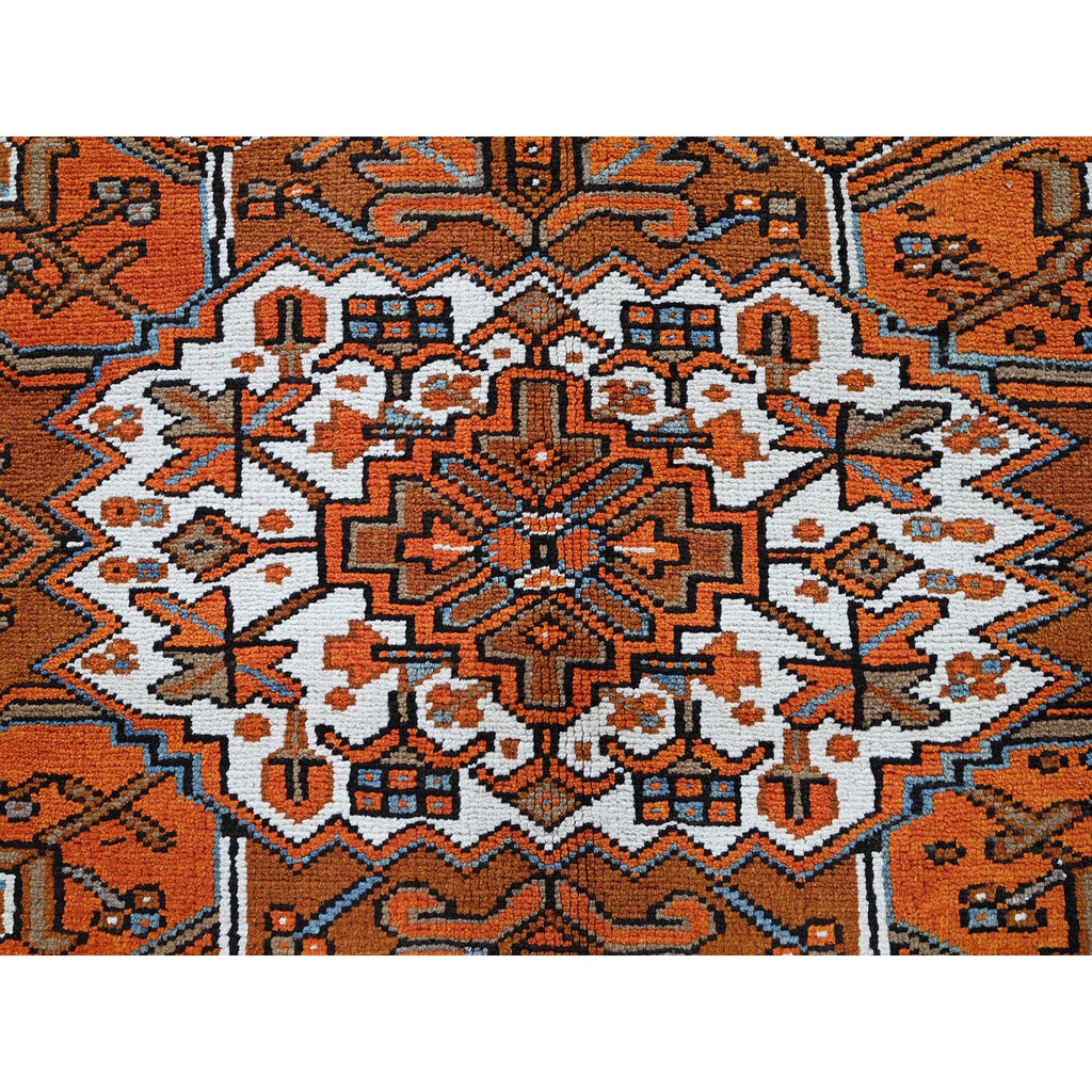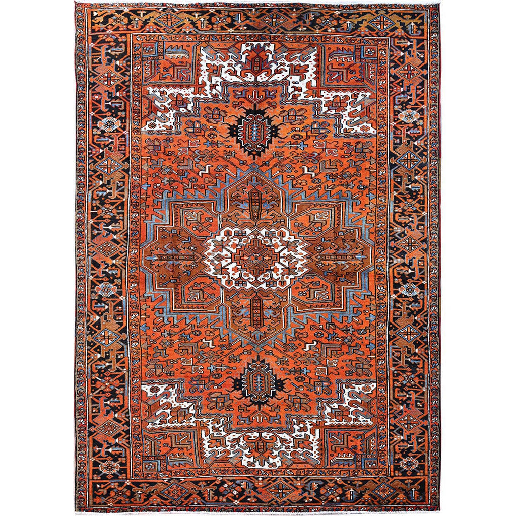 7'7"x10'7" Squash Orange, Vintage Persian Heriz With Large Medallion Design, 100% Wool, Hand Knotted, Even Wear, Cropped Thin, Good Condition, Sides And Ends Professionally Secured, Oriental Rug FWR1758