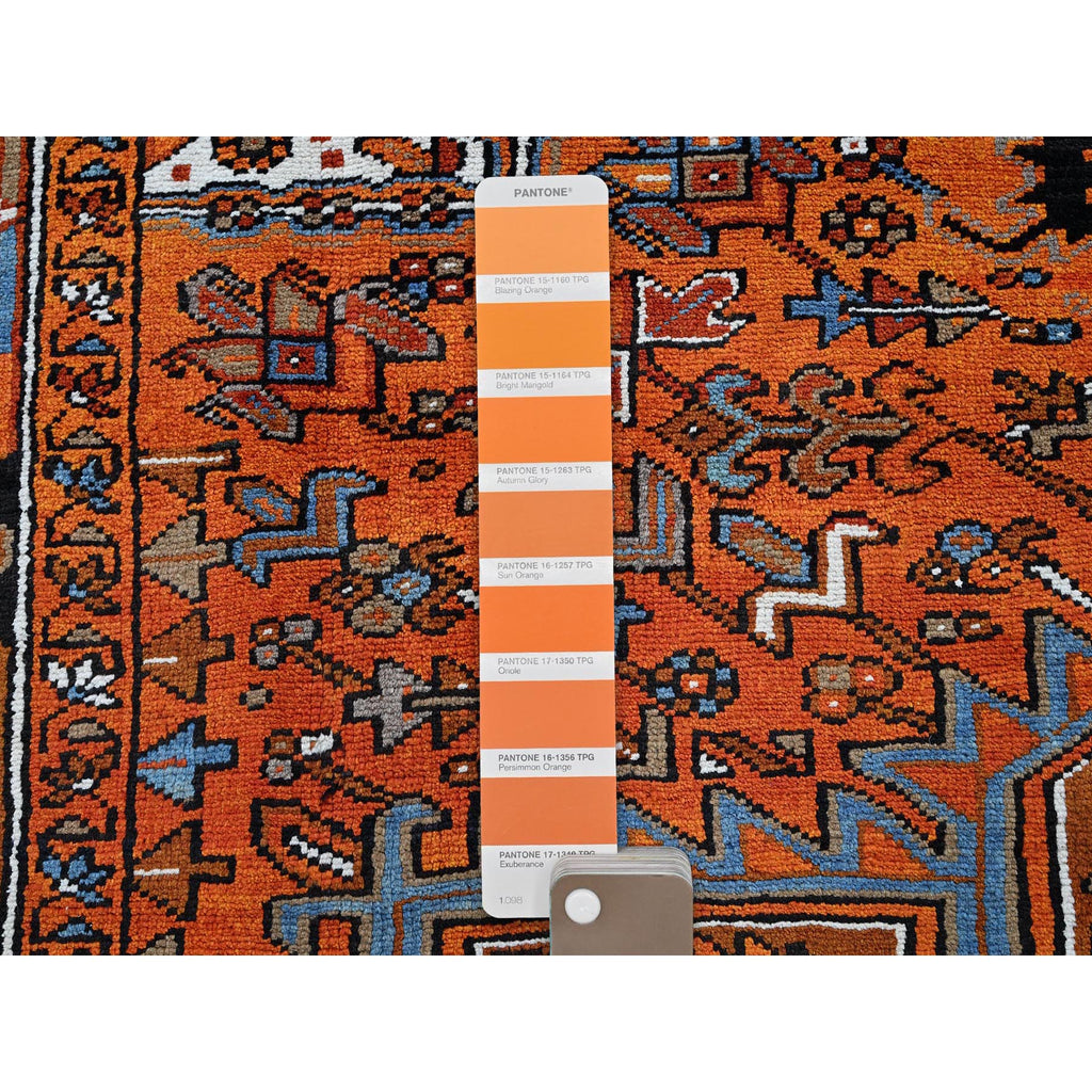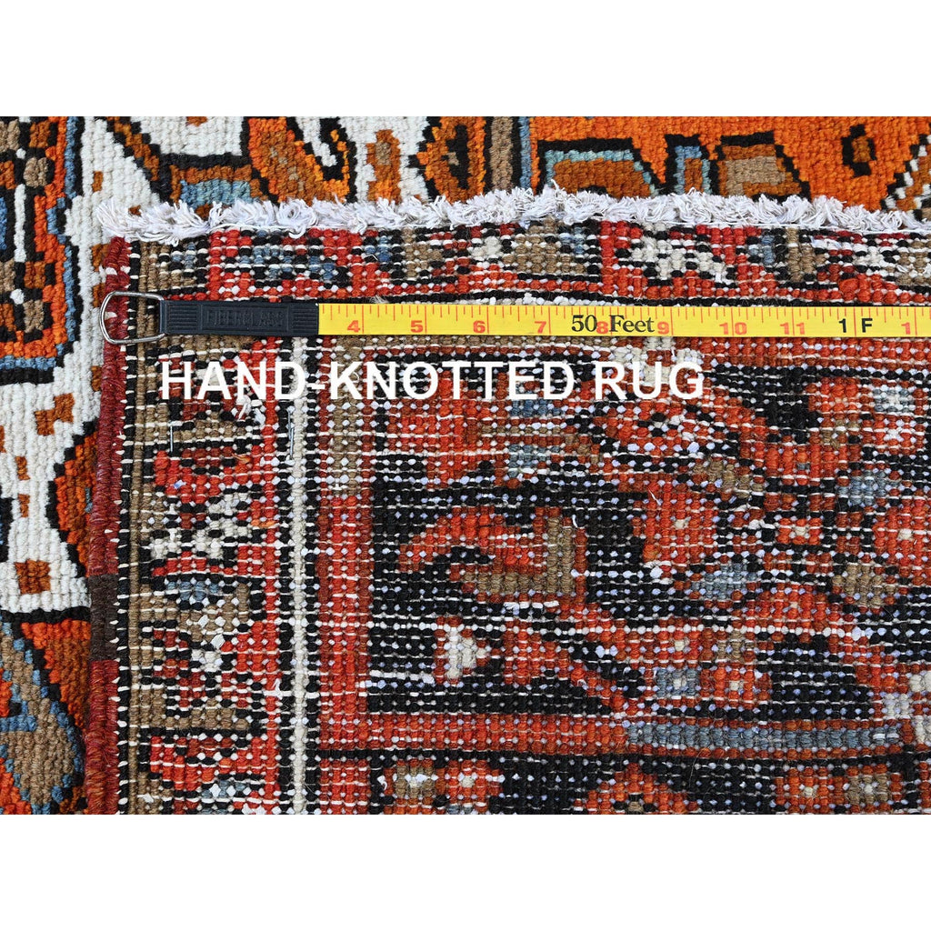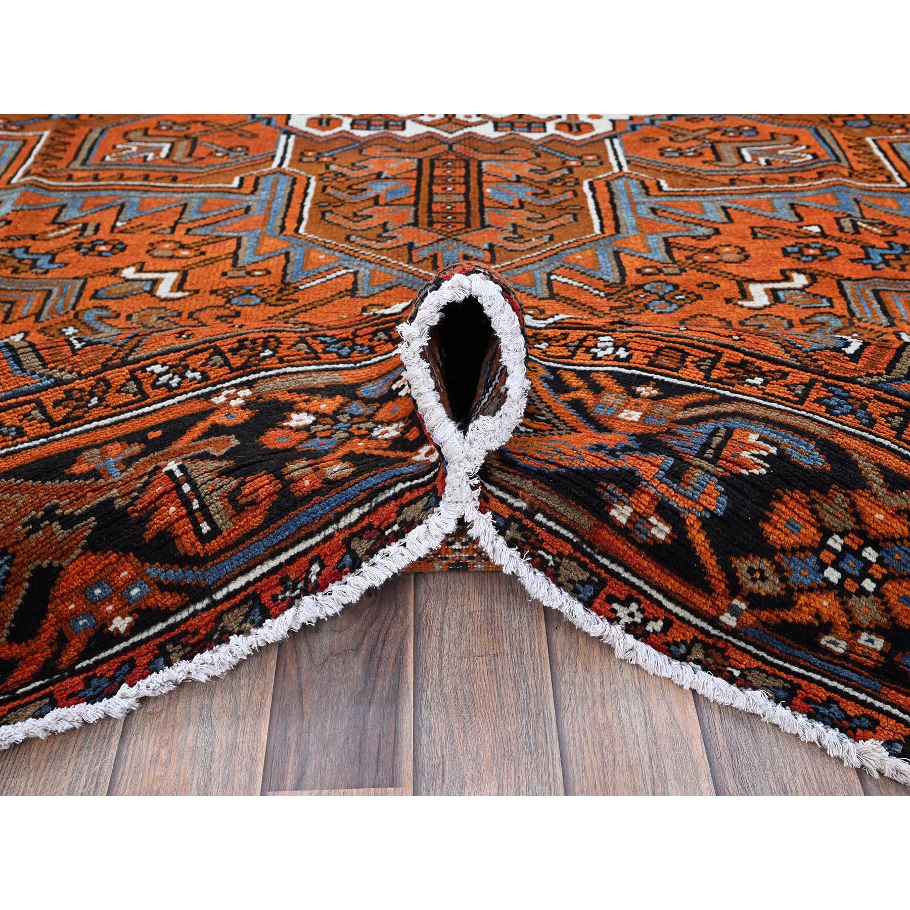 7'7"x10'7" Squash Orange, Vintage Persian Heriz With Large Medallion Design, 100% Wool, Hand Knotted, Even Wear, Cropped Thin, Good Condition, Sides And Ends Professionally Secured, Oriental Rug FWR1758