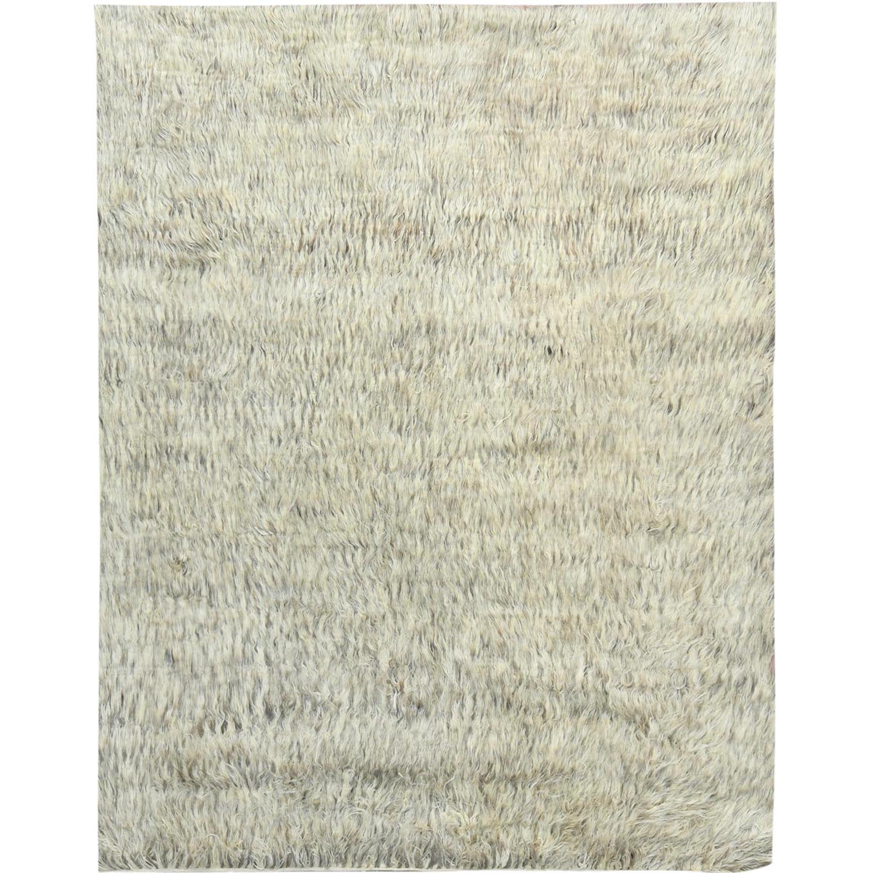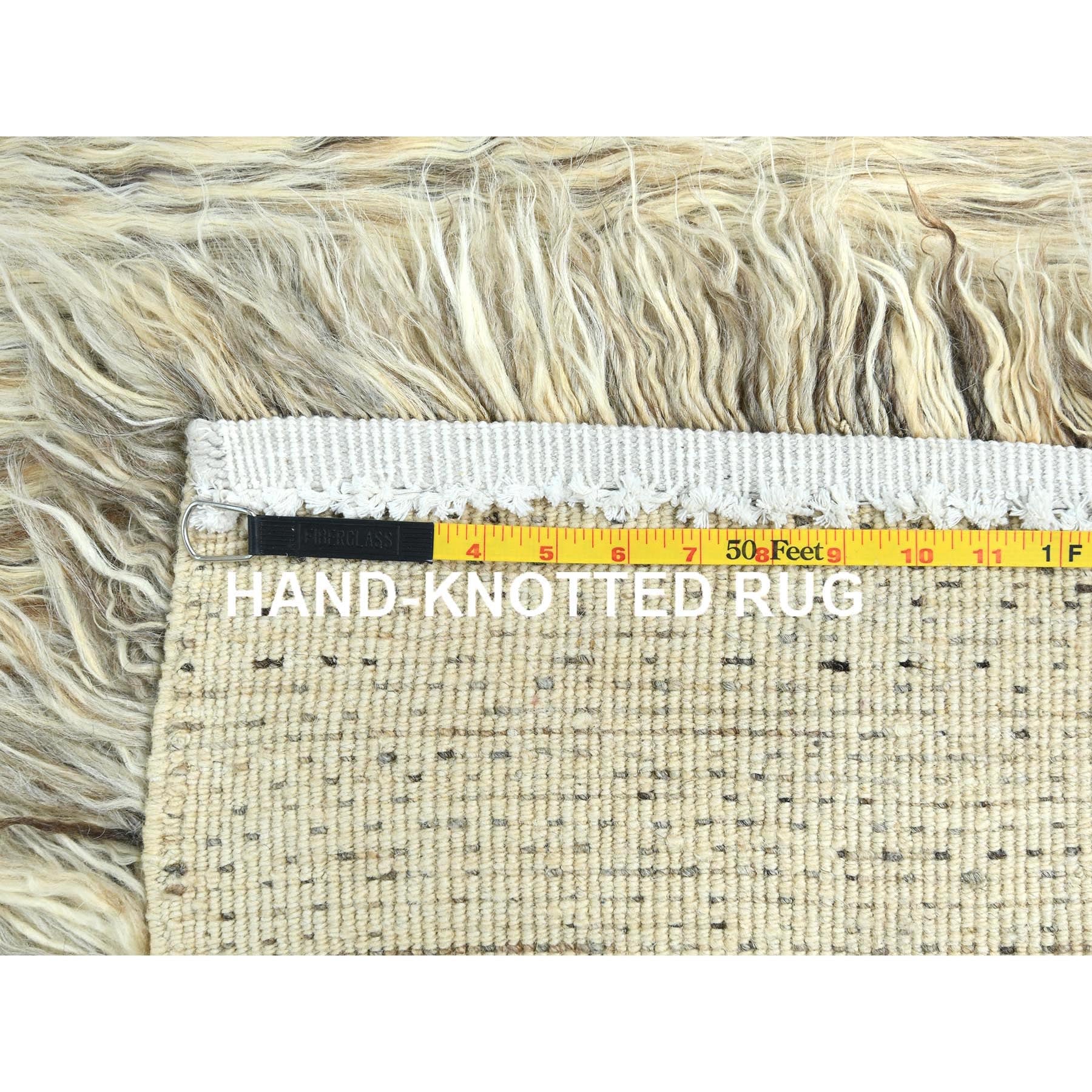 7'7"x9'10" Gray, Undyed Natural Wool Hand Knotted, Shag Flokati Greek Style, Oriental Rug FWR495966