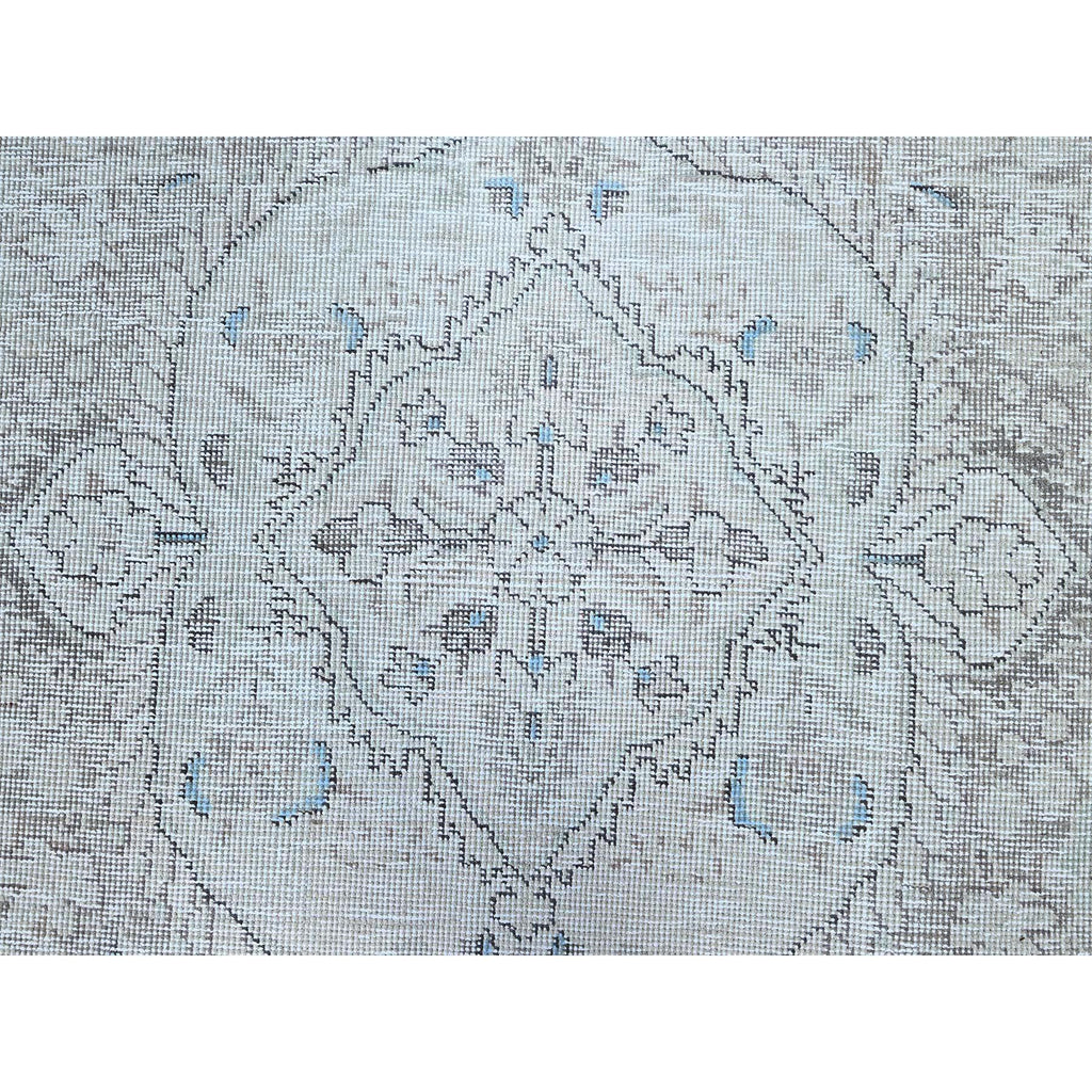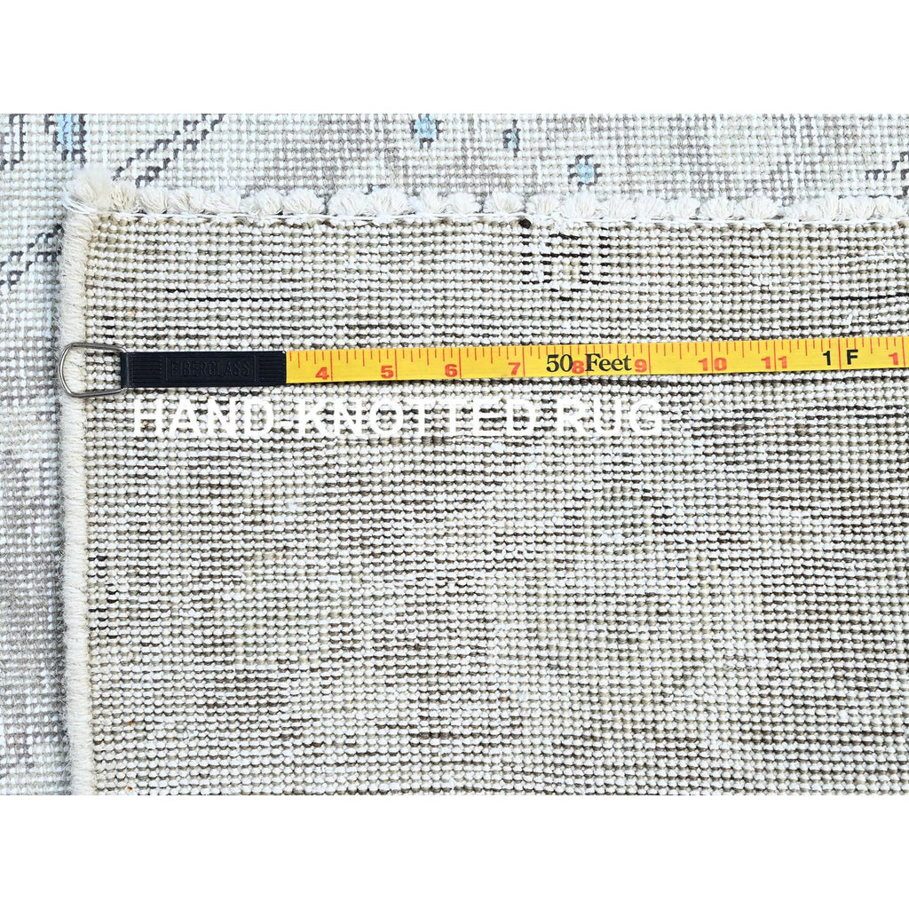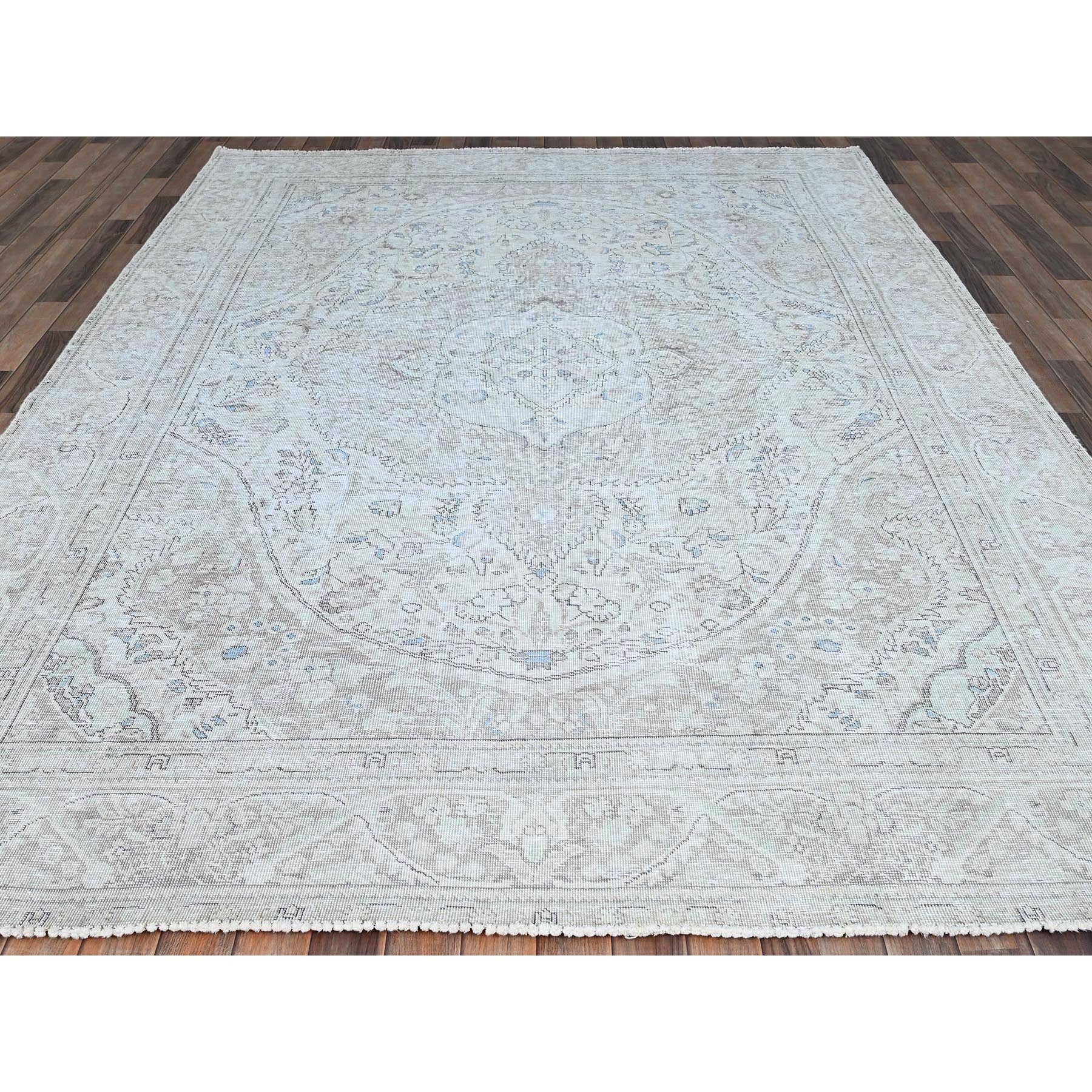 7'8"x10'4" Silos White, Evenly Worn Natural Wool, Semi Antique Persian White Wash Tabriz With Touches Of Blue, Sides And Ends Professionally Secured And Cleaned, Sheared Low, Oriental Excellent Condition Rug FWR516630