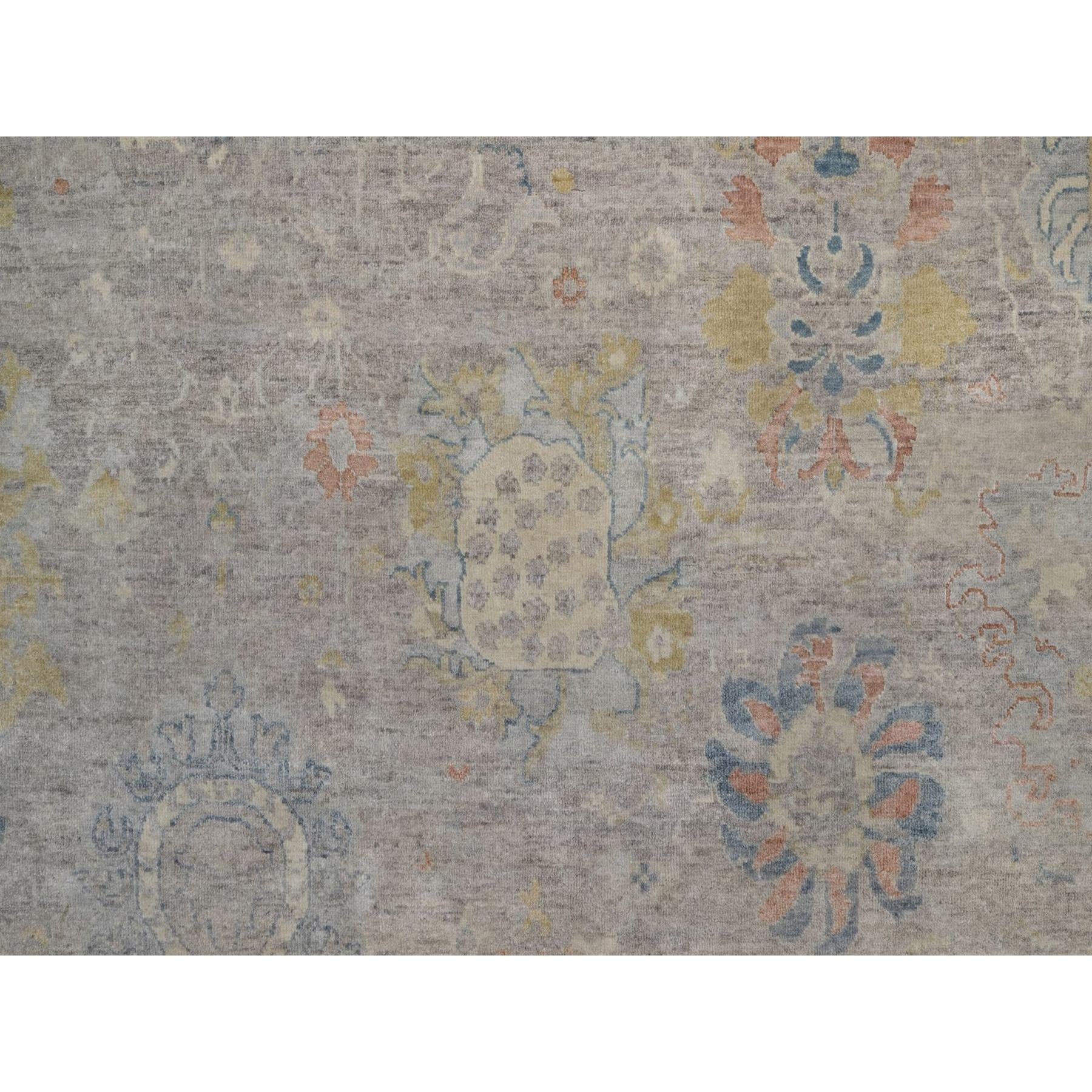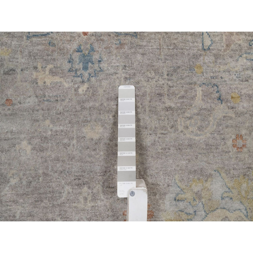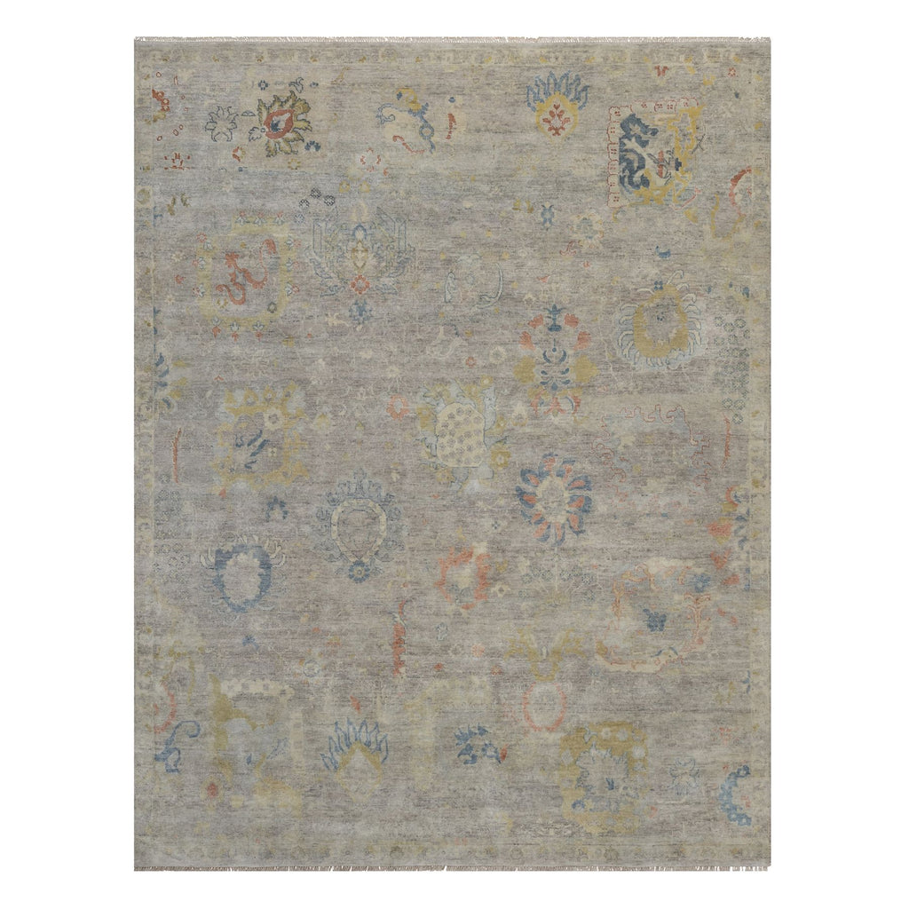 7'8"x10' Beige, Hand Knotted, Oushak Without A Border, All Over Leaf Pattern, 100% Wool, Oriental Rug FWR551094