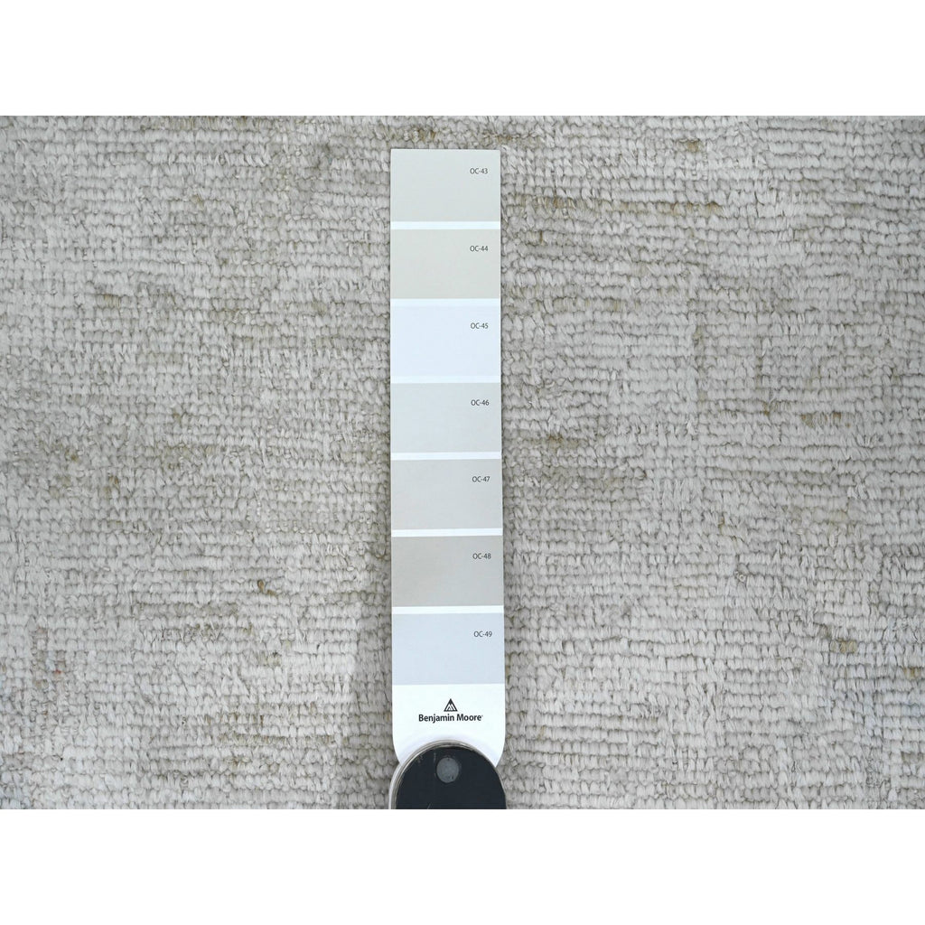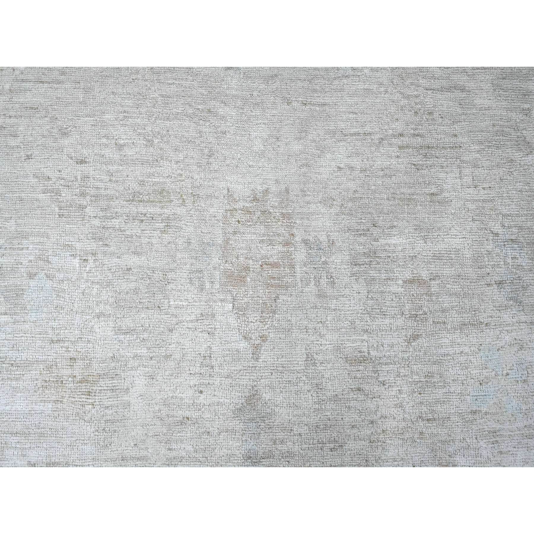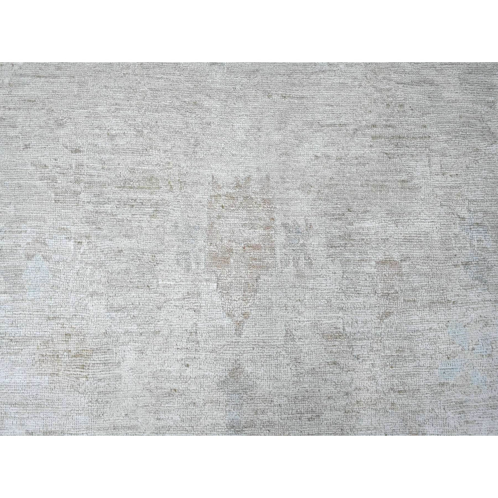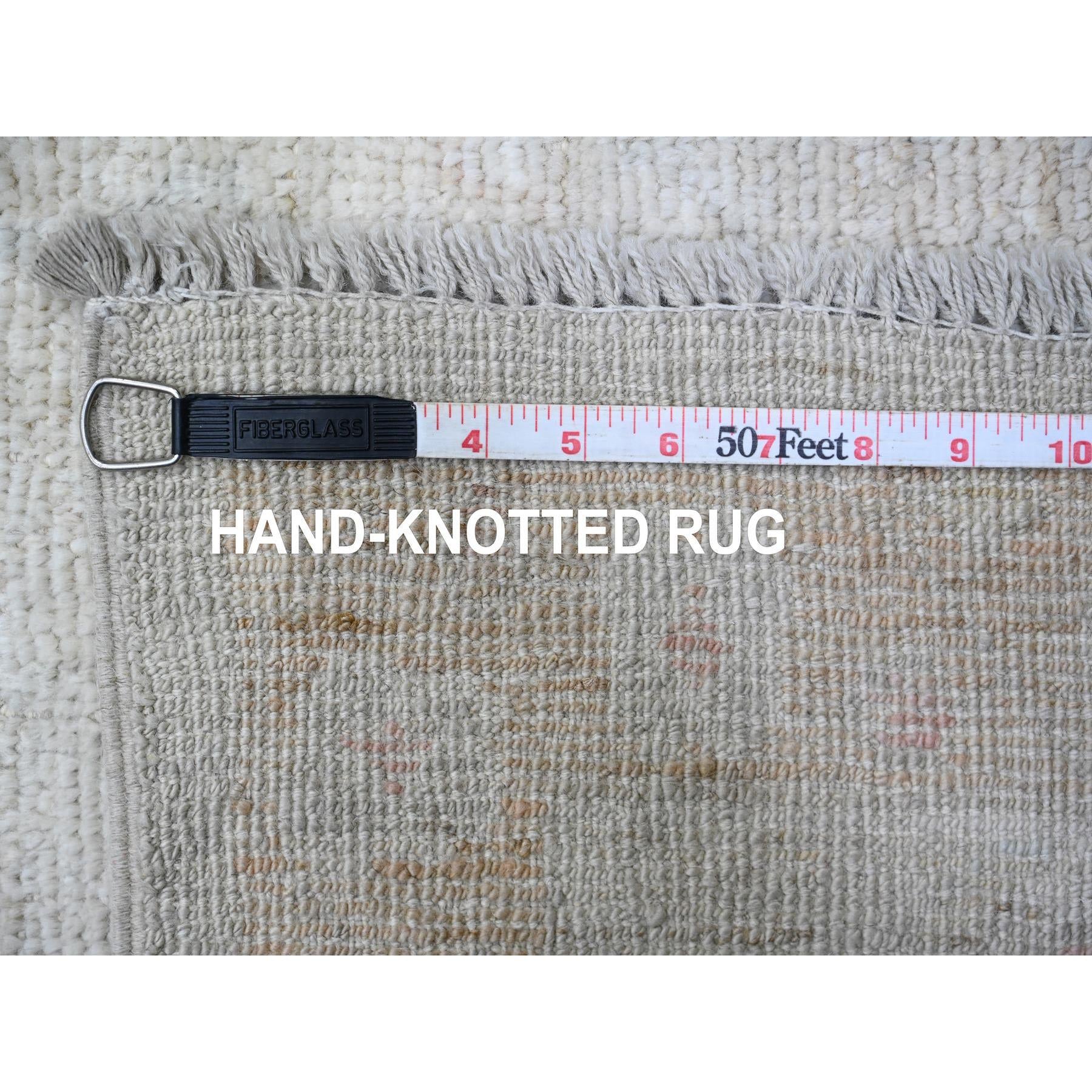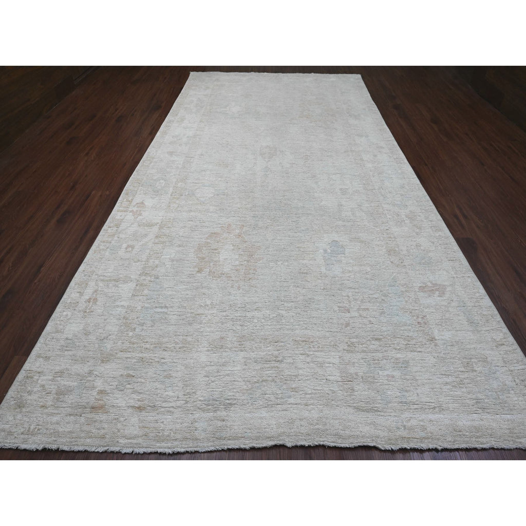 7'8"x14'10" Cloud Gray, Hand Knotted, Afghan Angora Oushak With Faded Leaf Design, Natural Dyes, 100% Wool, Gallery Size, Wide Runner, Oriental Rug FWR538608