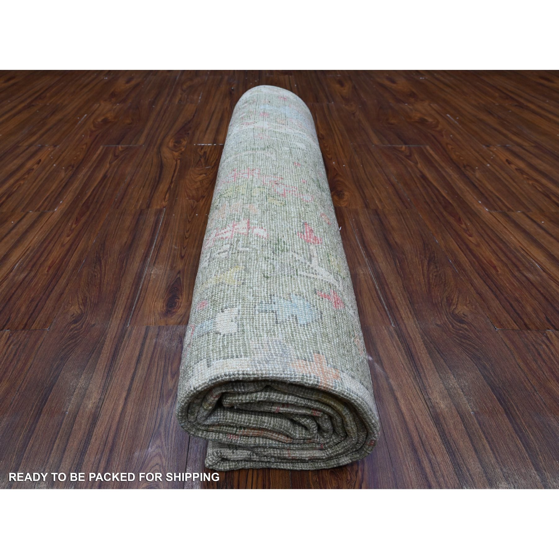 7'8"x9'10" Reseda Green, Natural Dyes, Wool Weft, Hand Knotted, Afghan Angora Oushak, Soft Pile, Tribal Willow And Cypress Design, Oriental Rug FWR534930