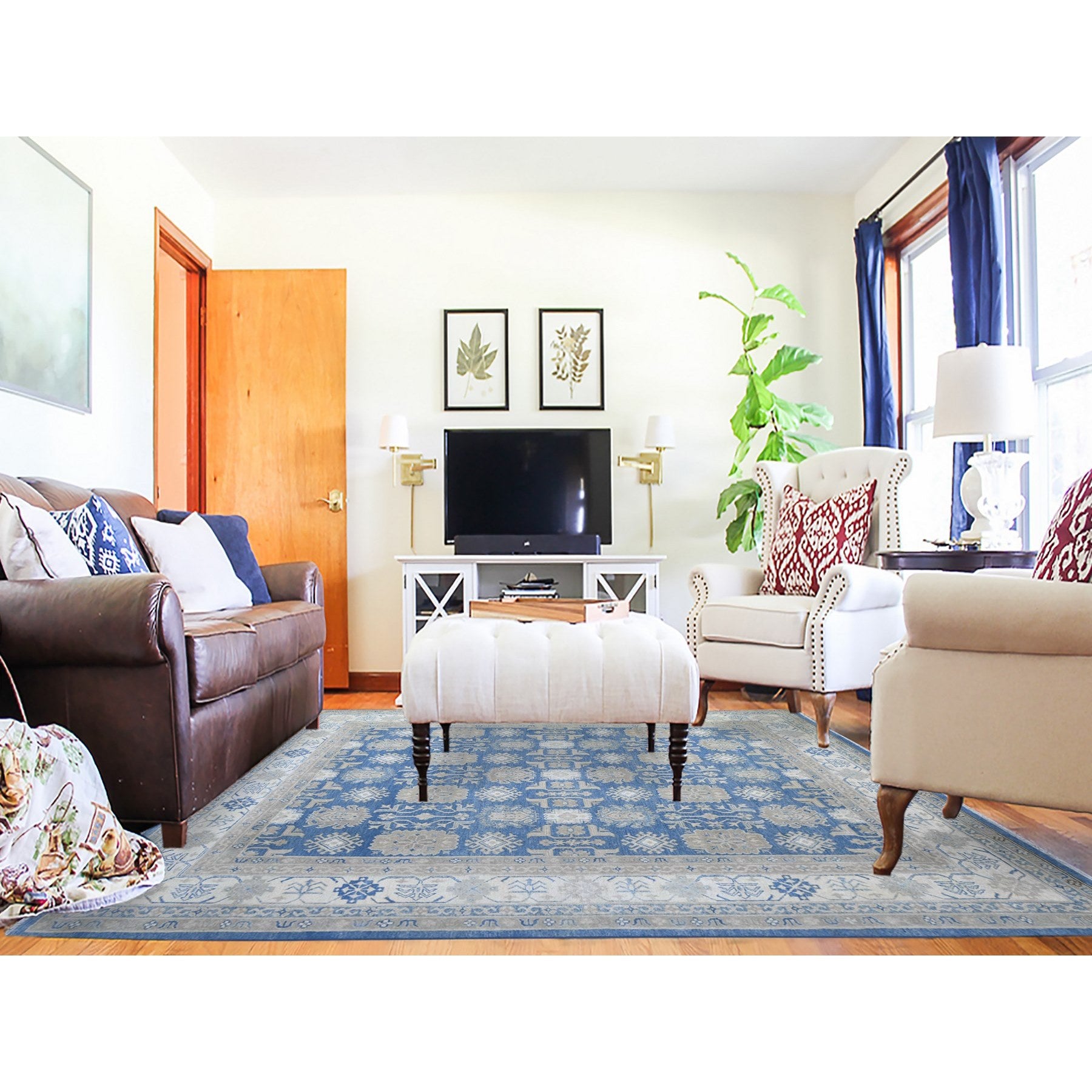7'8"x9'7" Bayern Blue, Soft And Vibrant Wool, Vegetable Dyes, Vintage Look Kazak With Geometric Elements, Hand Knotted, Oriental Rug FWR448350