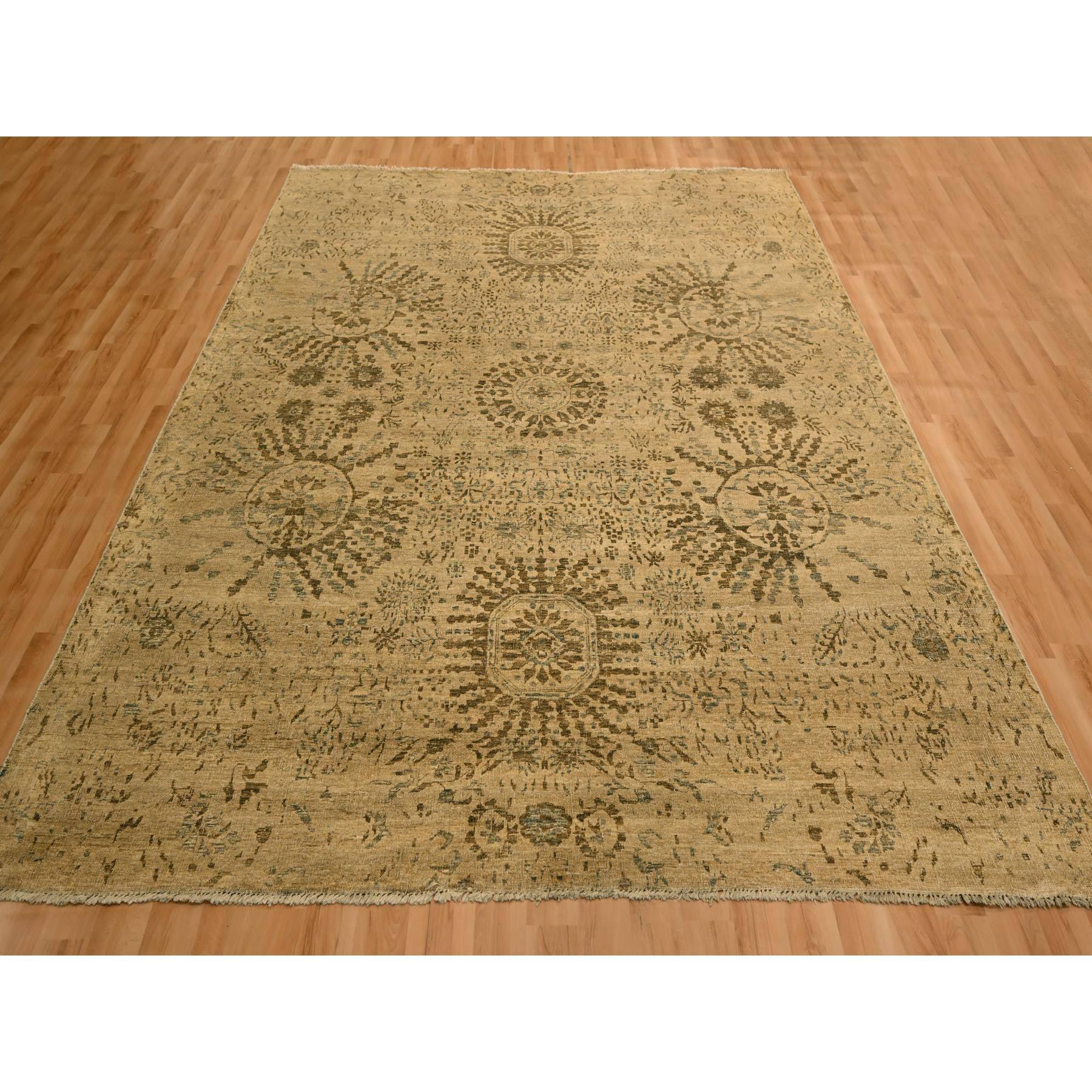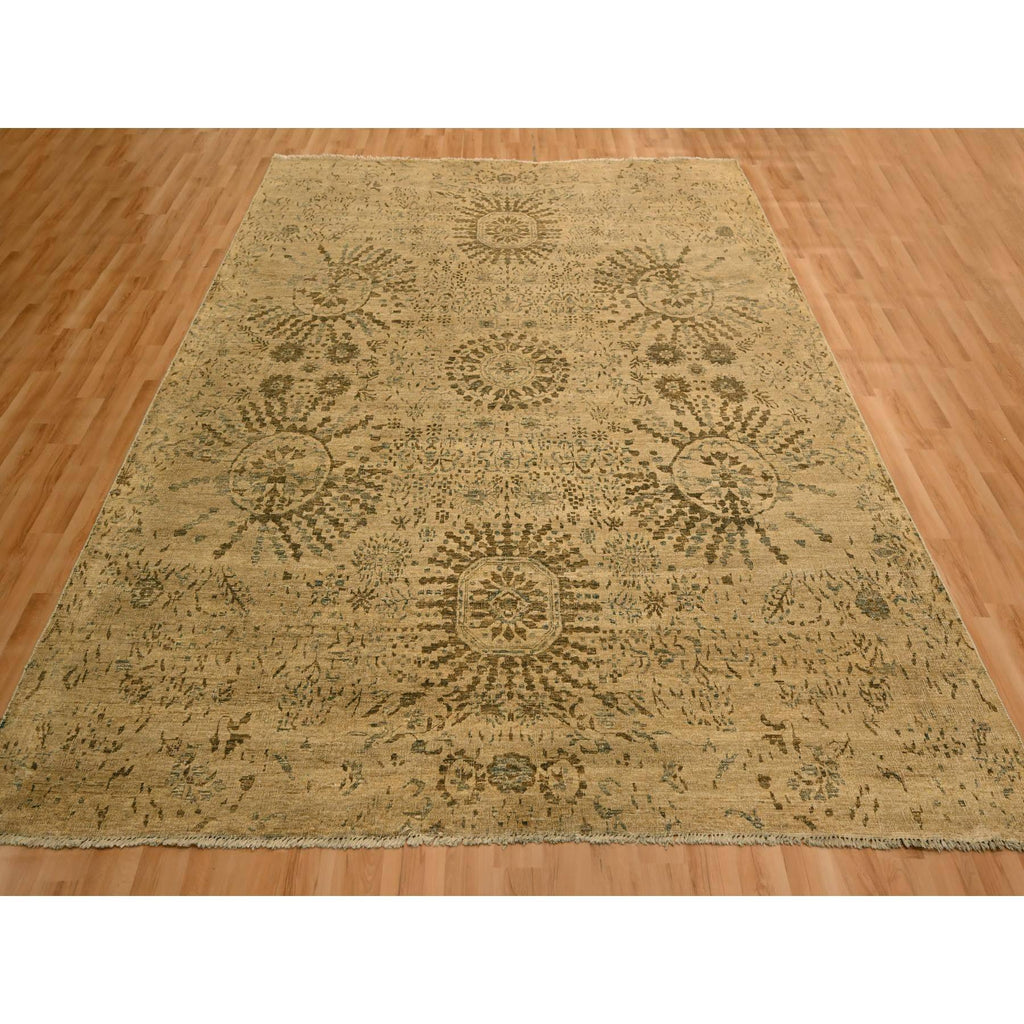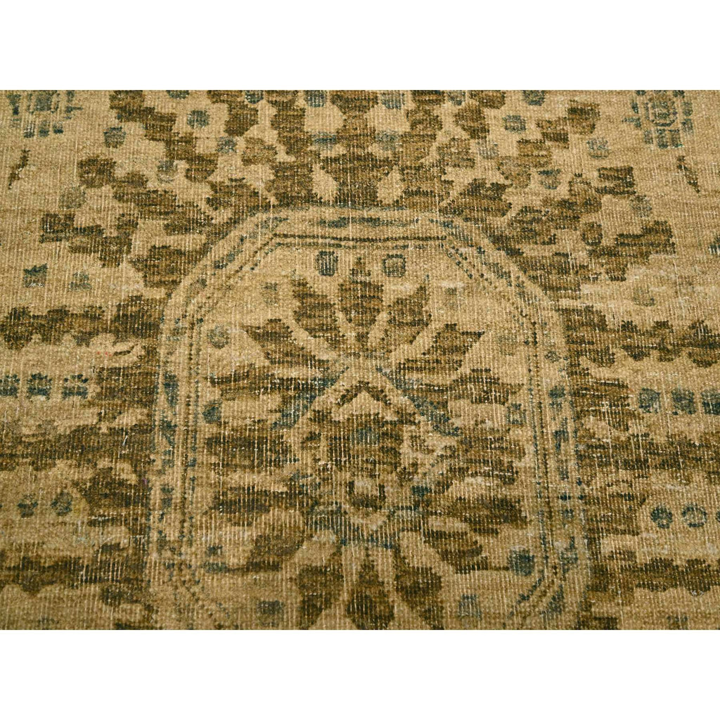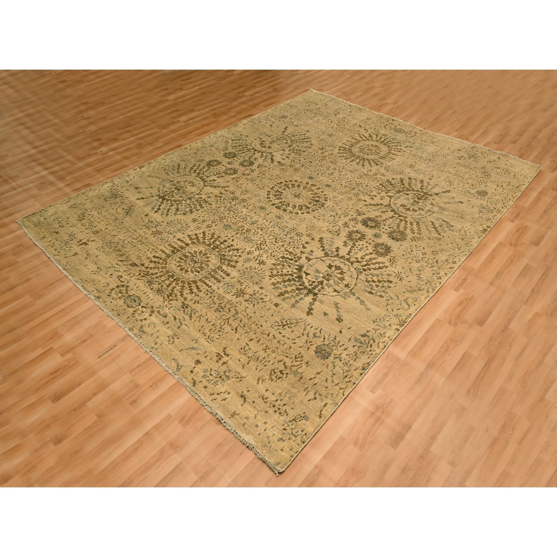 7'9"x10'1" Earth Tone Colors, Arts And Crafts Design, Undyed Natural Wool, Zero Pile, Distressed, Shaved Low, Hand Knotted, Oriental Rug FWR457158