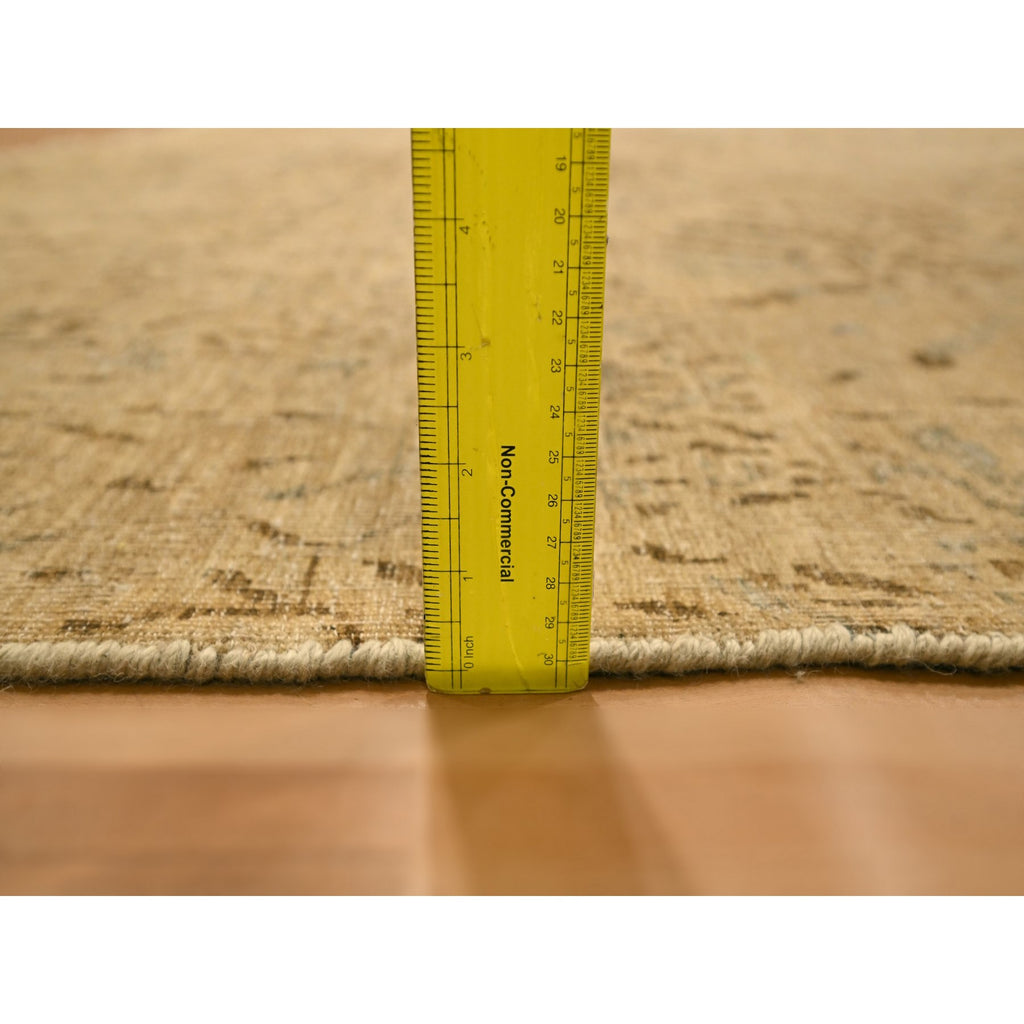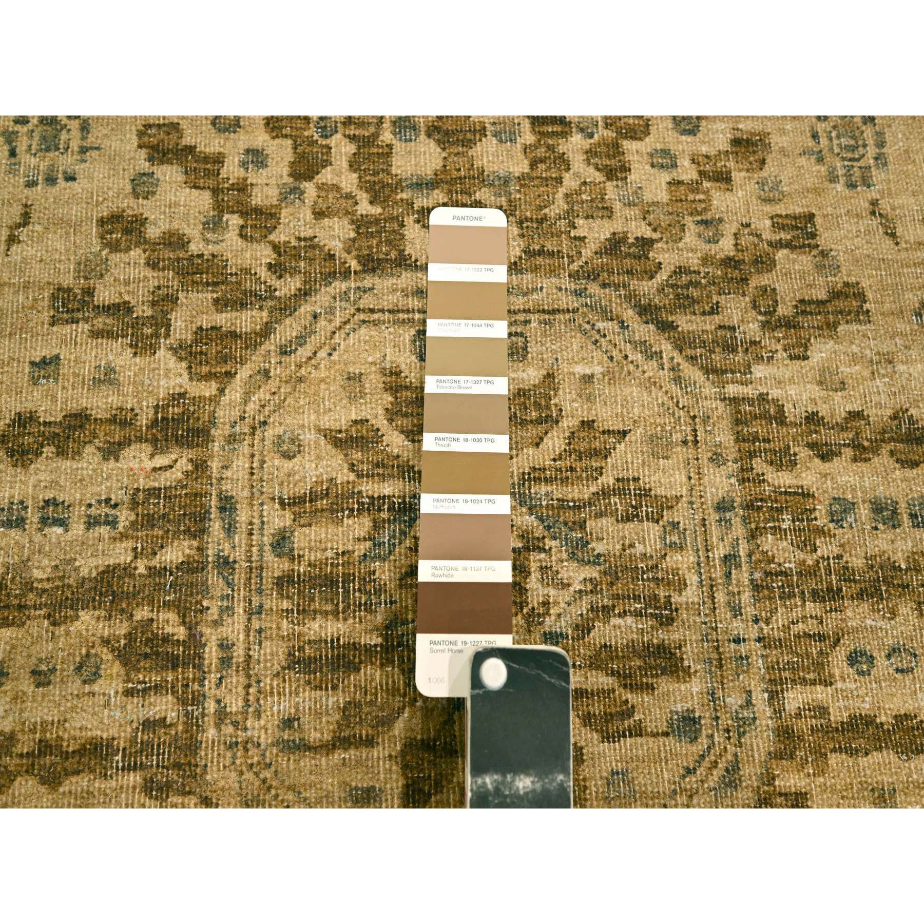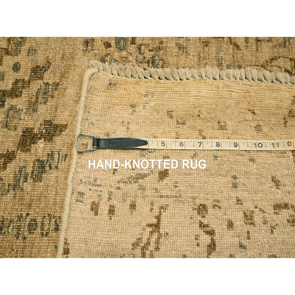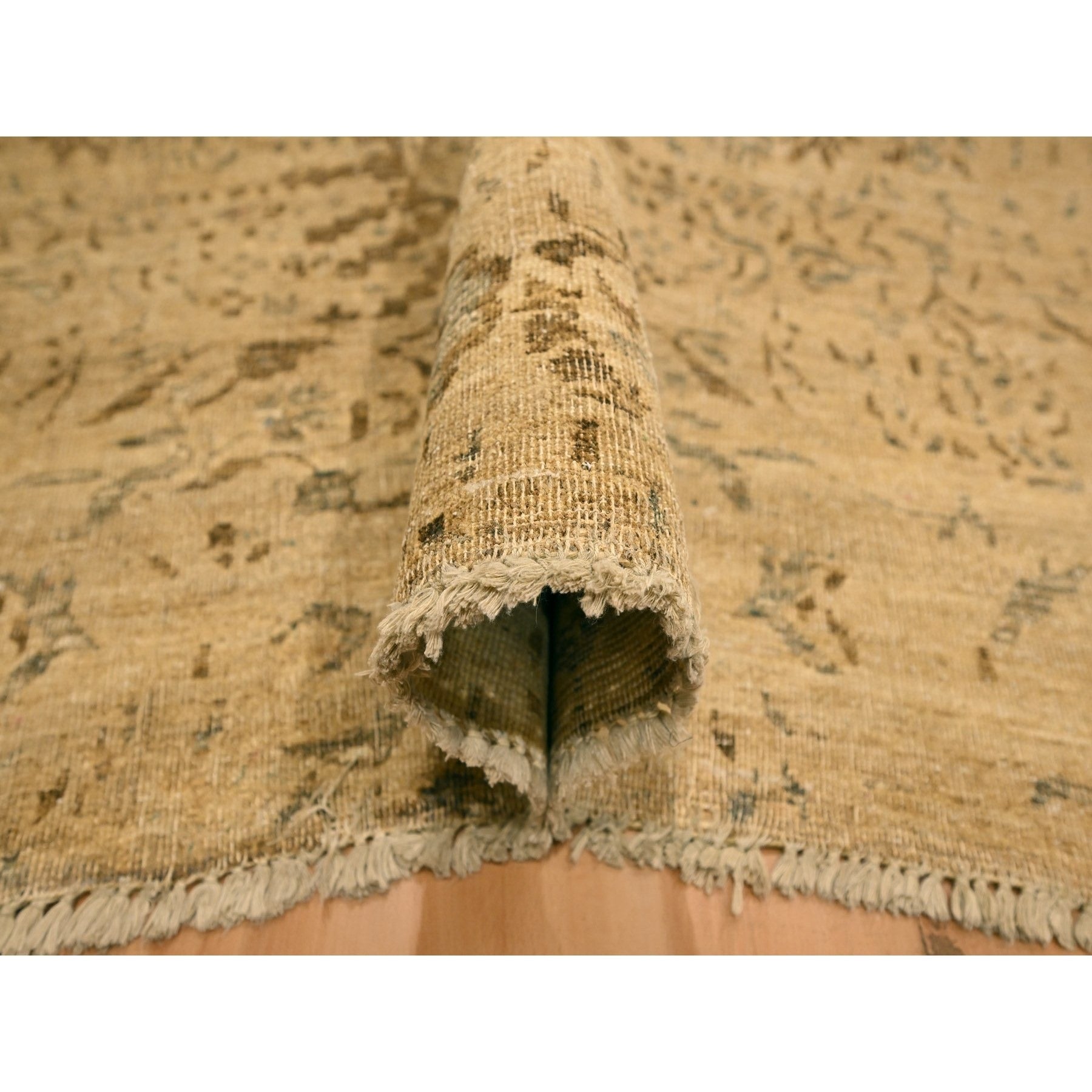 7'9"x10'1" Earth Tone Colors, Arts And Crafts Design, Undyed Natural Wool, Zero Pile, Distressed, Shaved Low, Hand Knotted, Oriental Rug FWR457158