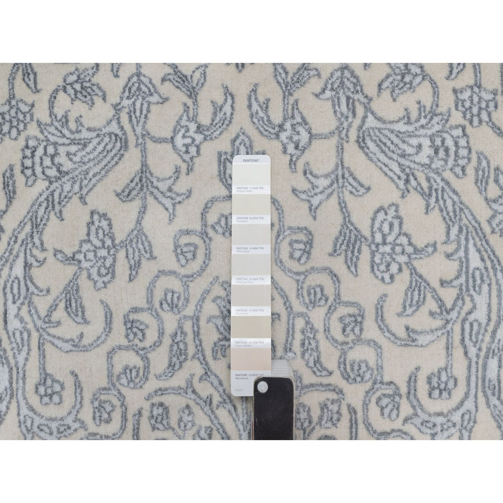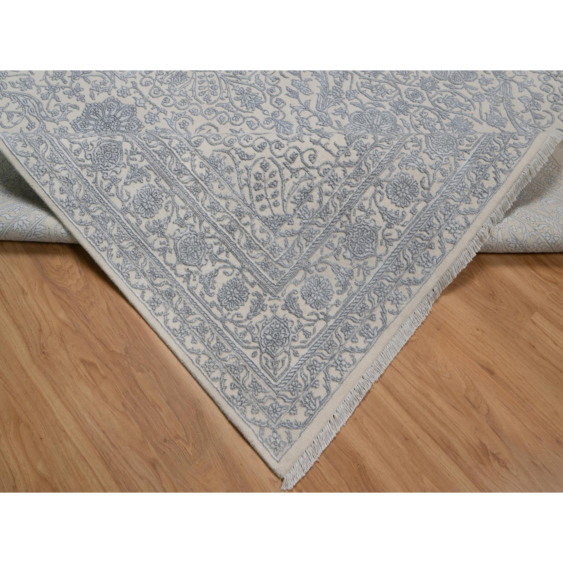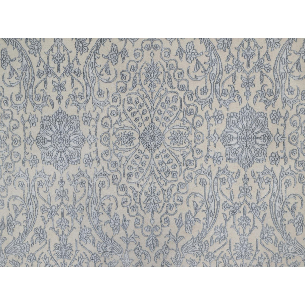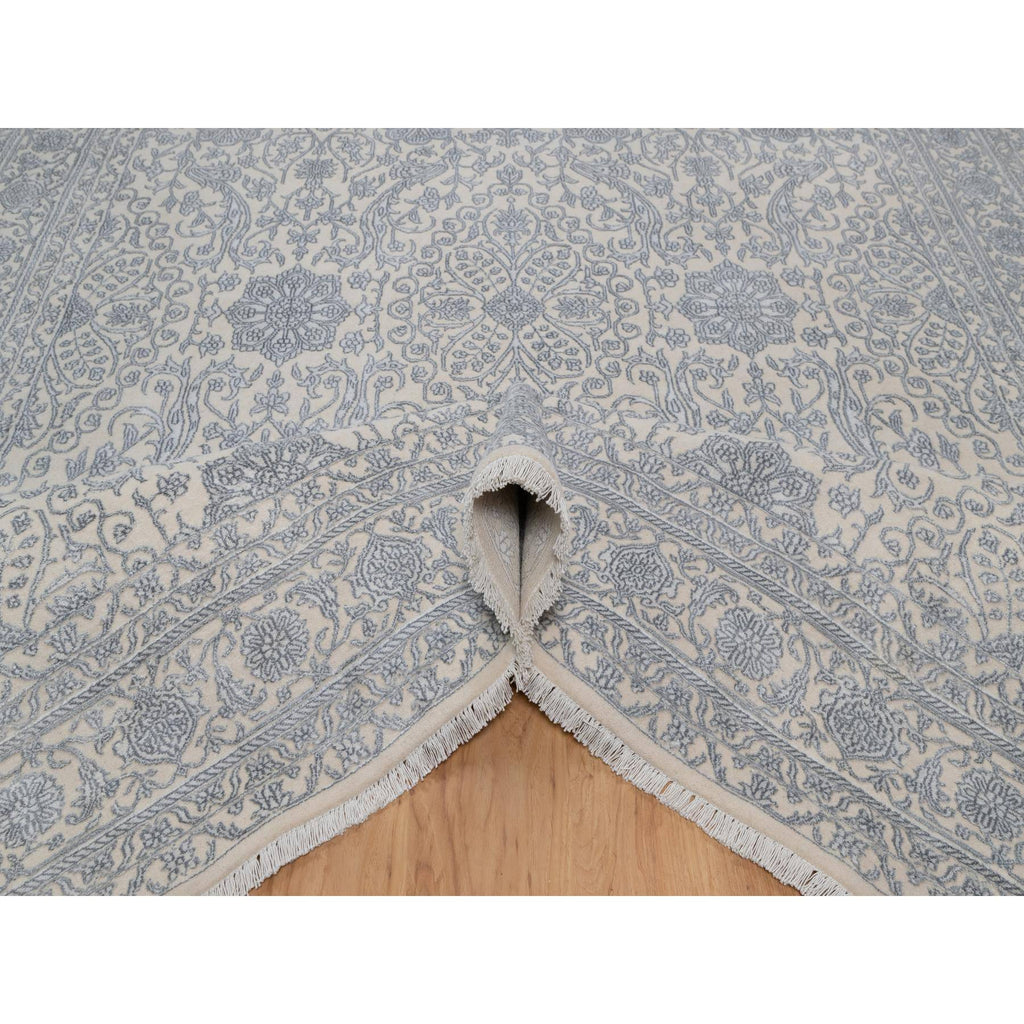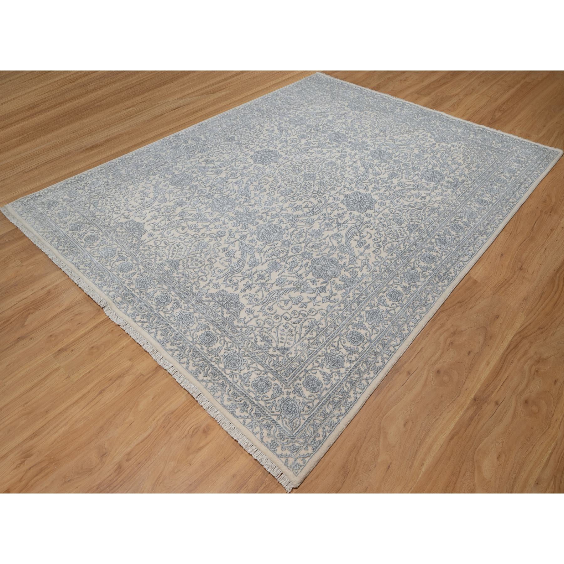 7'9"x10'2" Chiffon White, Light Tone On Tone With Persian Design, Wool And Plant Based Silk, Thick And Plush, 200 Kpsi, Hand Knotted, Oriental Rug FWR548196