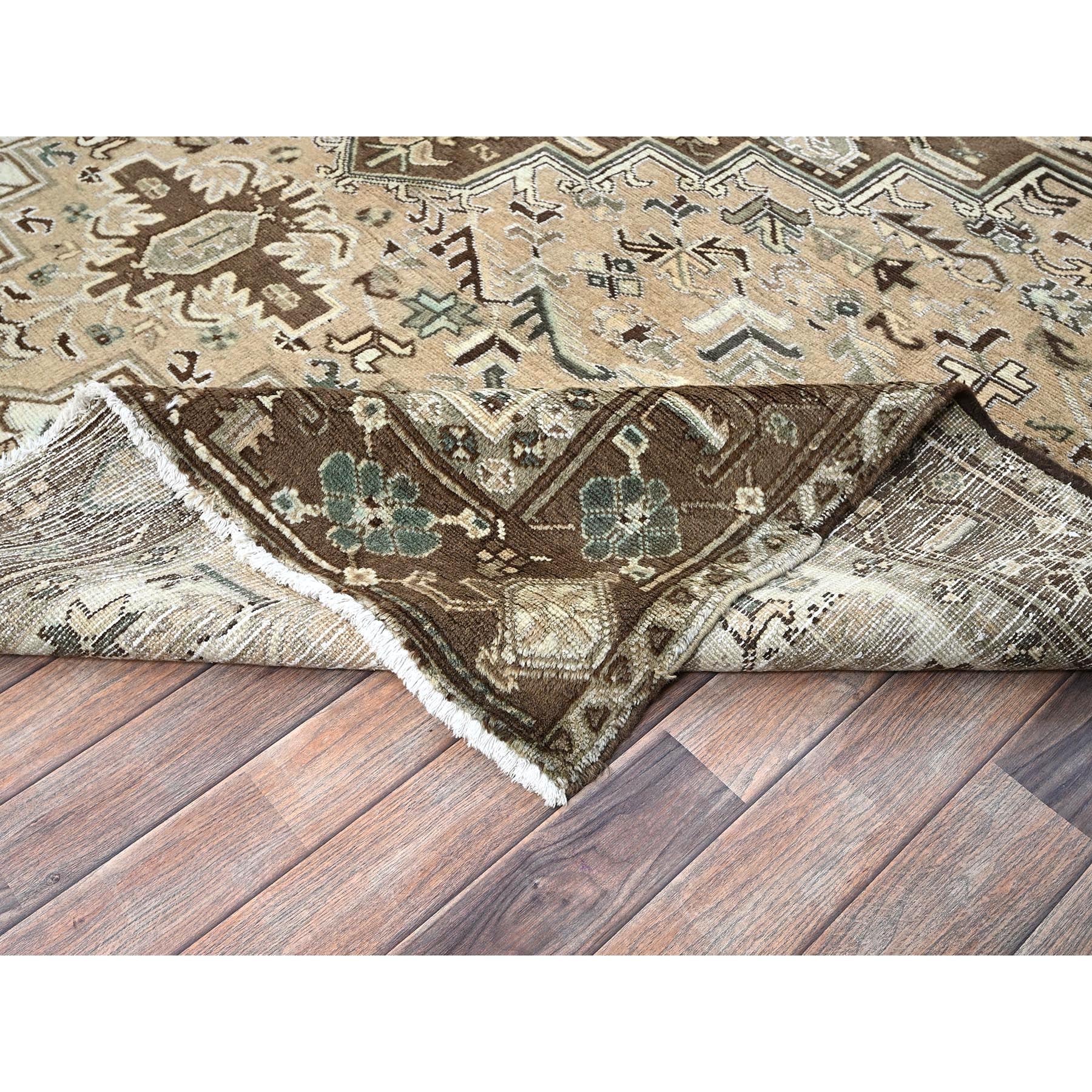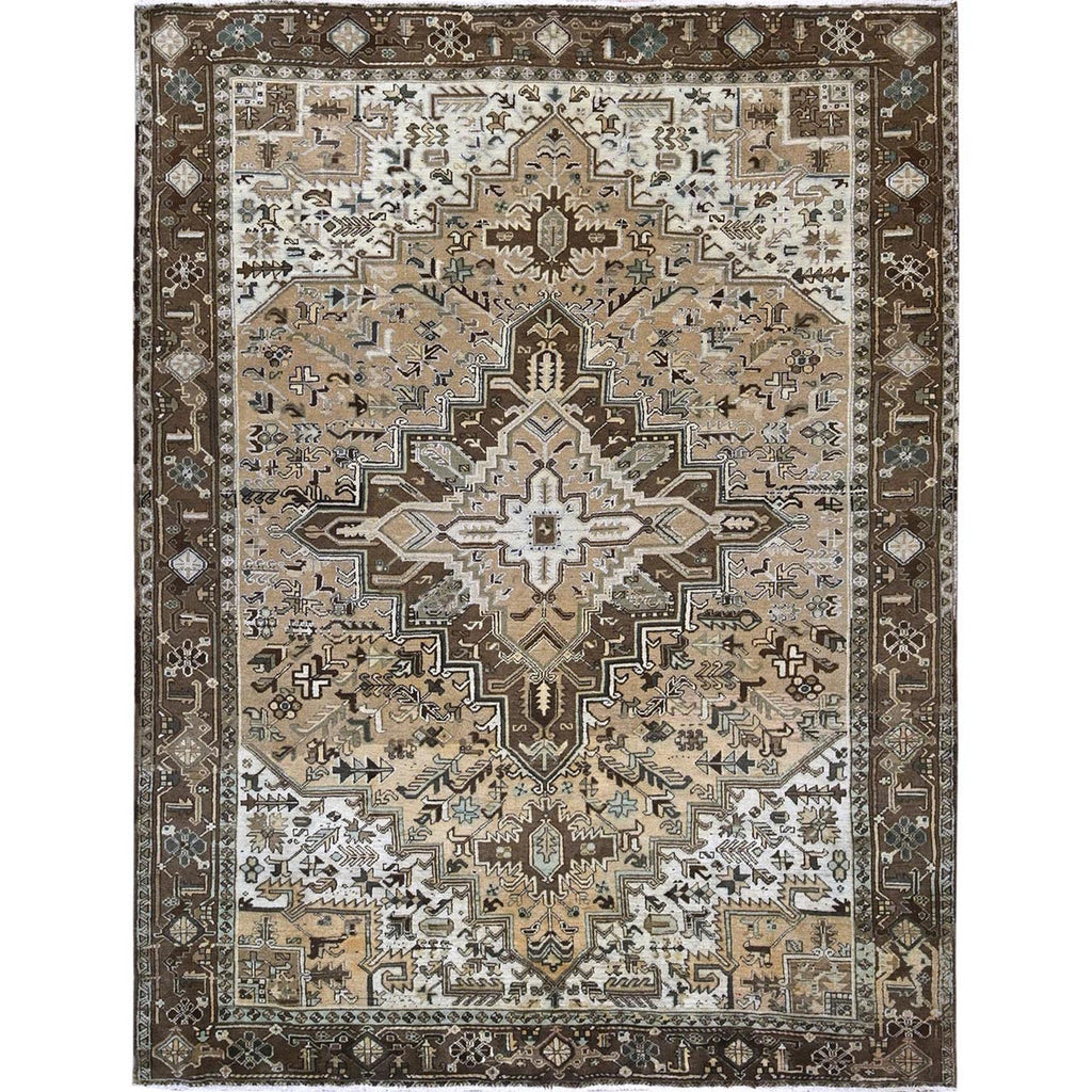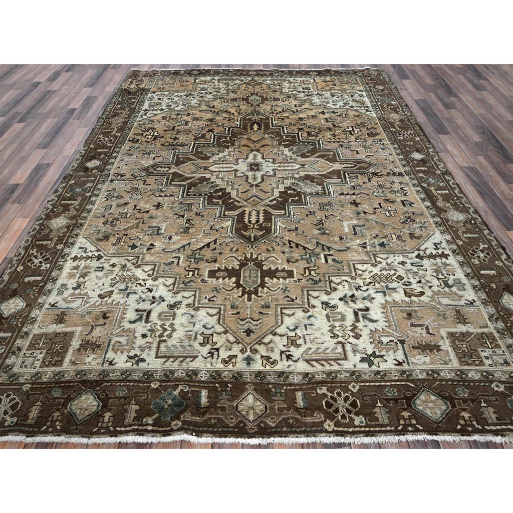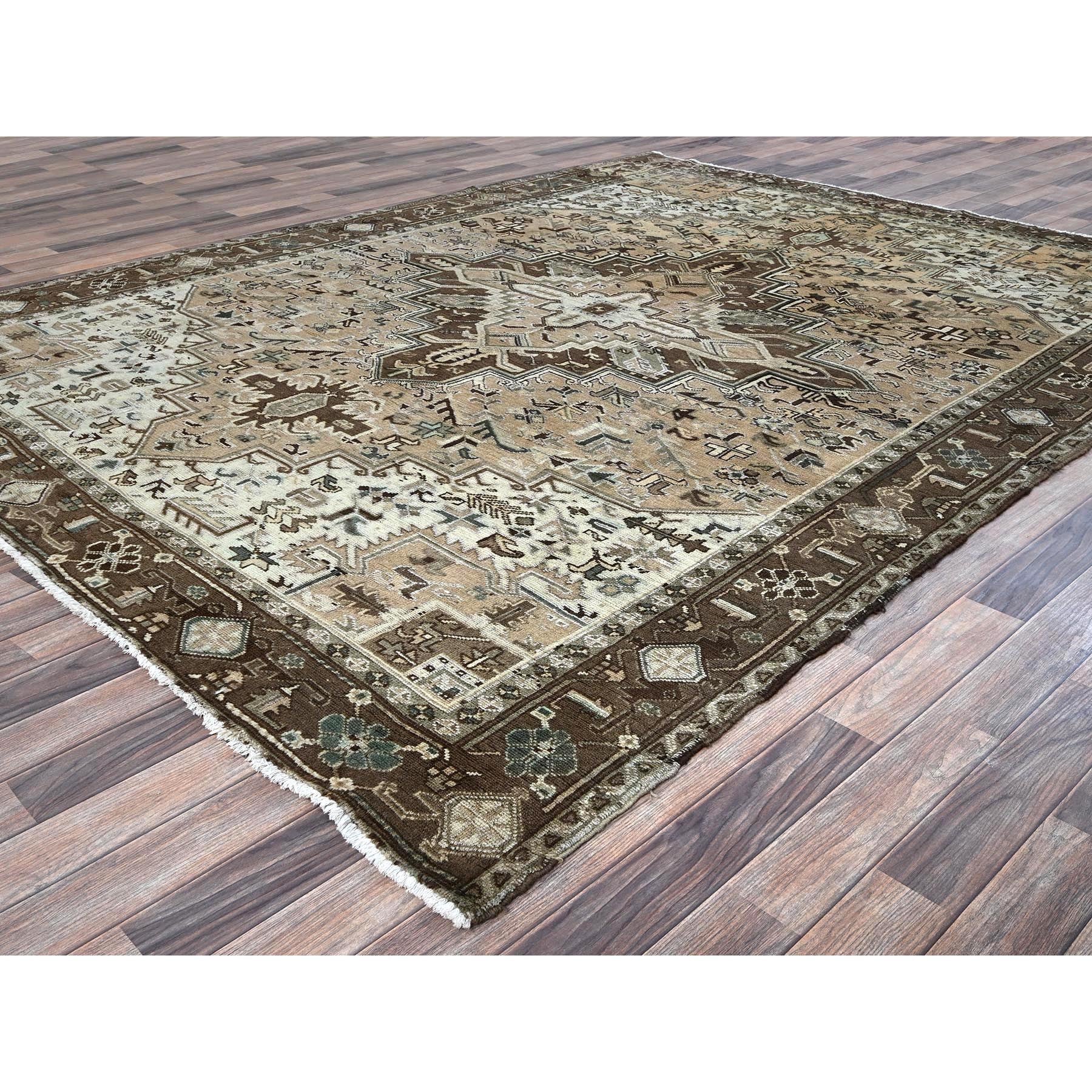 7'9"x10'3" Dark Vanilla Brown, Vintage Persian Heriz With Geometric Medallion Design, Pure Wool, Hand Knotted, Evenly Worn, Cropped Thin, Good Condition, Sides And Ends Professionally Secured, Oriental Rug FWR7536