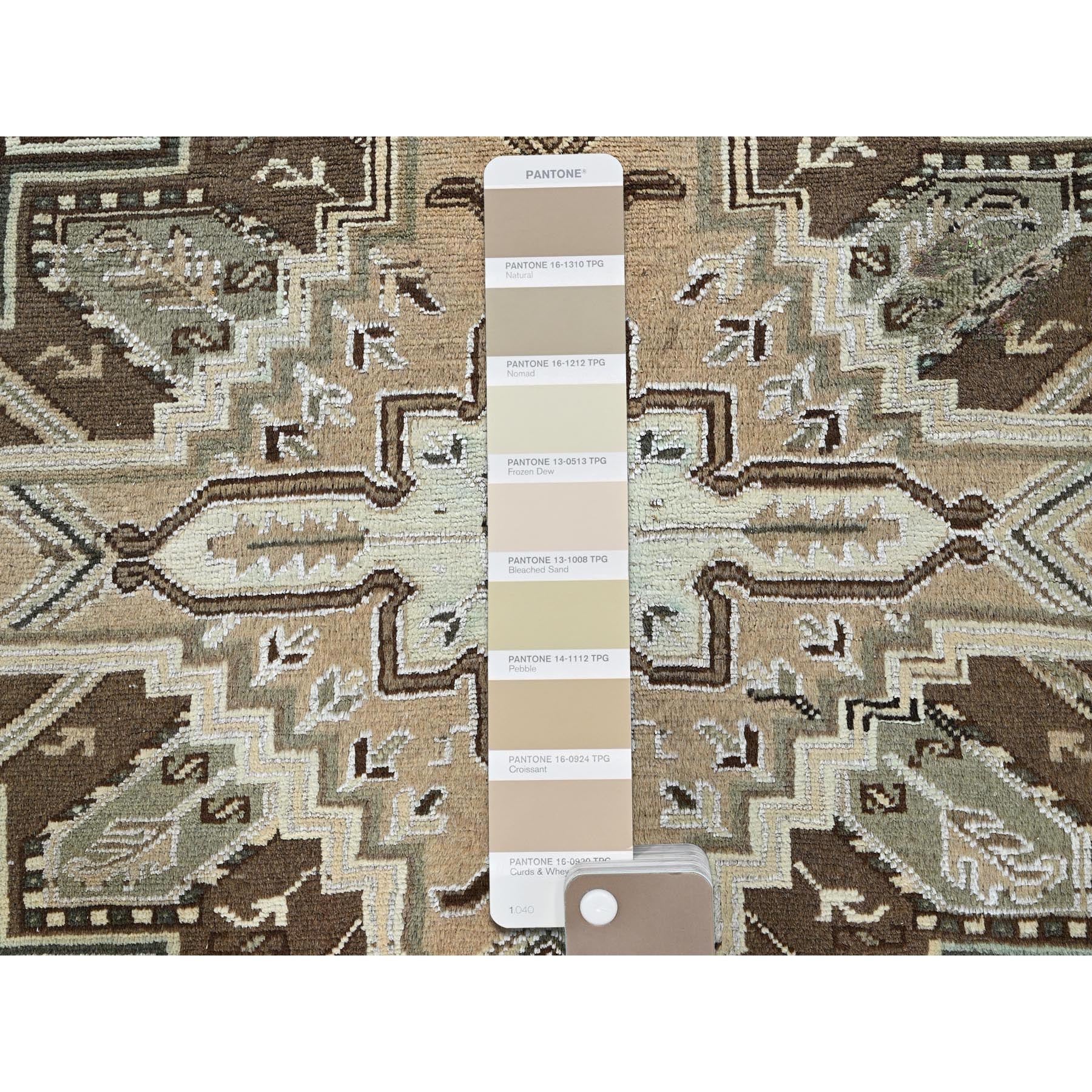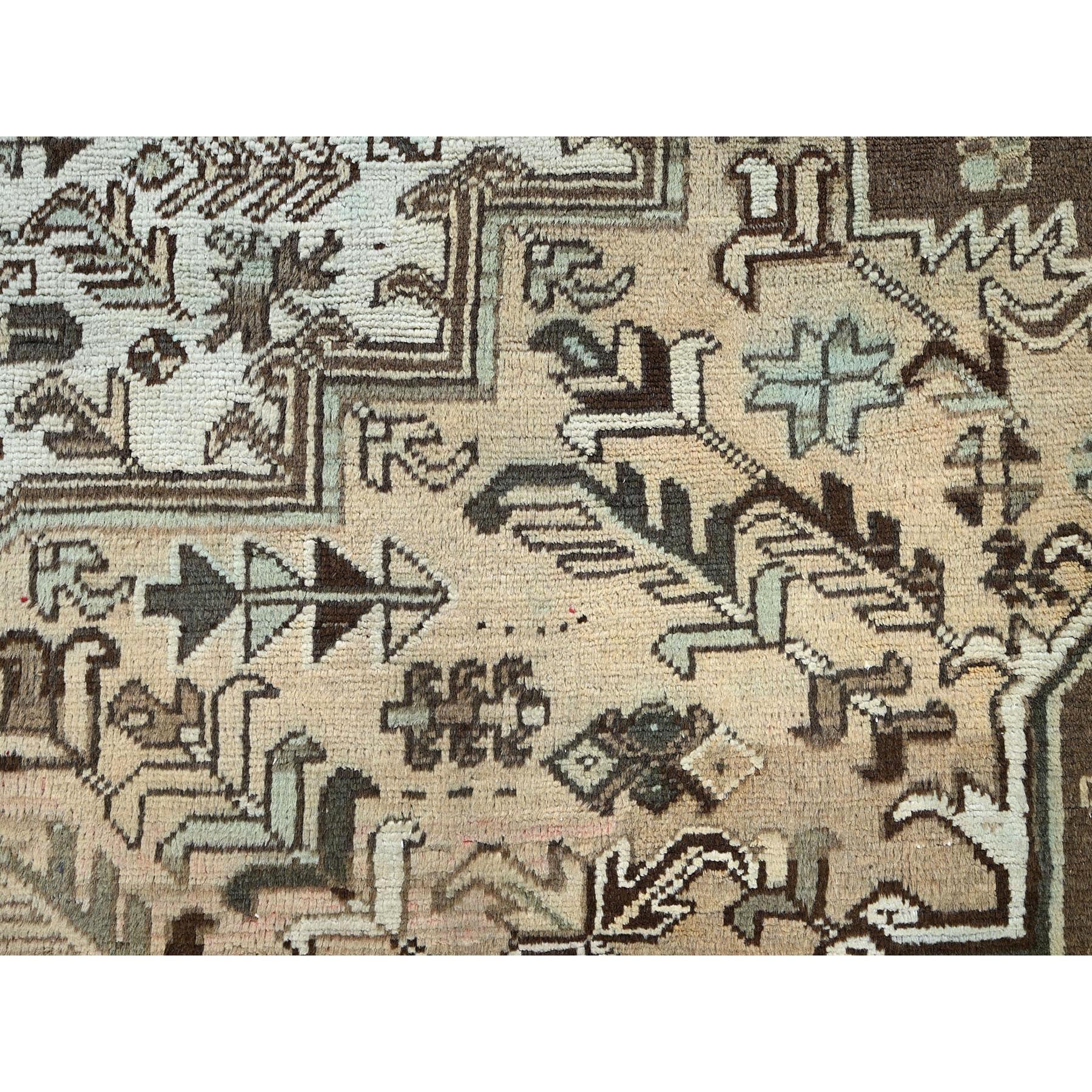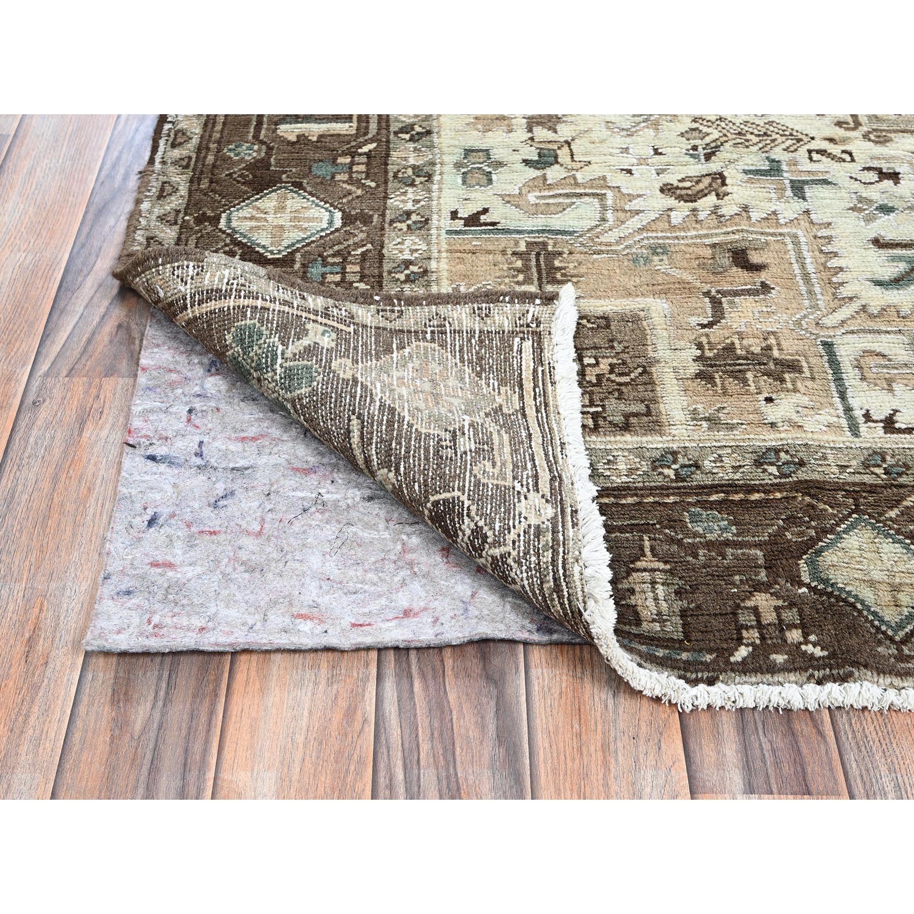 7'9"x10'3" Dark Vanilla Brown, Vintage Persian Heriz With Geometric Medallion Design, Pure Wool, Hand Knotted, Evenly Worn, Cropped Thin, Good Condition, Sides And Ends Professionally Secured, Oriental Rug FWR7536