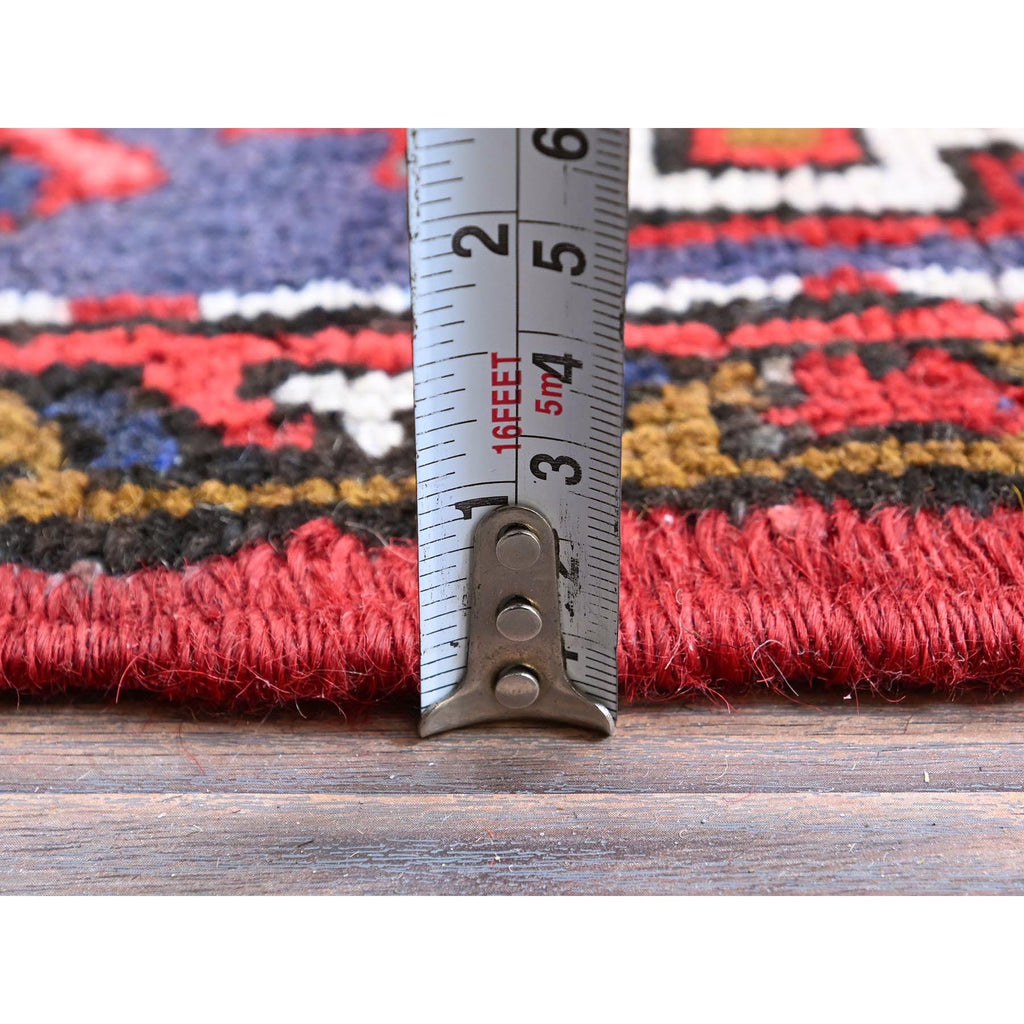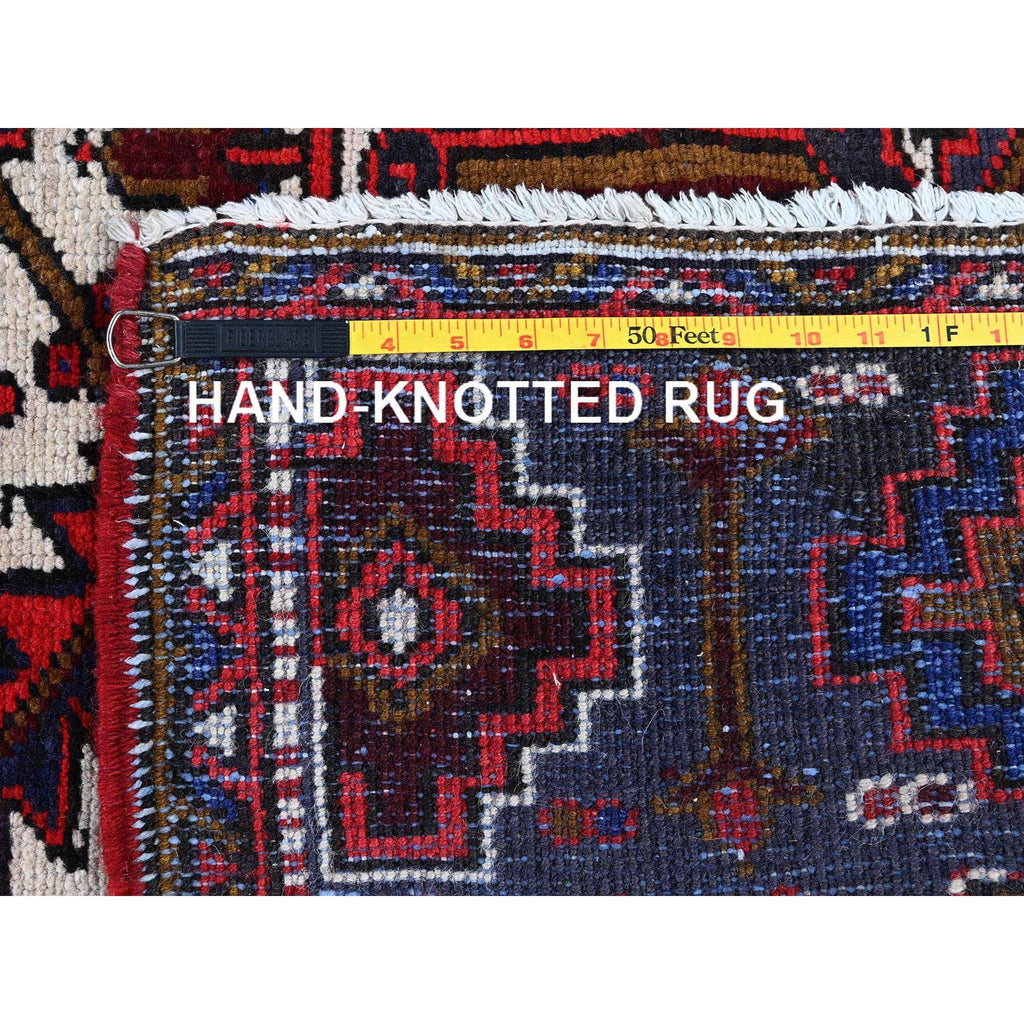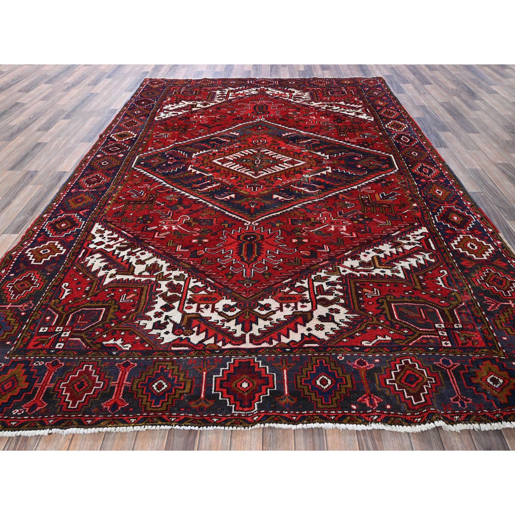 7'9"x10'4" Ajax Red, Vintage Persian Heriz With Geometric Medallion Design, Animal Figurines, 100% Wool, Hand Knotted, Shaved Down, Even Wear, Good Condition, Sides And Ends Professionally Secured, Oriental Rug FWR1590