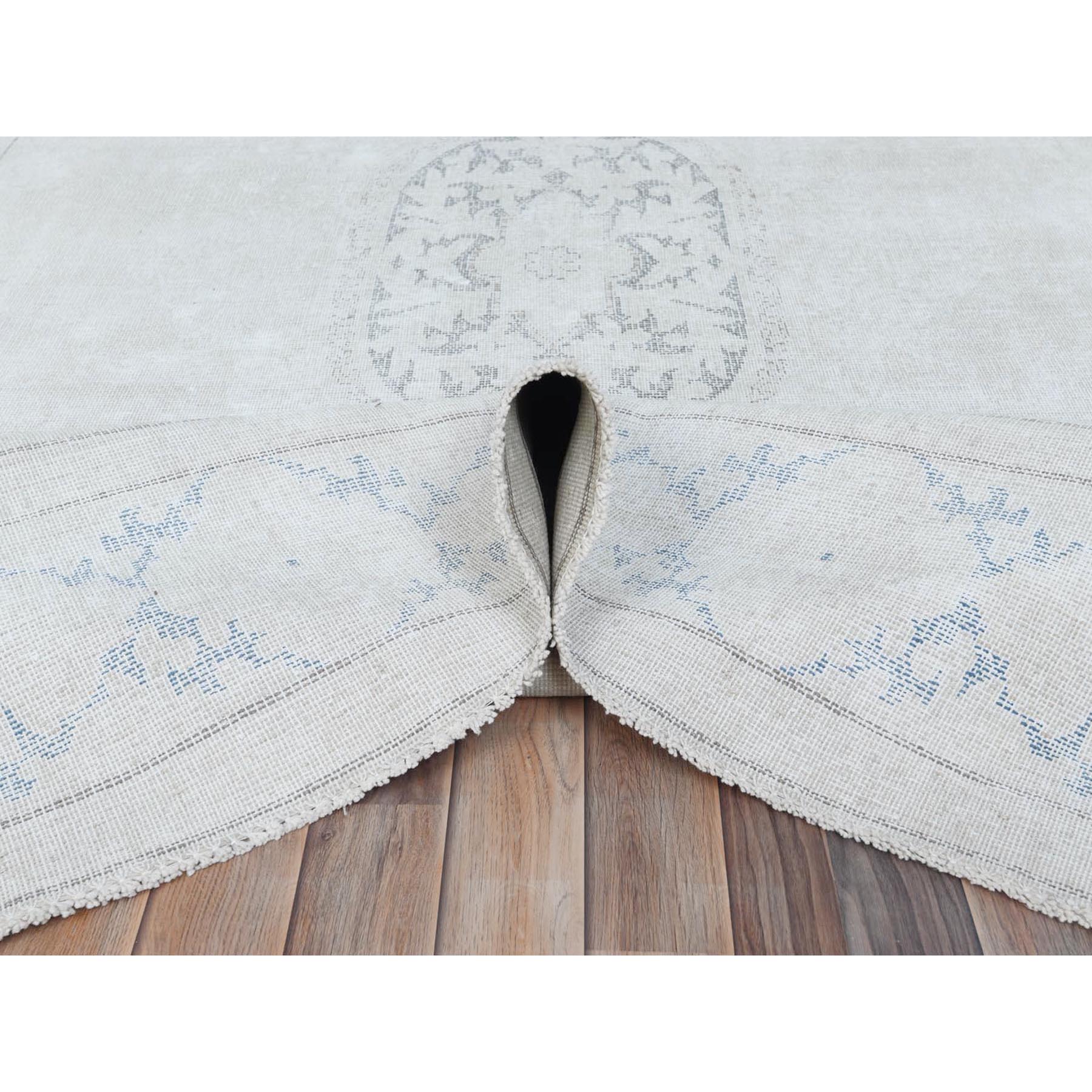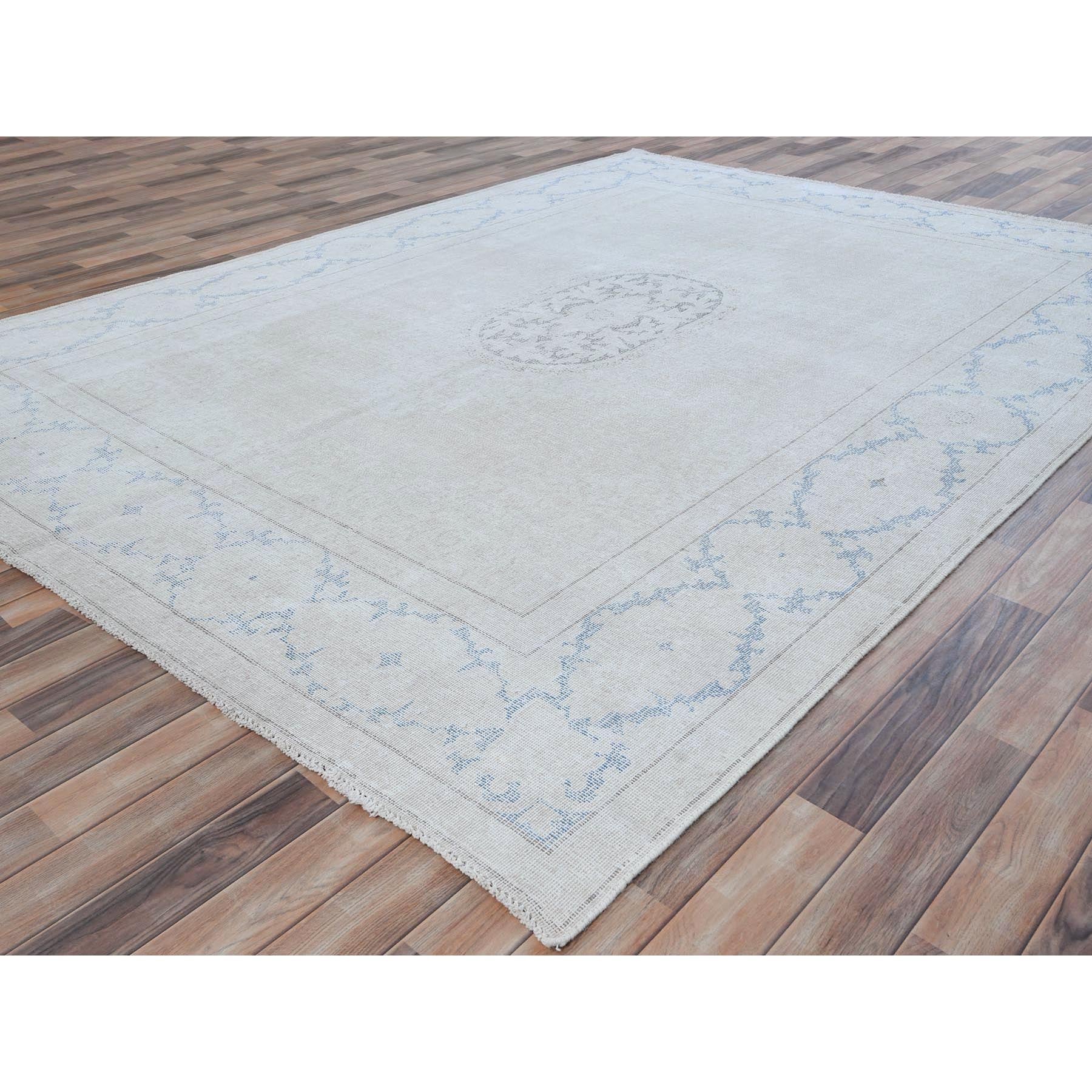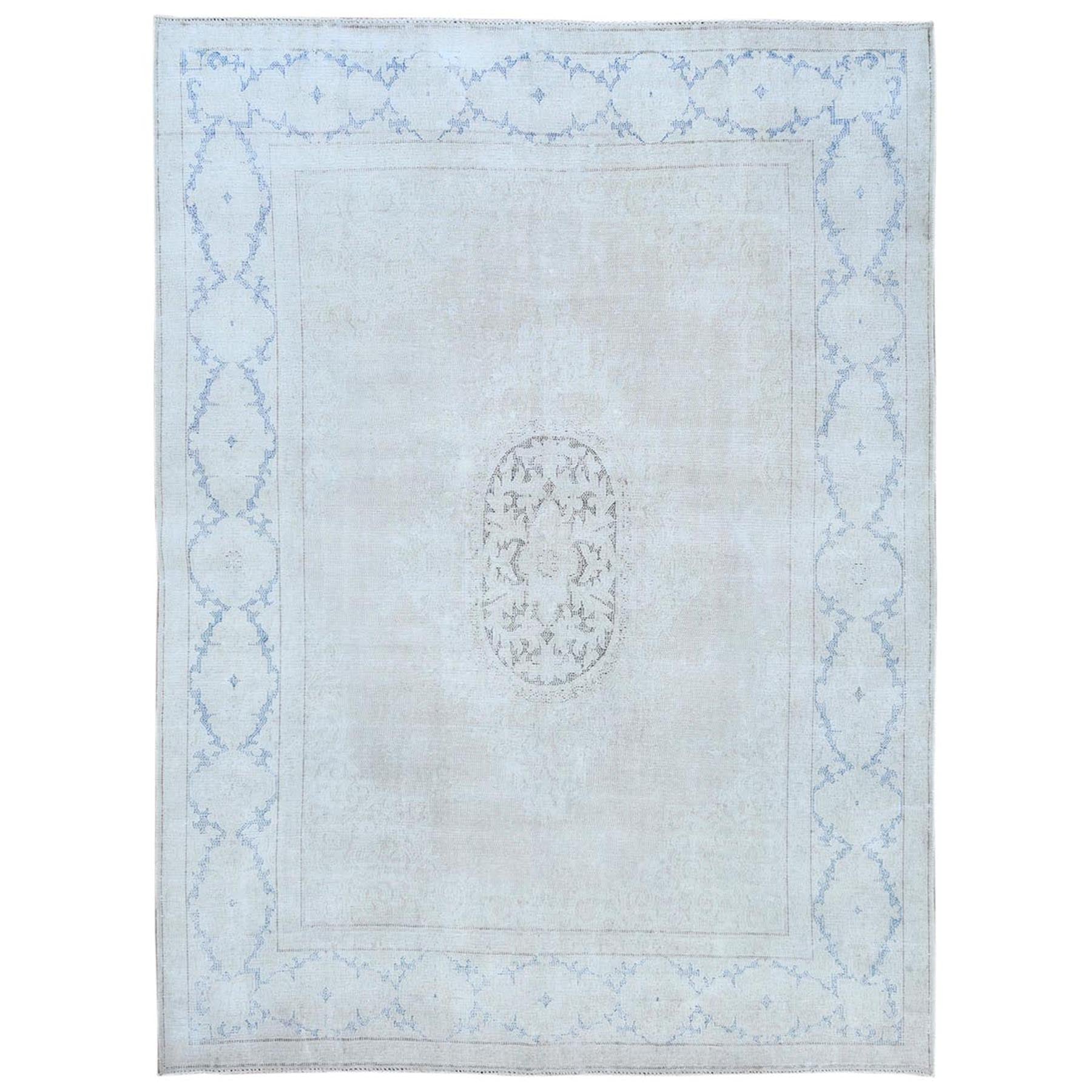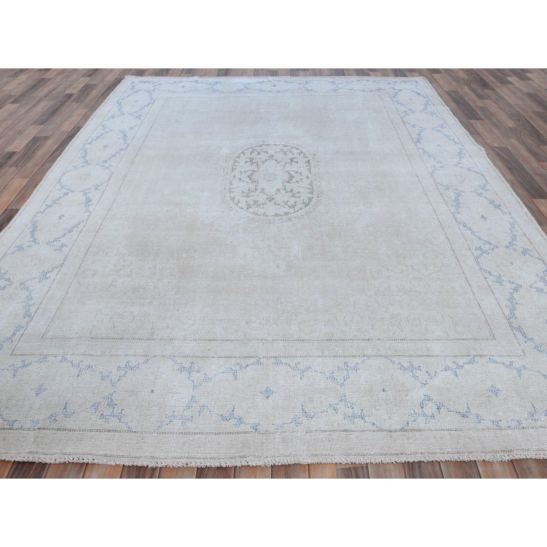 7'9"x10'7" Beige Old Persian Kerman Shabby Chic, Cropped Thin, Hand Knotted Worn Wool, Distressed Look Oriental Rug FWR487608