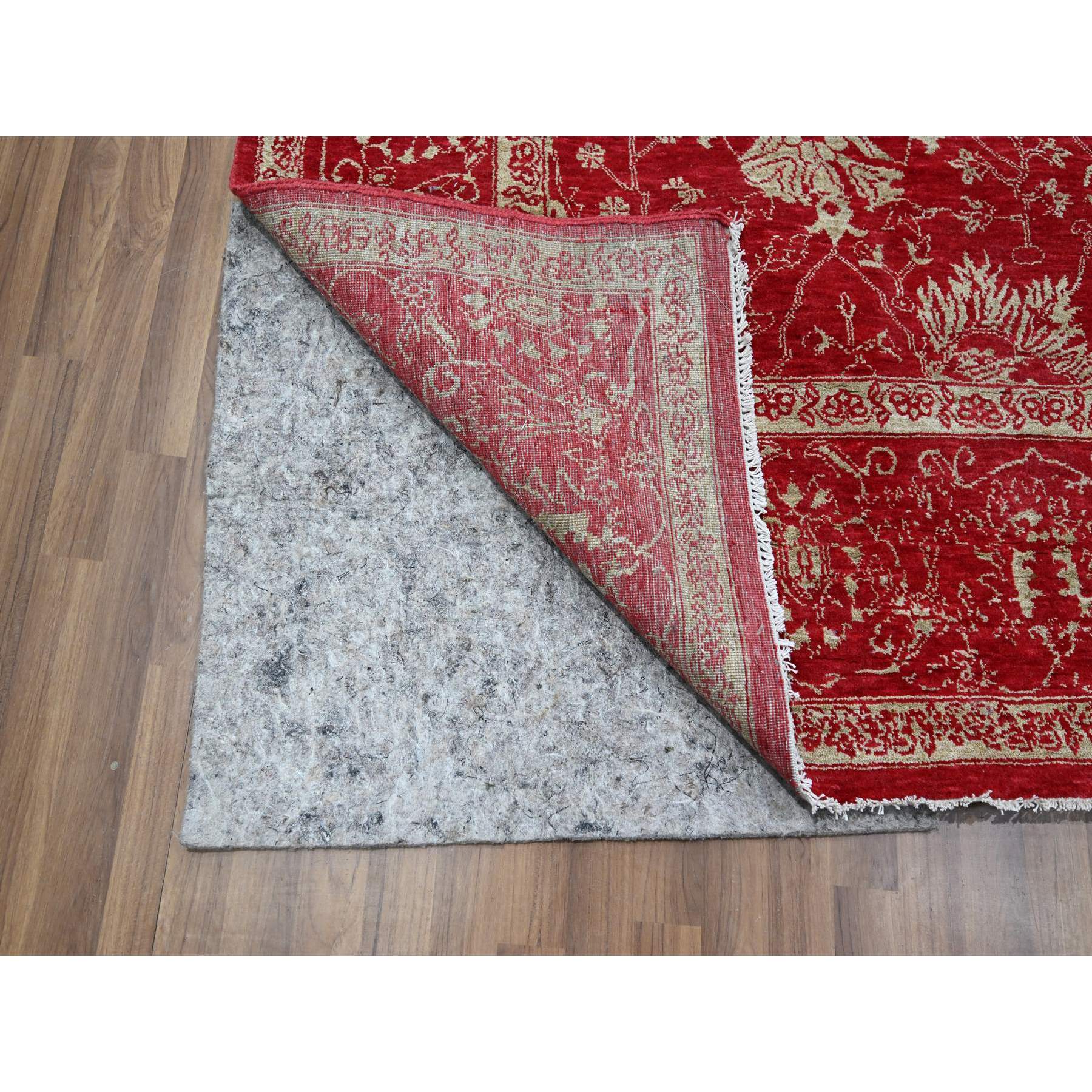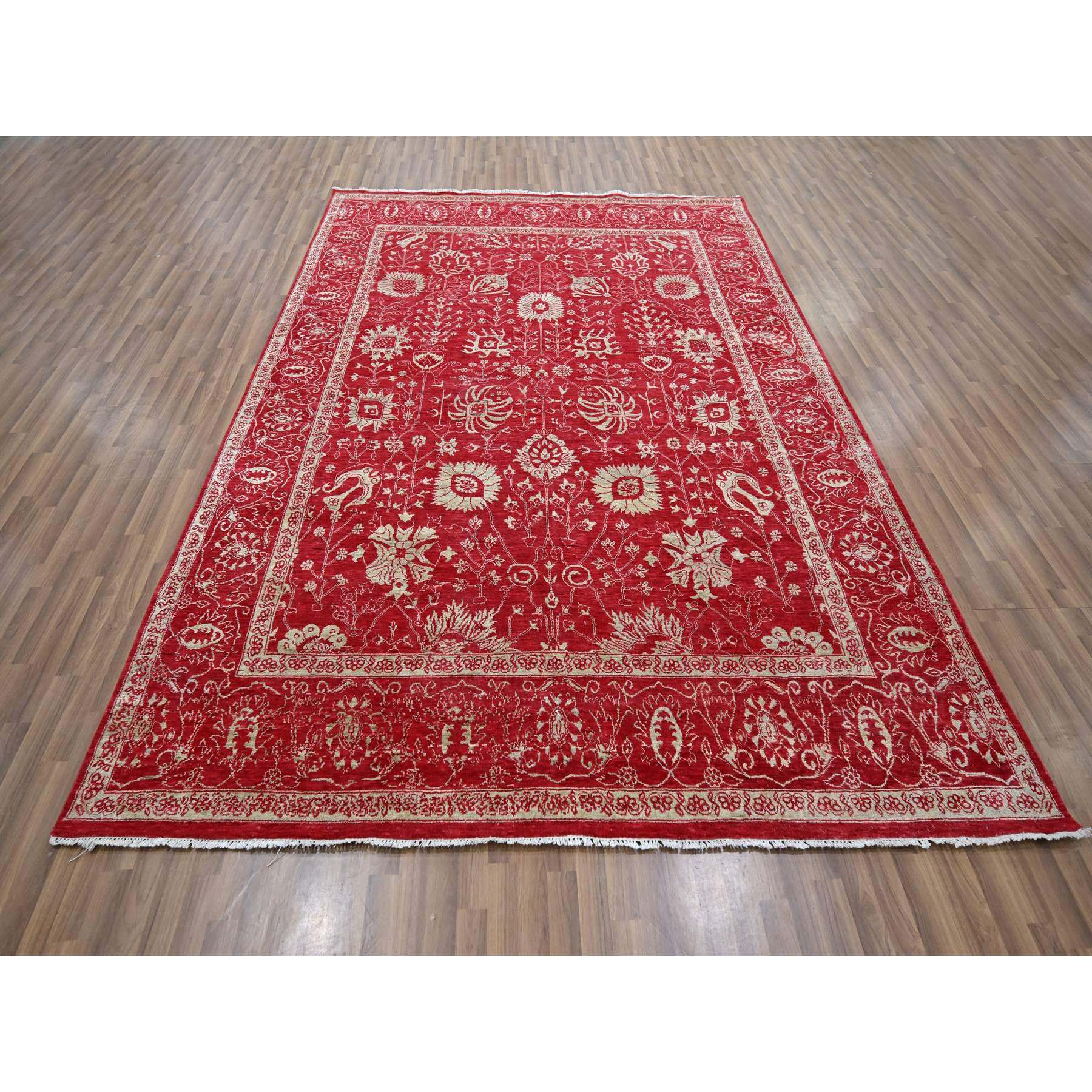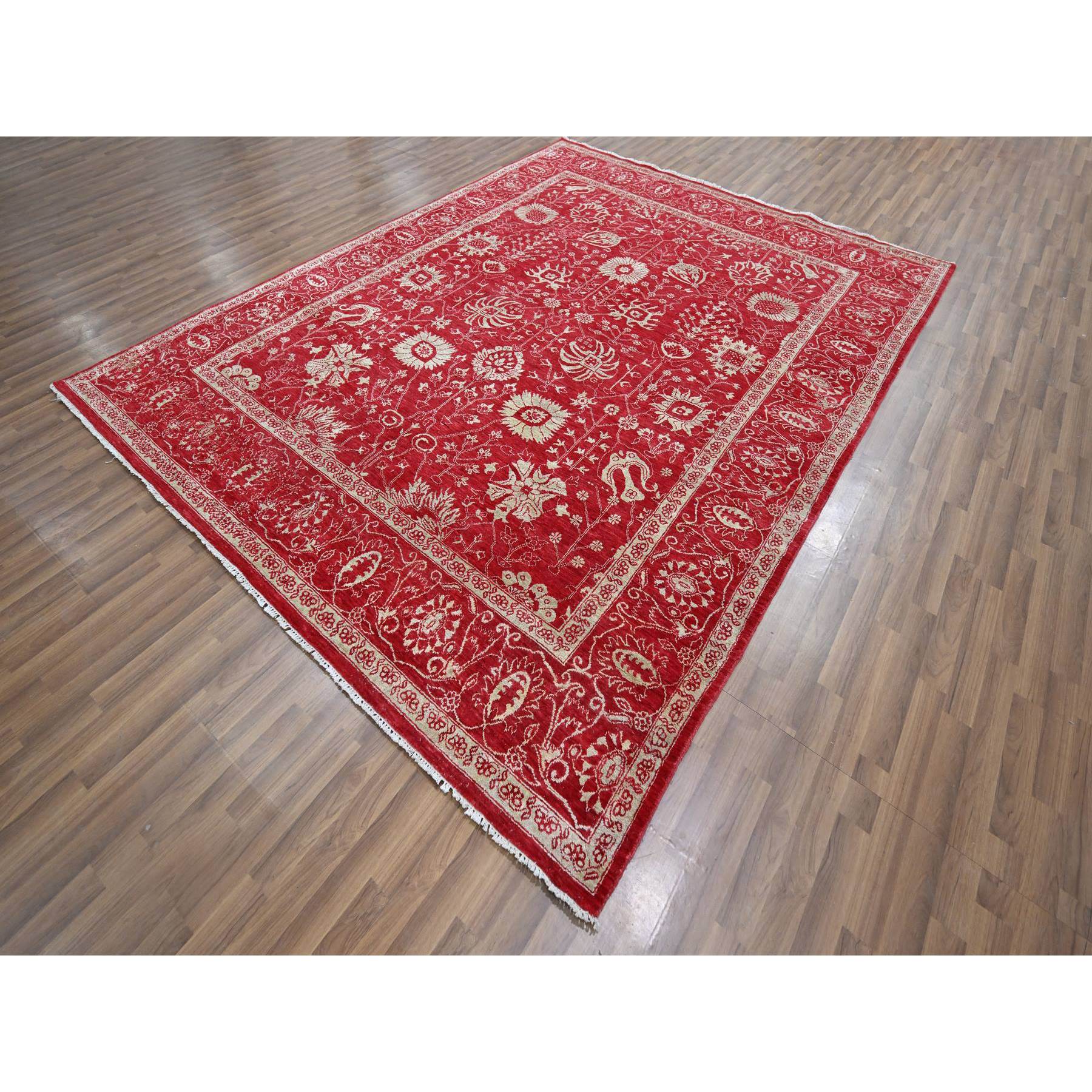7'9"x10' Crimson Red, Persian Tabriz Influence Design, Wool & Silk, Tone On Tone, Hand Knotted, Oriental Rug FWR457836