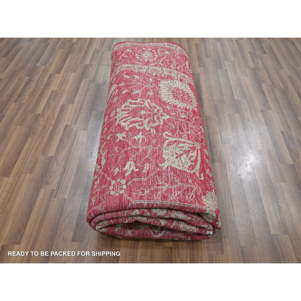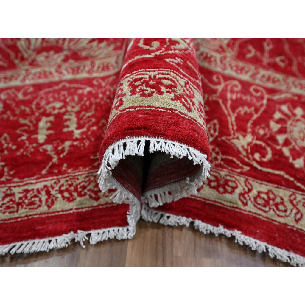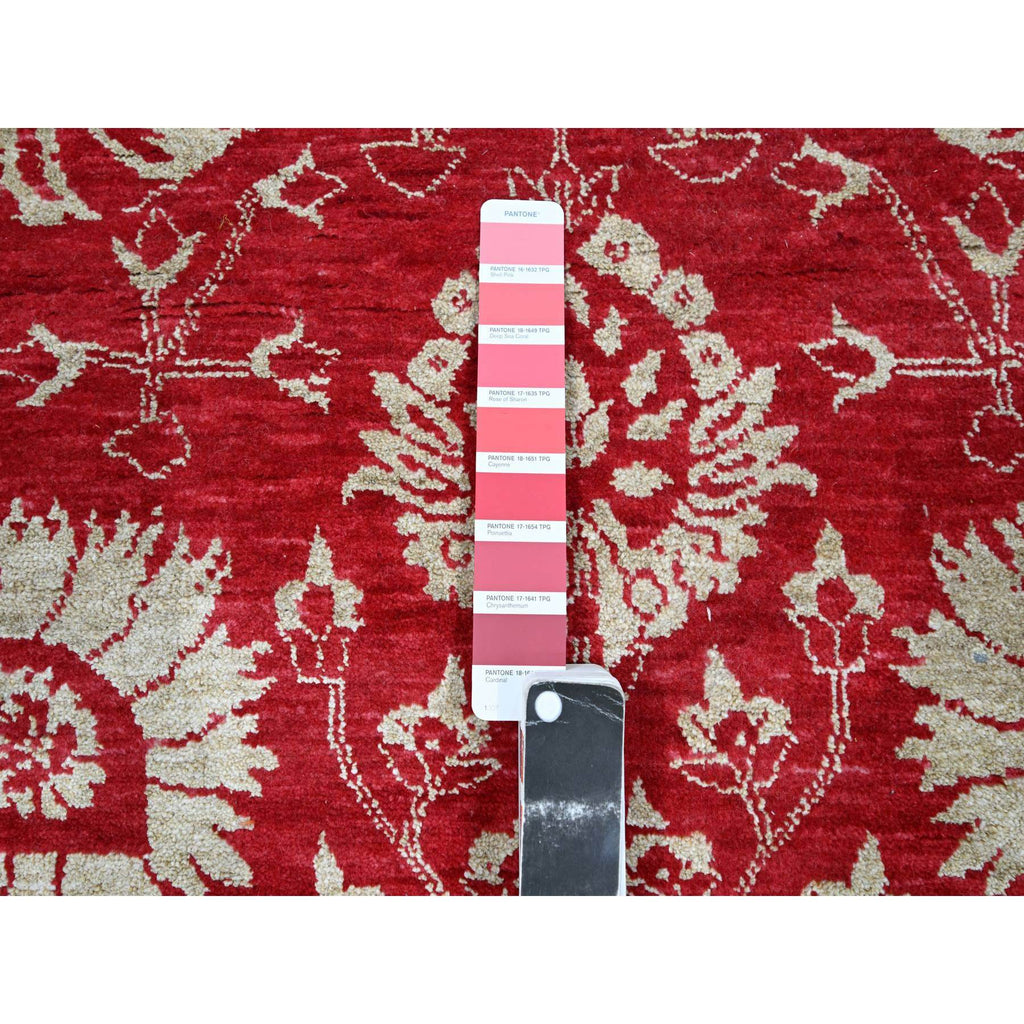 7'9"x10' Crimson Red, Persian Tabriz Influence Design, Wool & Silk, Tone On Tone, Hand Knotted, Oriental Rug FWR457836