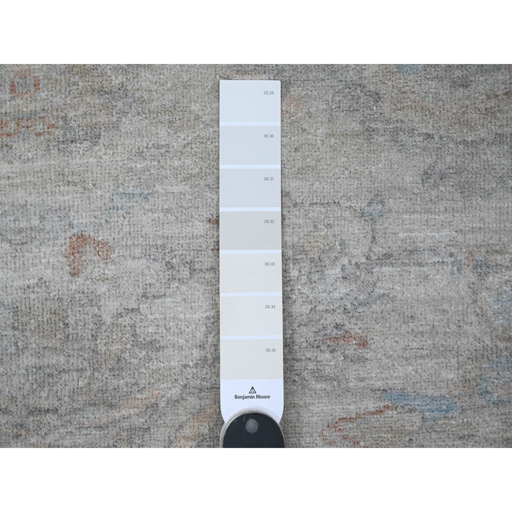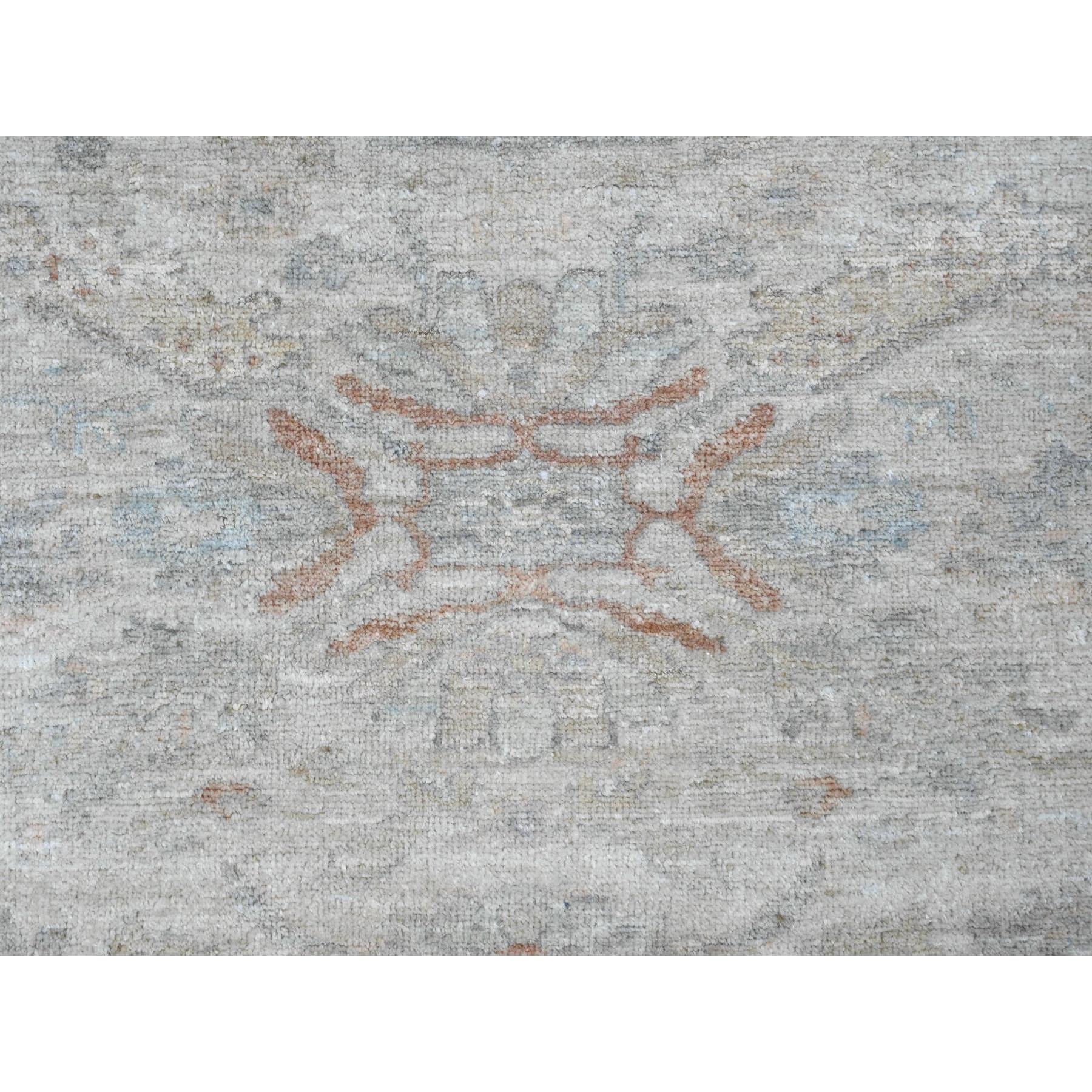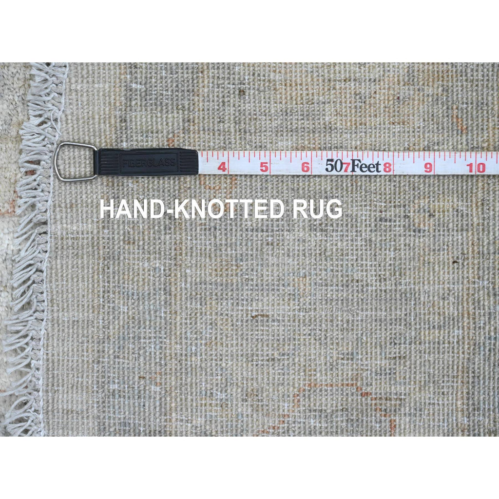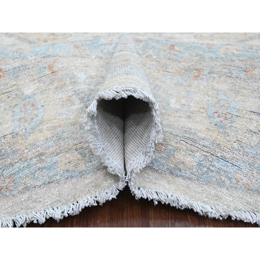 7'9"x7'9" Cascading White, Washed Out Peshawar With Heriz All Over Design, High Mountain Wool, Densely Woven, Hand Knotted, Round, Oriental Rug FWR538776