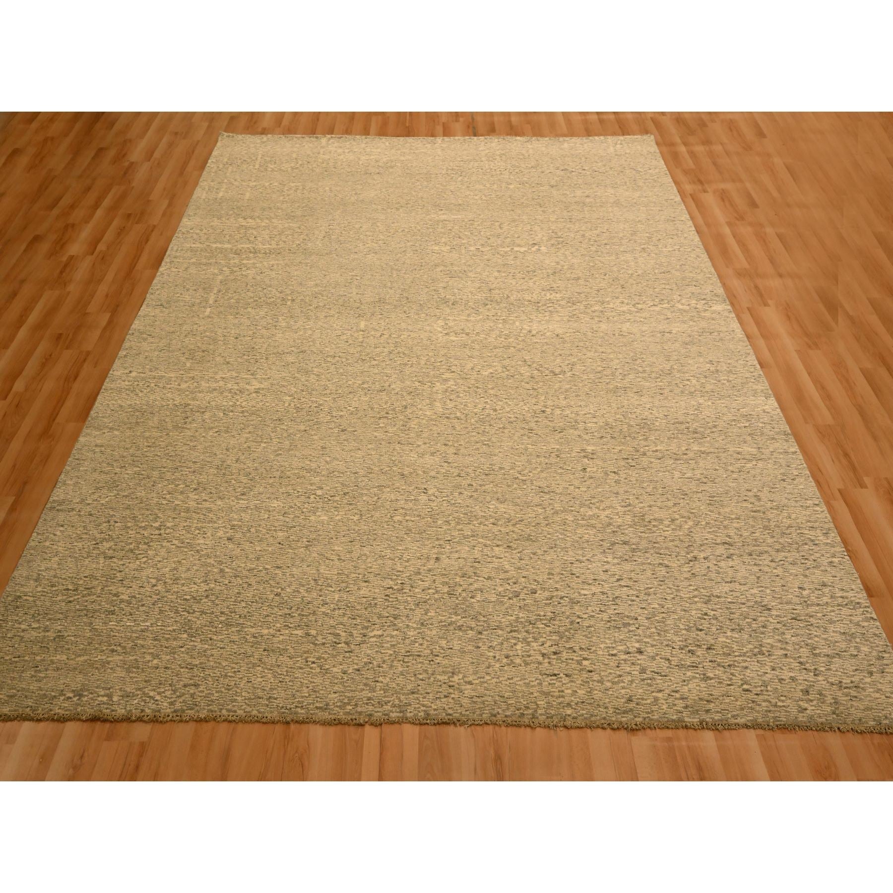 7'9"x9'7" Beige, Tone On Tone, Undyed Natural Wool, Grass Design, Hand Knotted, Oriental Rug FWR457098