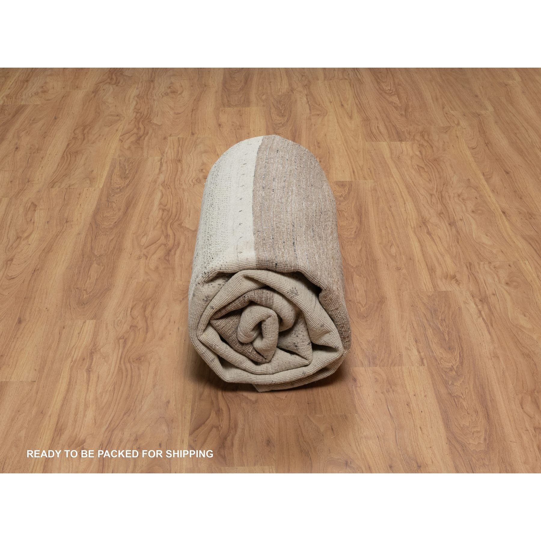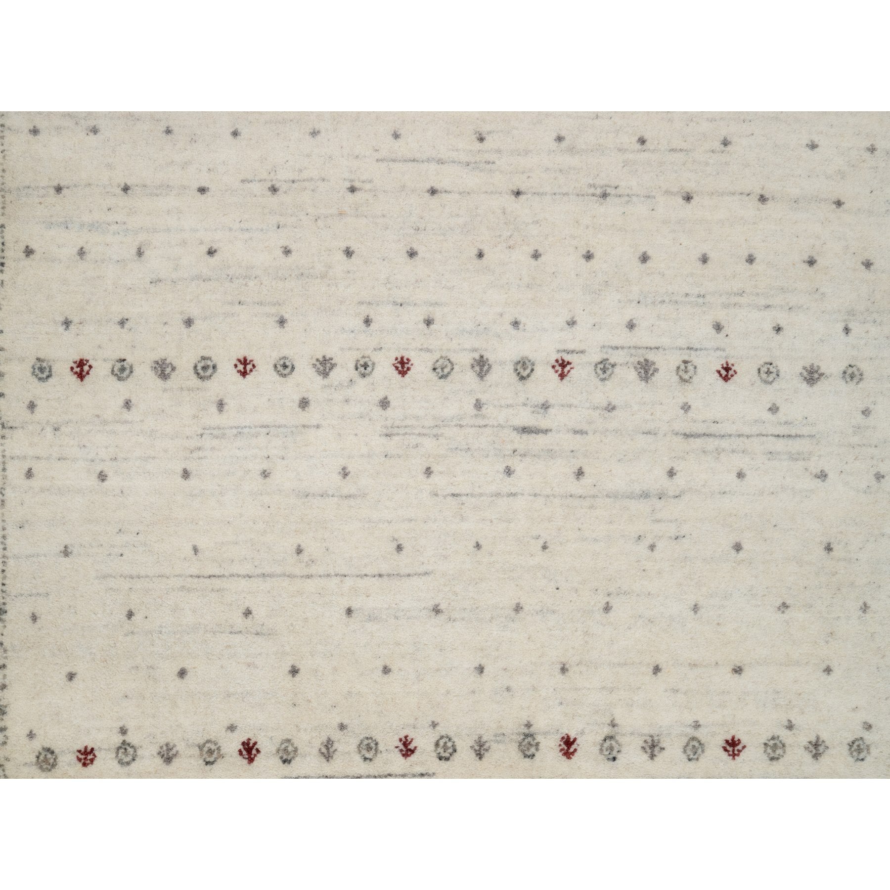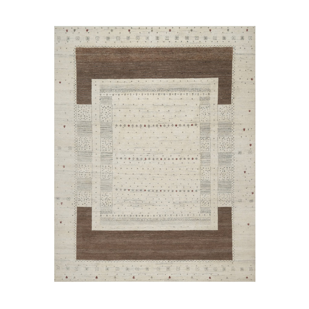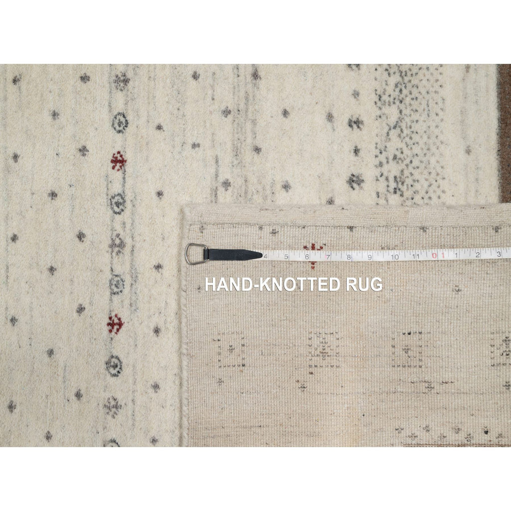 7'9"x9'8" Chiffon White With Brown, Pure Wool, Lori Buft Gabbeh With Small Animal Figurines, Modern Striae Design, Thick And Plush, Soft Pile, Hand Knotted, Oriental Rug FWR547308